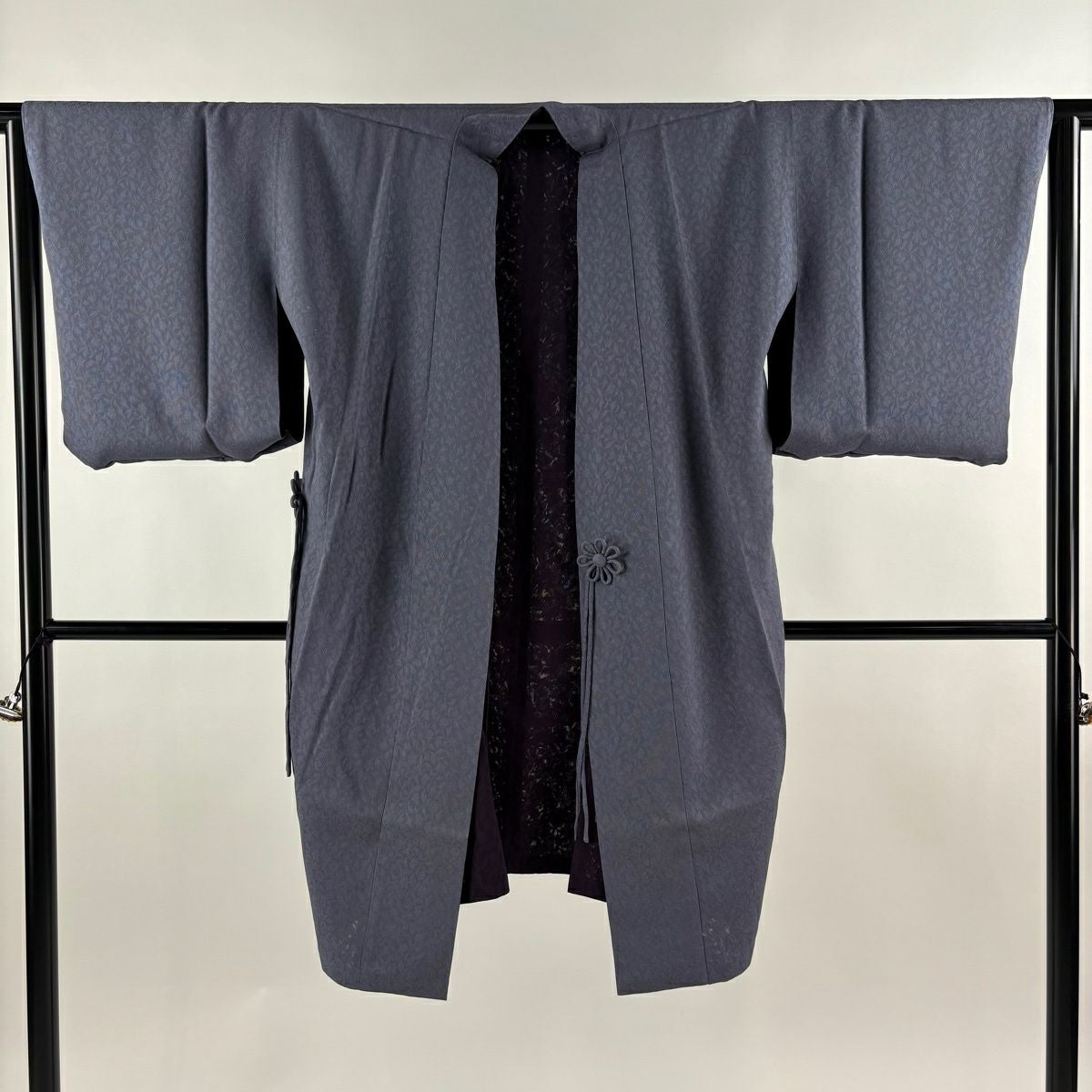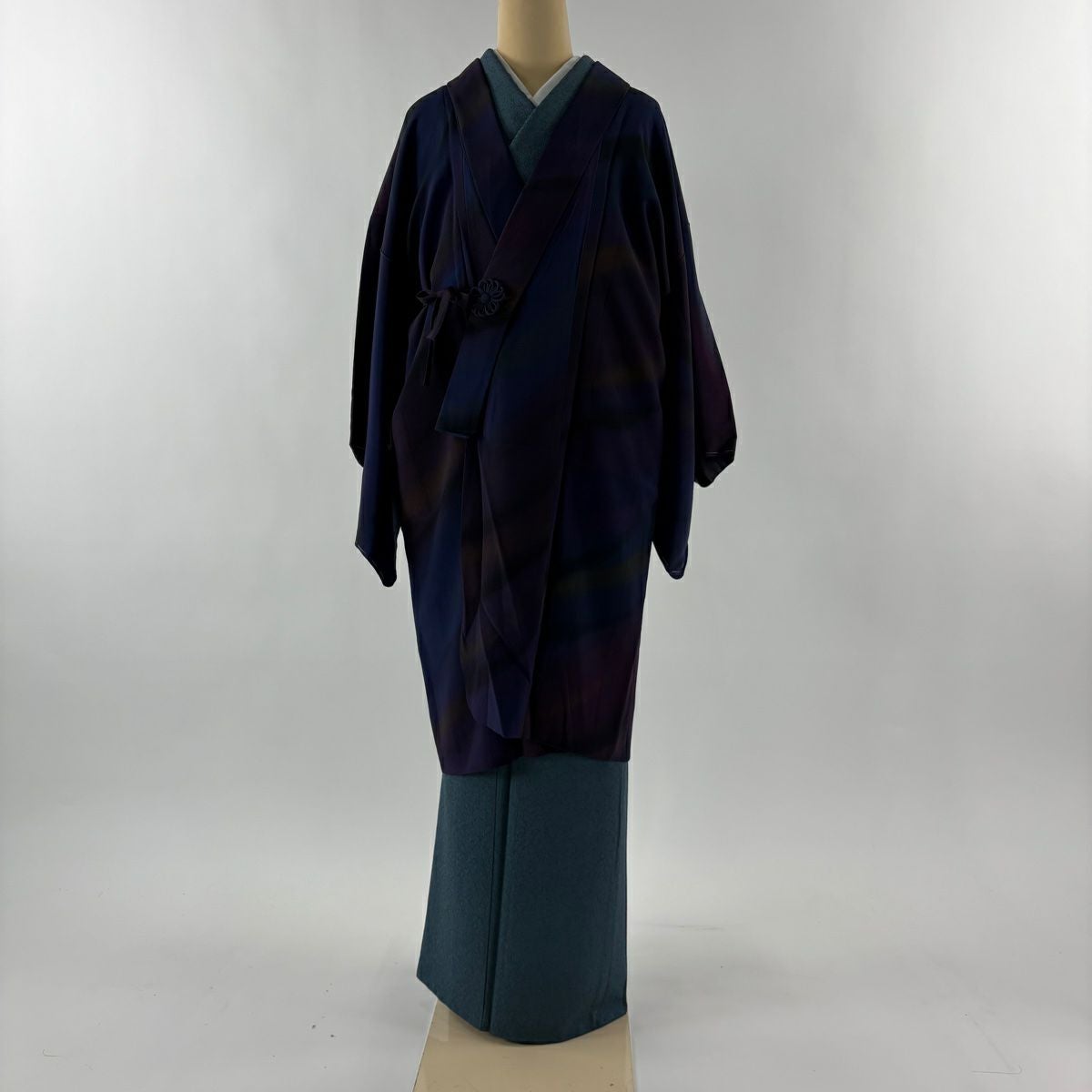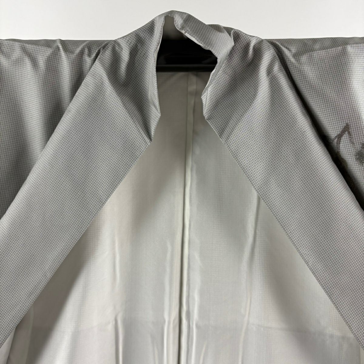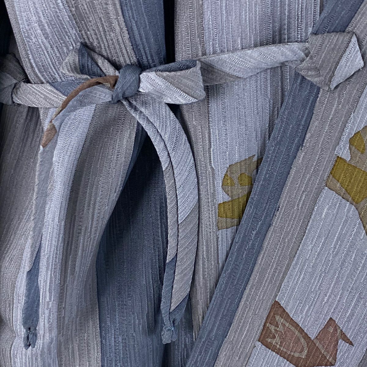 【在庫一掃】 【美品】 道中着 身丈101.5cm 裄丈68cm L 和装コート 鳥 縦縞 青灰色 正絹 逸品