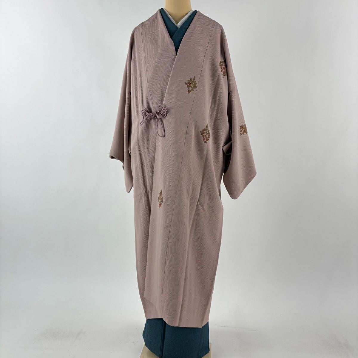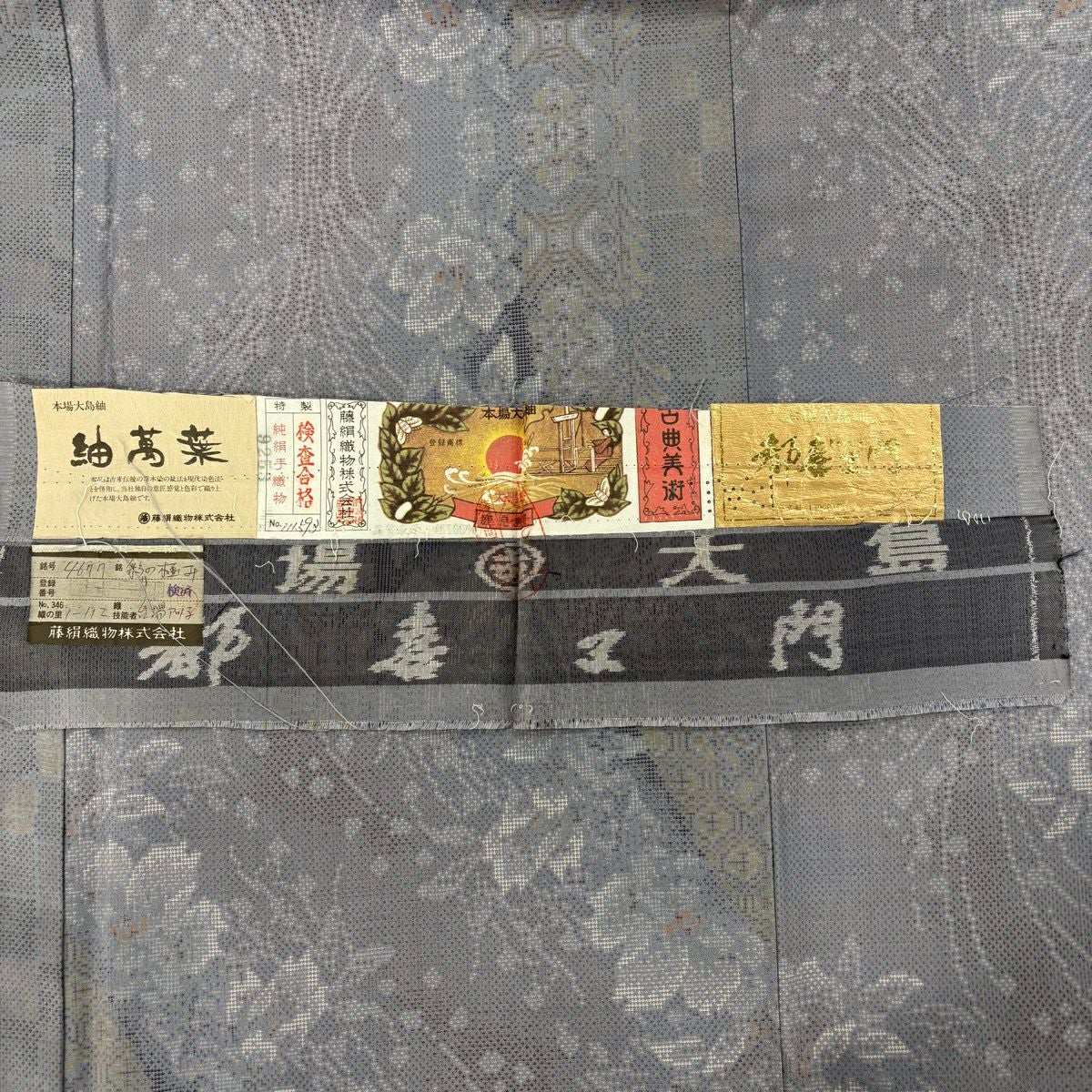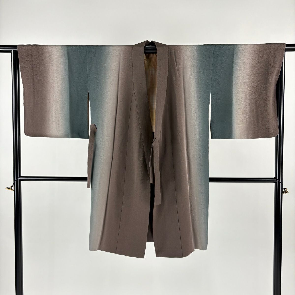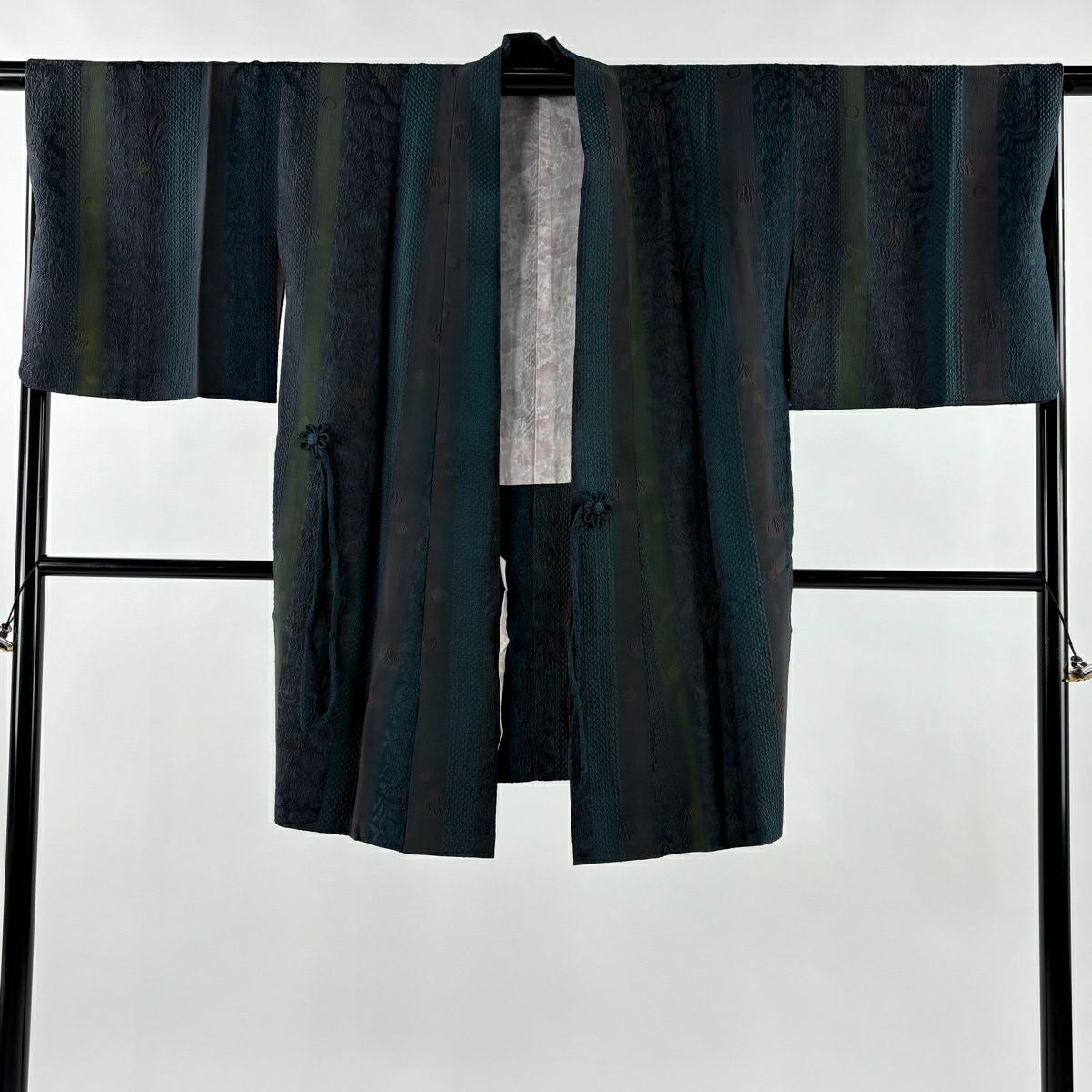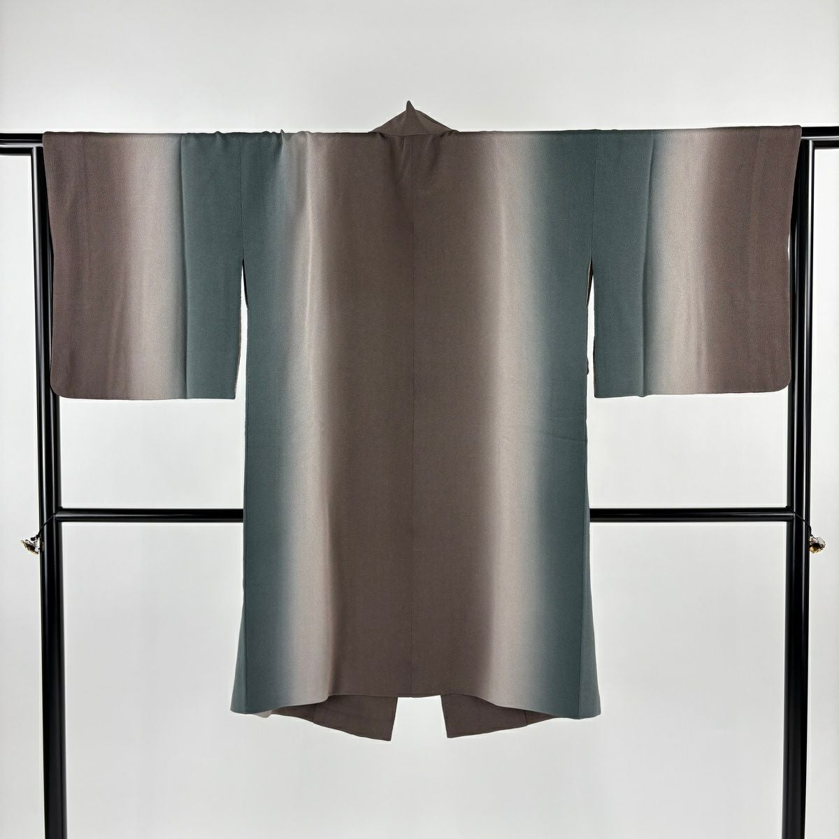 【在庫一掃】 【美品】 道中着 身丈101.5cm 裄丈68cm L 和装コート 鳥 縦縞 青灰色 正絹 逸品