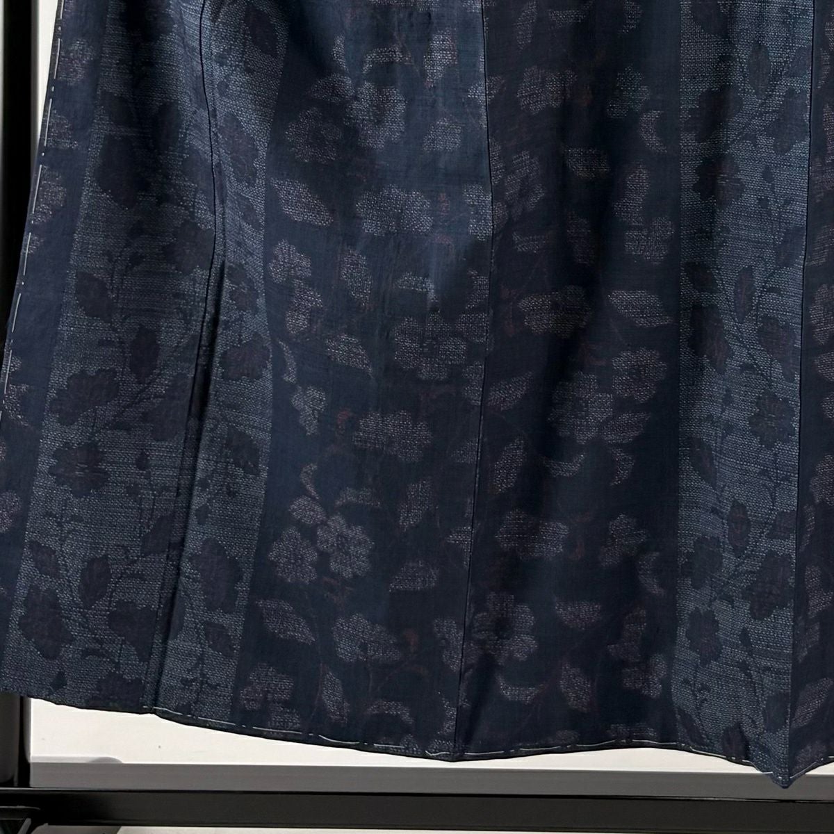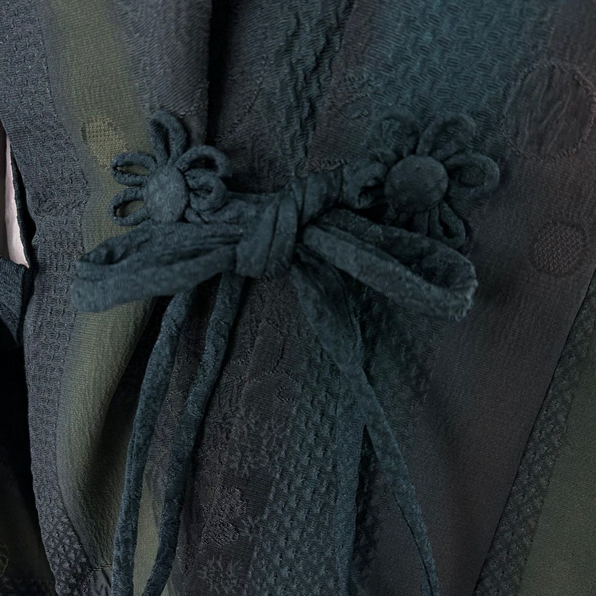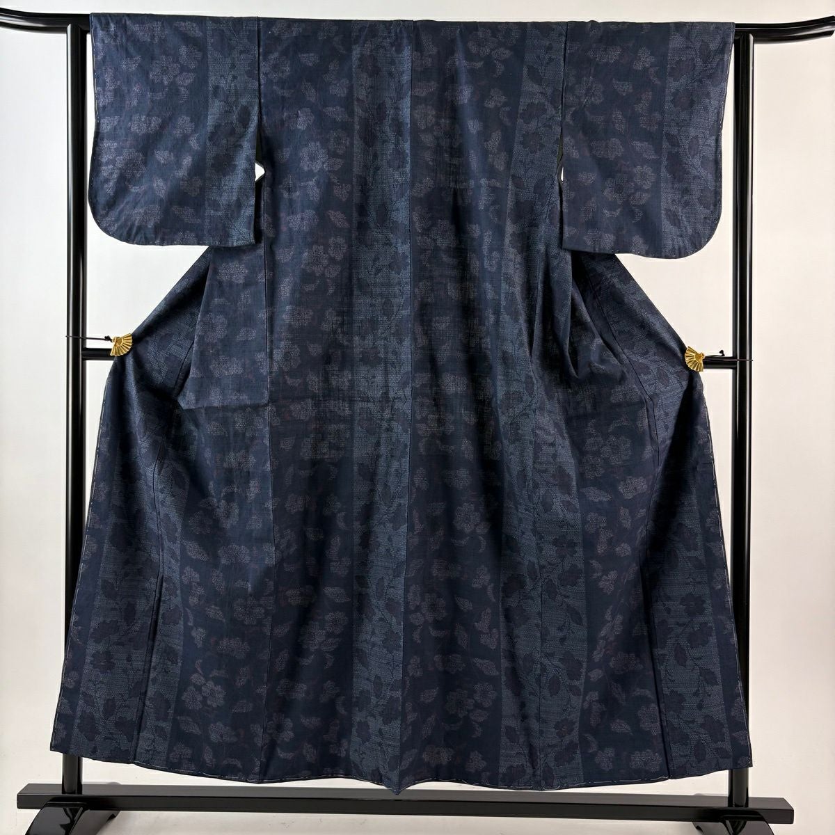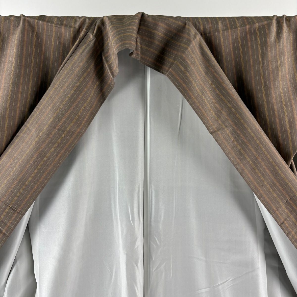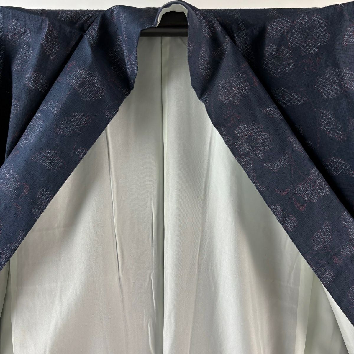 【在庫一掃】 【美品】 道中着 身丈101.5cm 裄丈68cm L 和装コート 鳥 縦縞 青灰色 正絹 逸品
