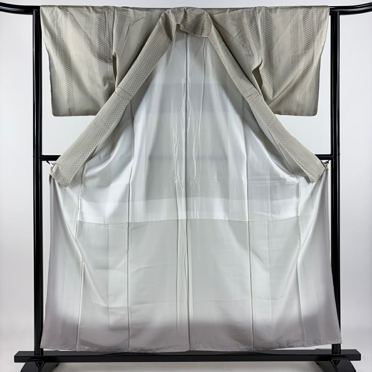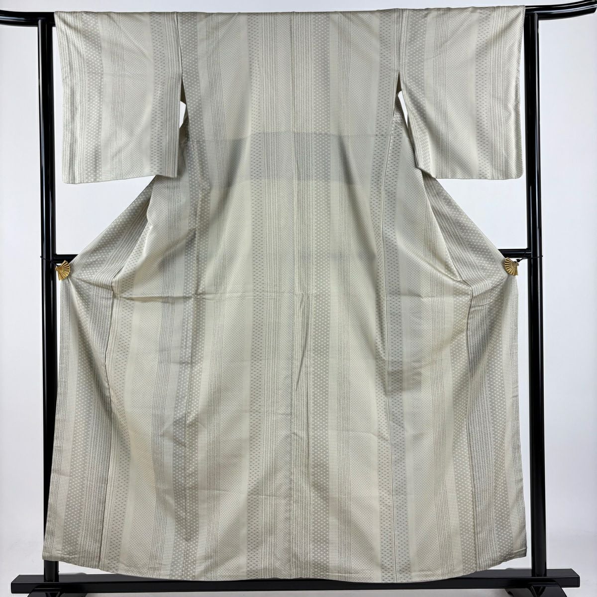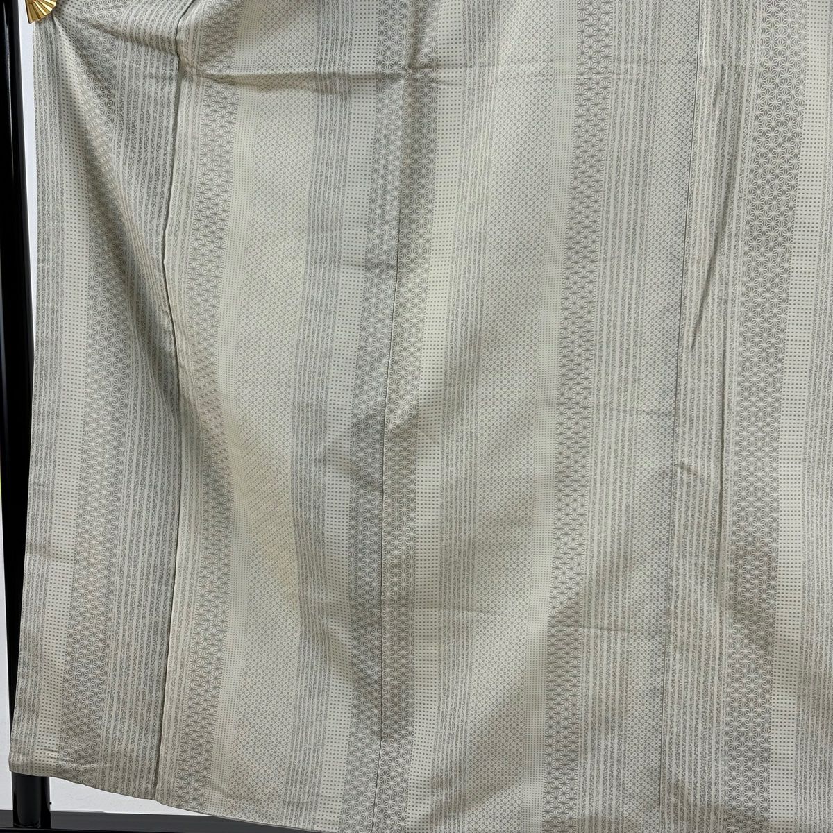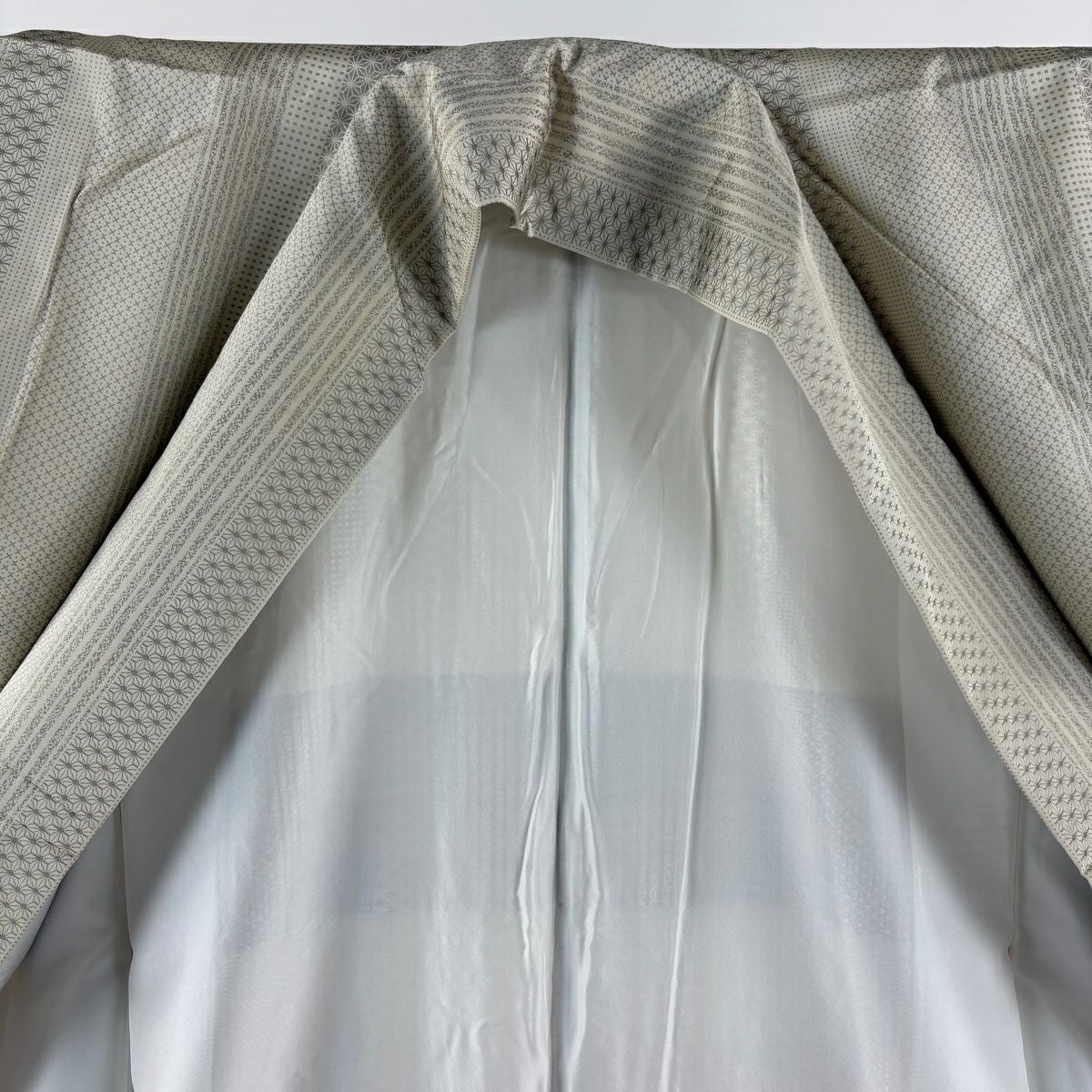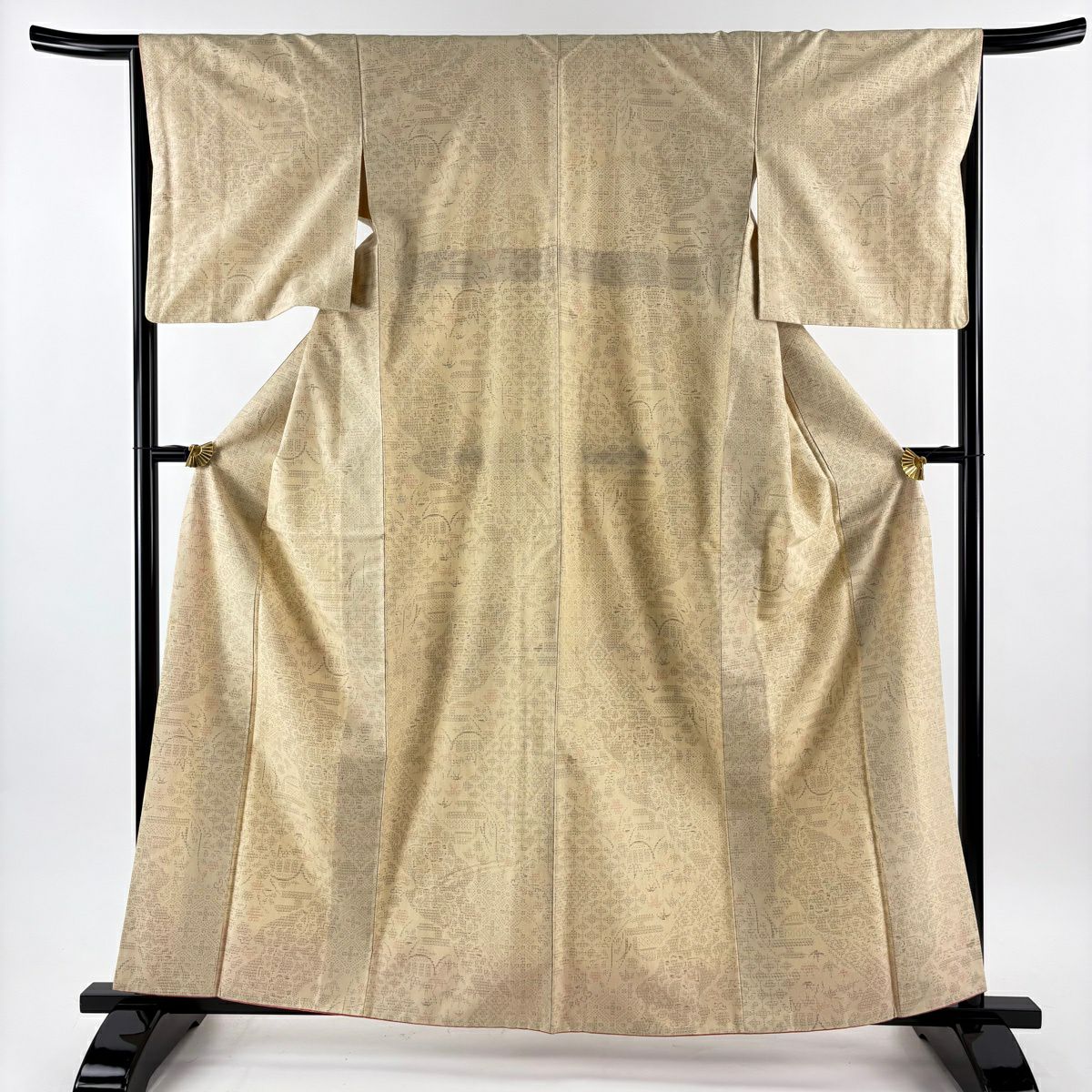 【在庫一掃】 【美品】 お召 身丈156cm 裄丈62.5cm S 袷 縦縞 麻の葉 ベージュ 正絹 逸品