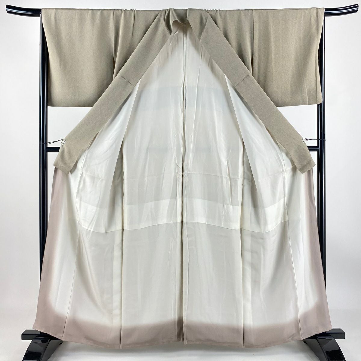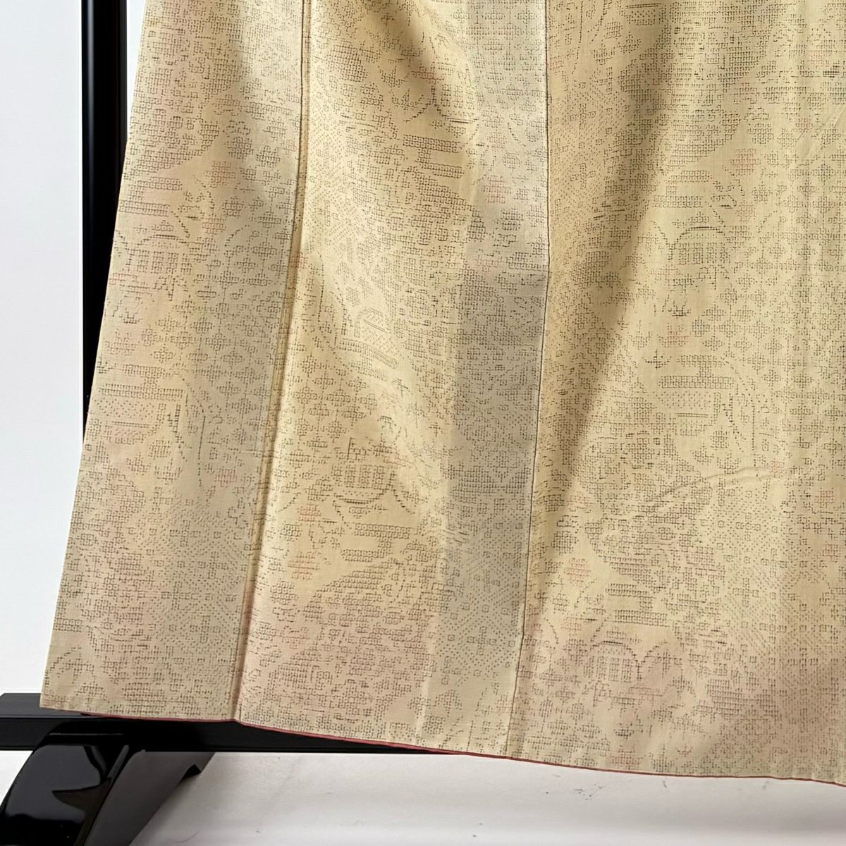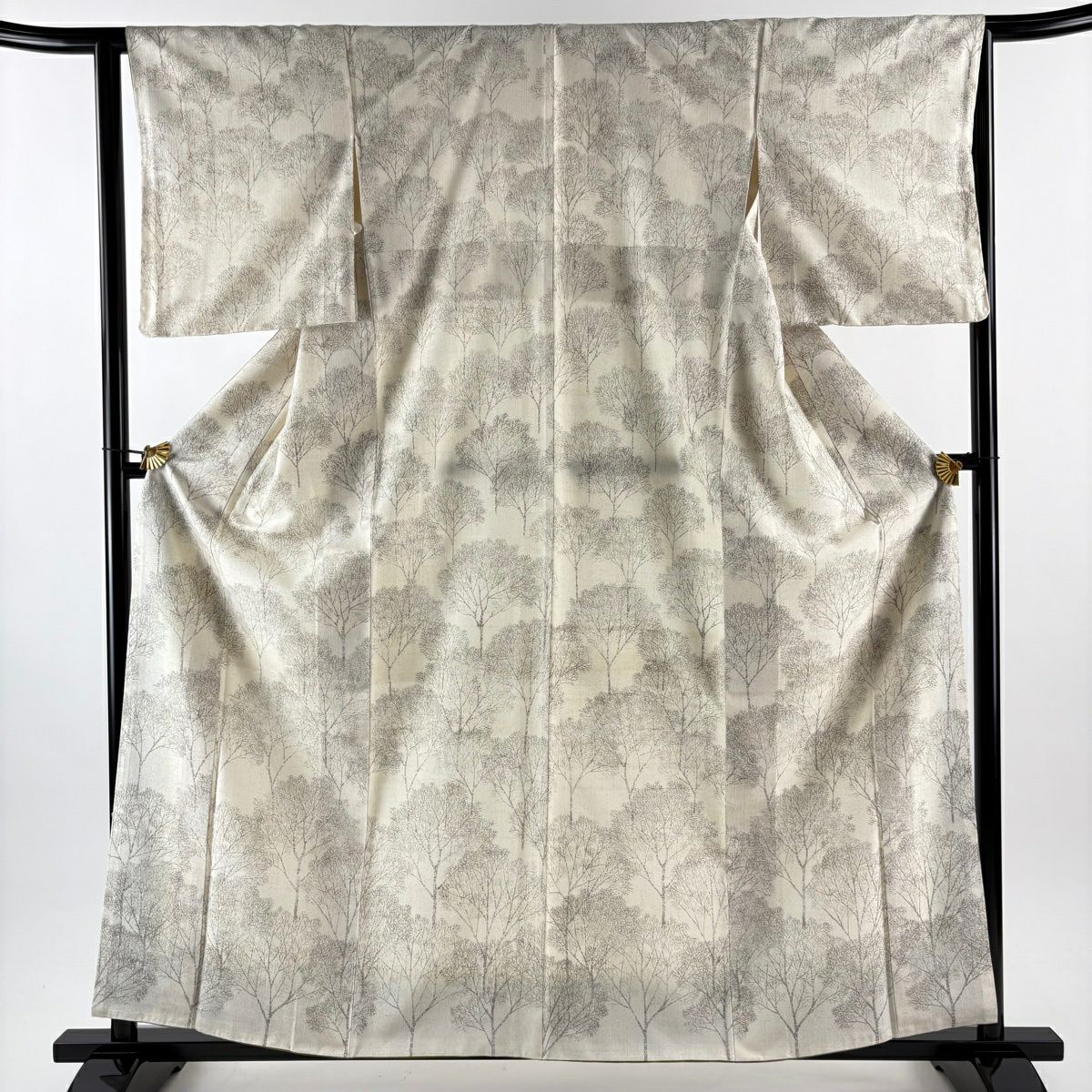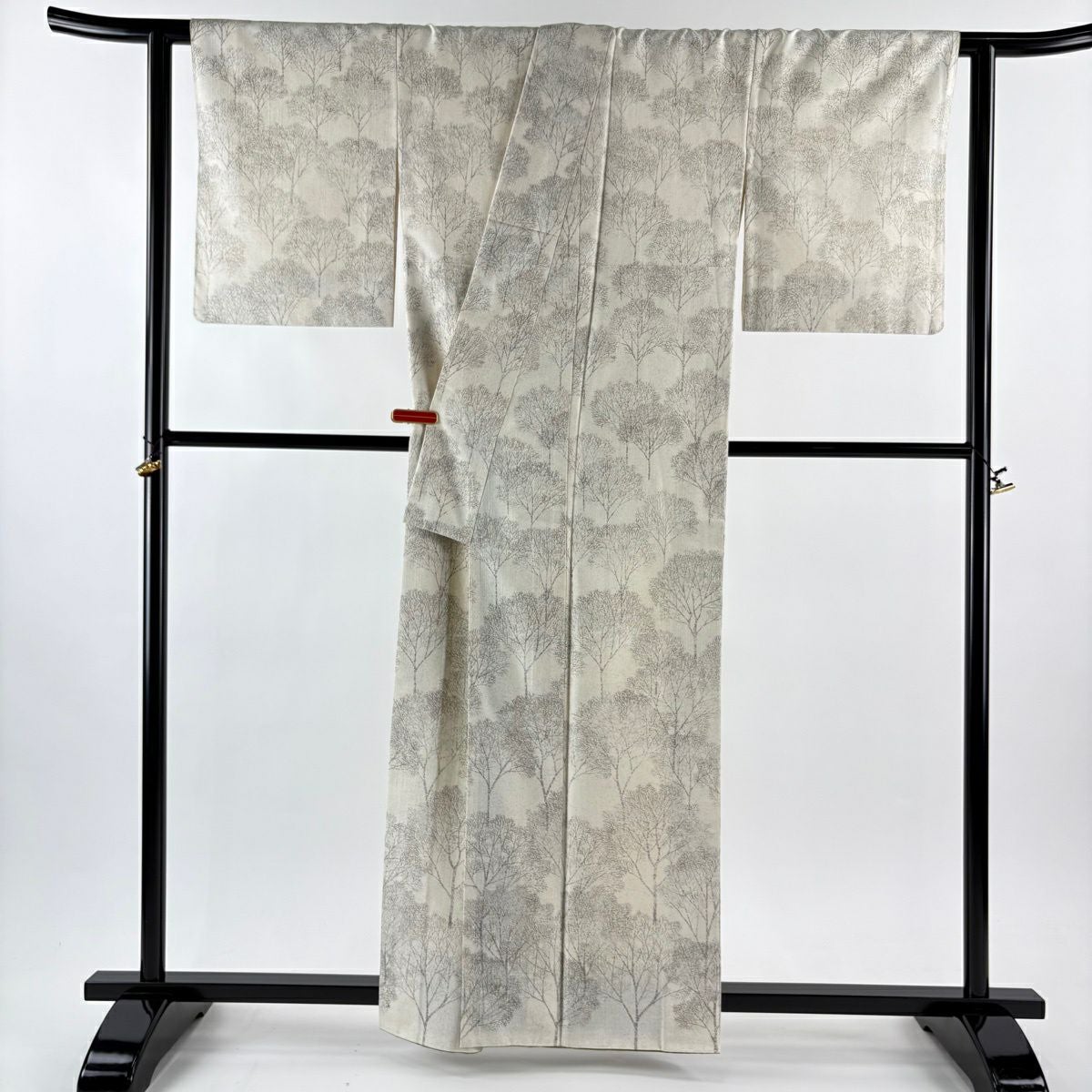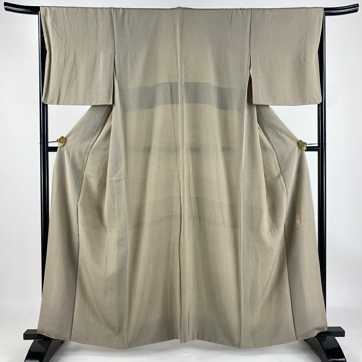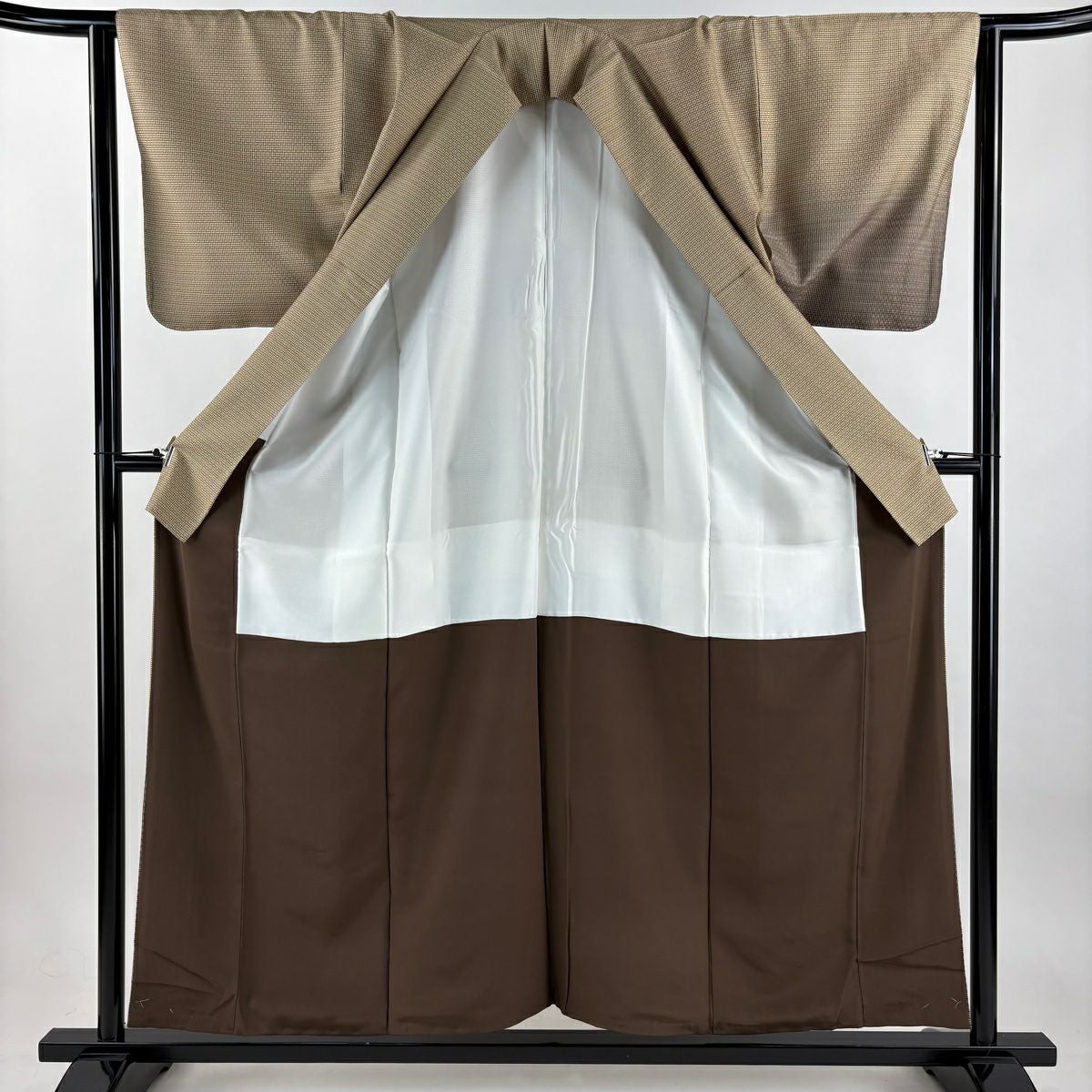 【在庫一掃】 【美品】 お召 身丈156cm 裄丈62.5cm S 袷 縦縞 麻の葉 ベージュ 正絹 逸品