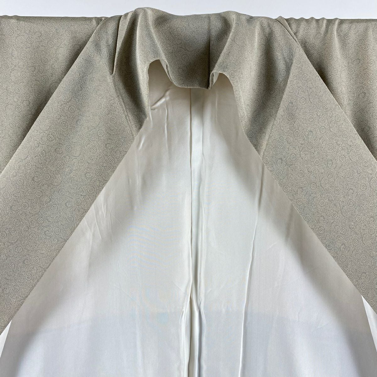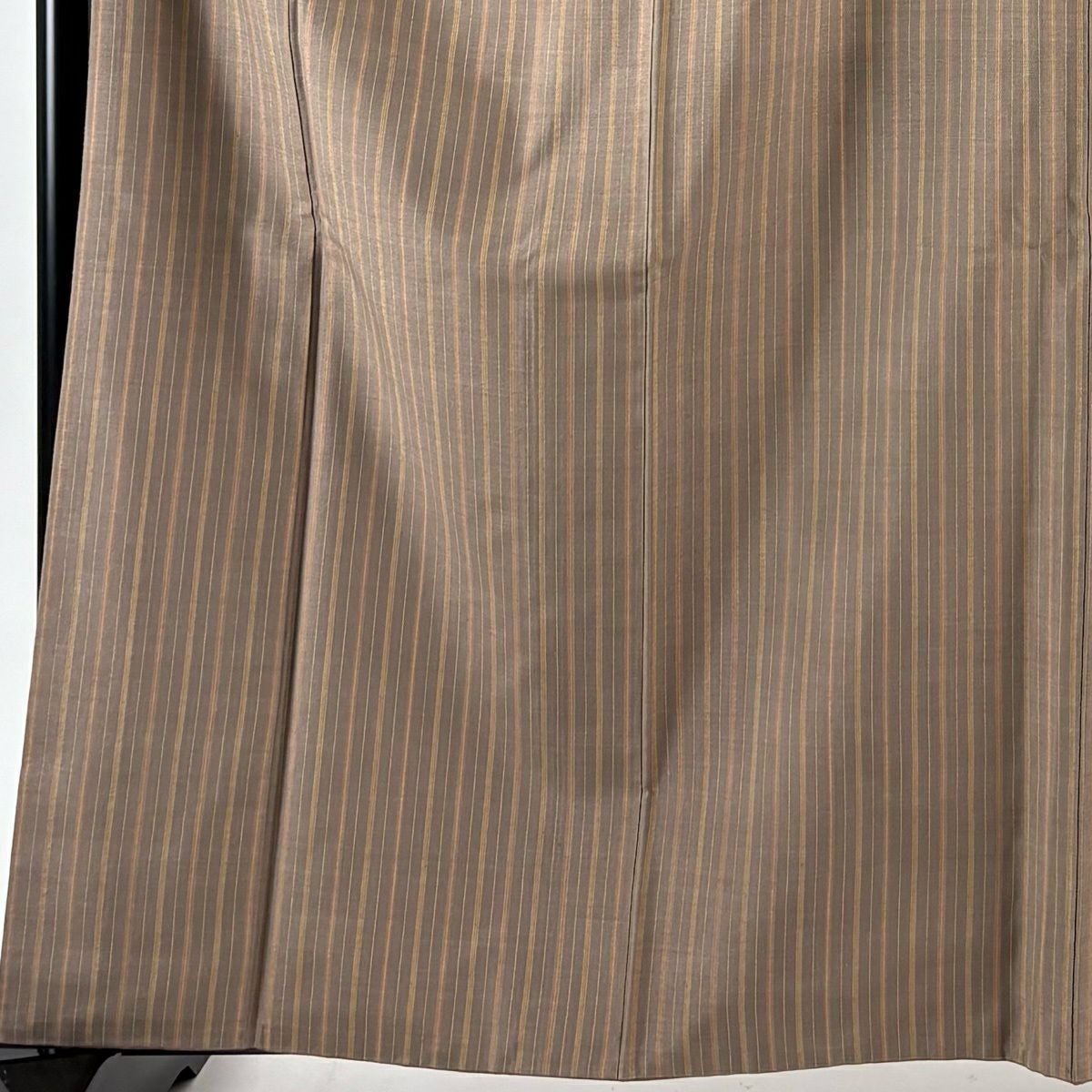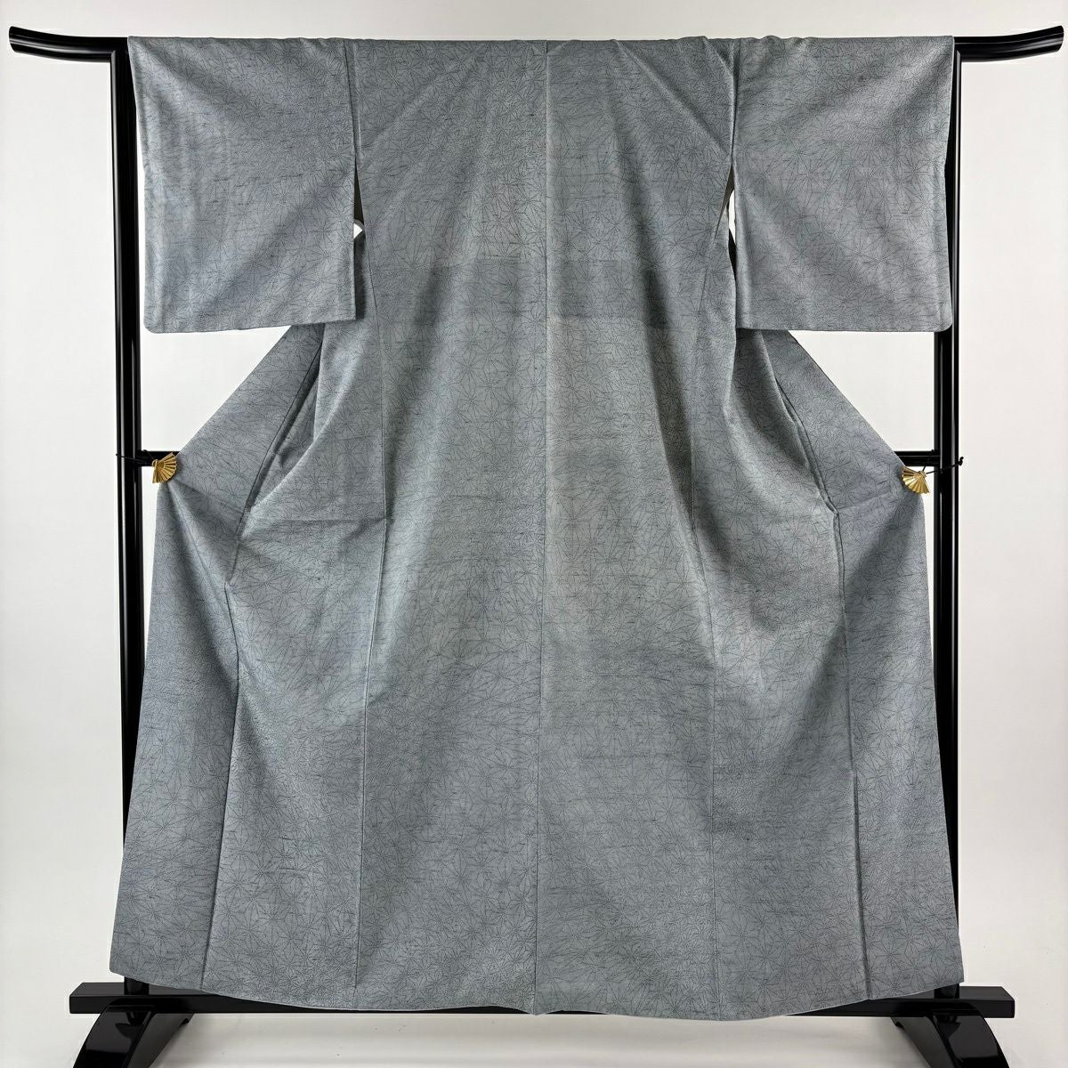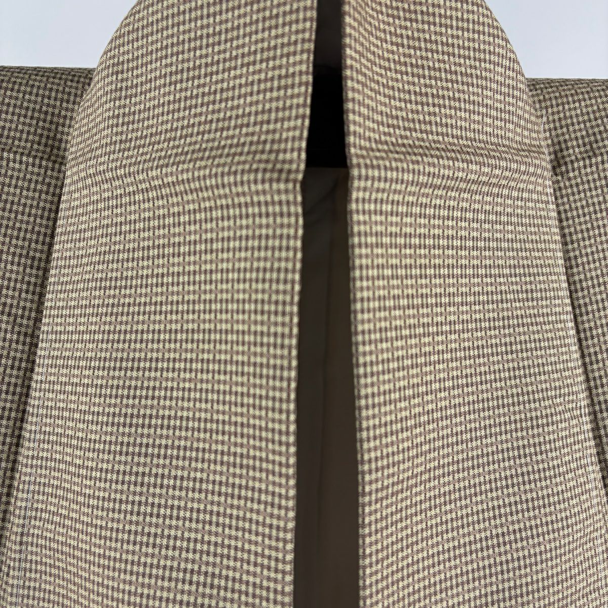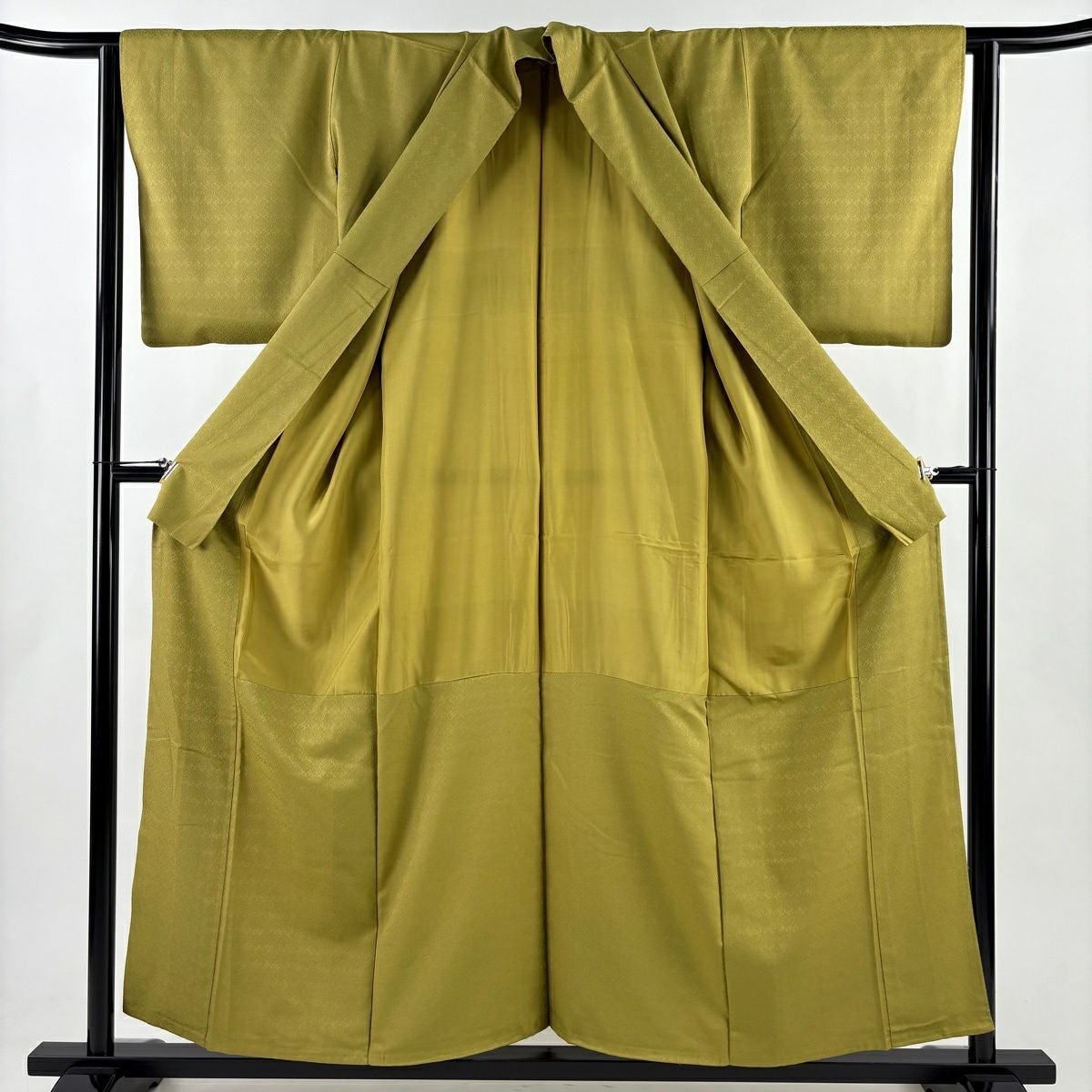 【在庫一掃】 【美品】 お召 身丈156cm 裄丈62.5cm S 袷 縦縞 麻の葉 ベージュ 正絹 逸品