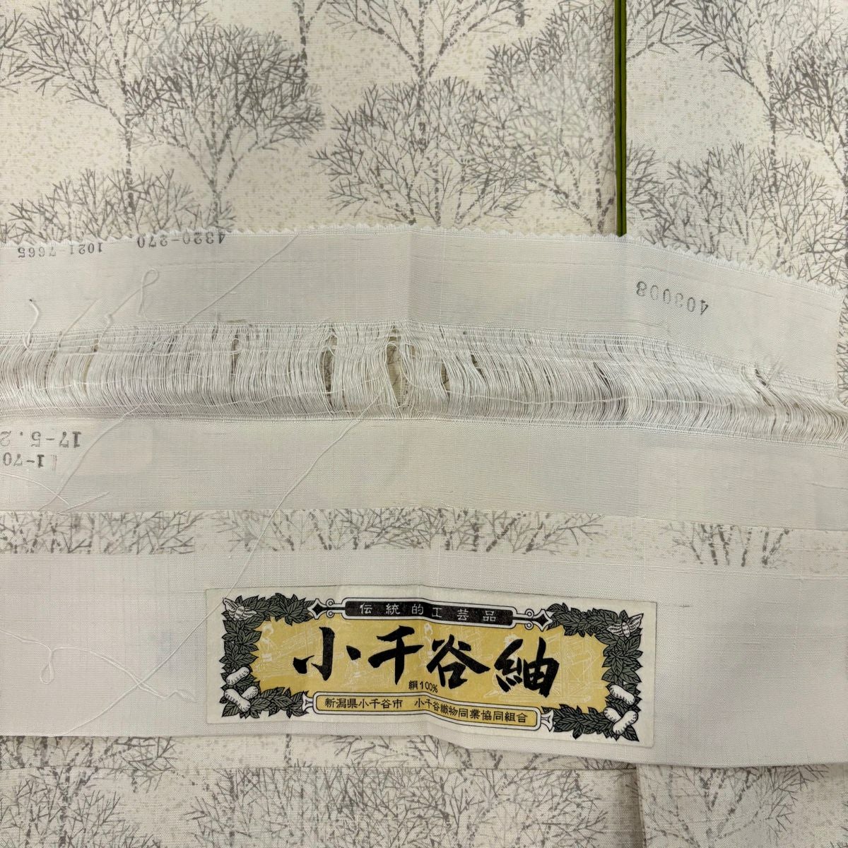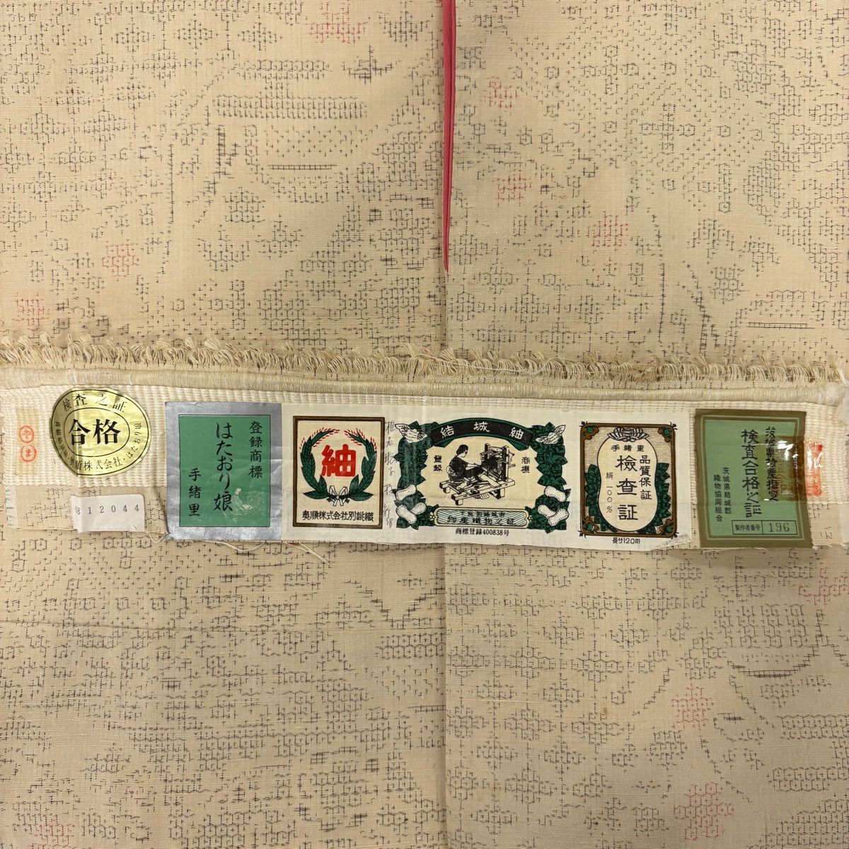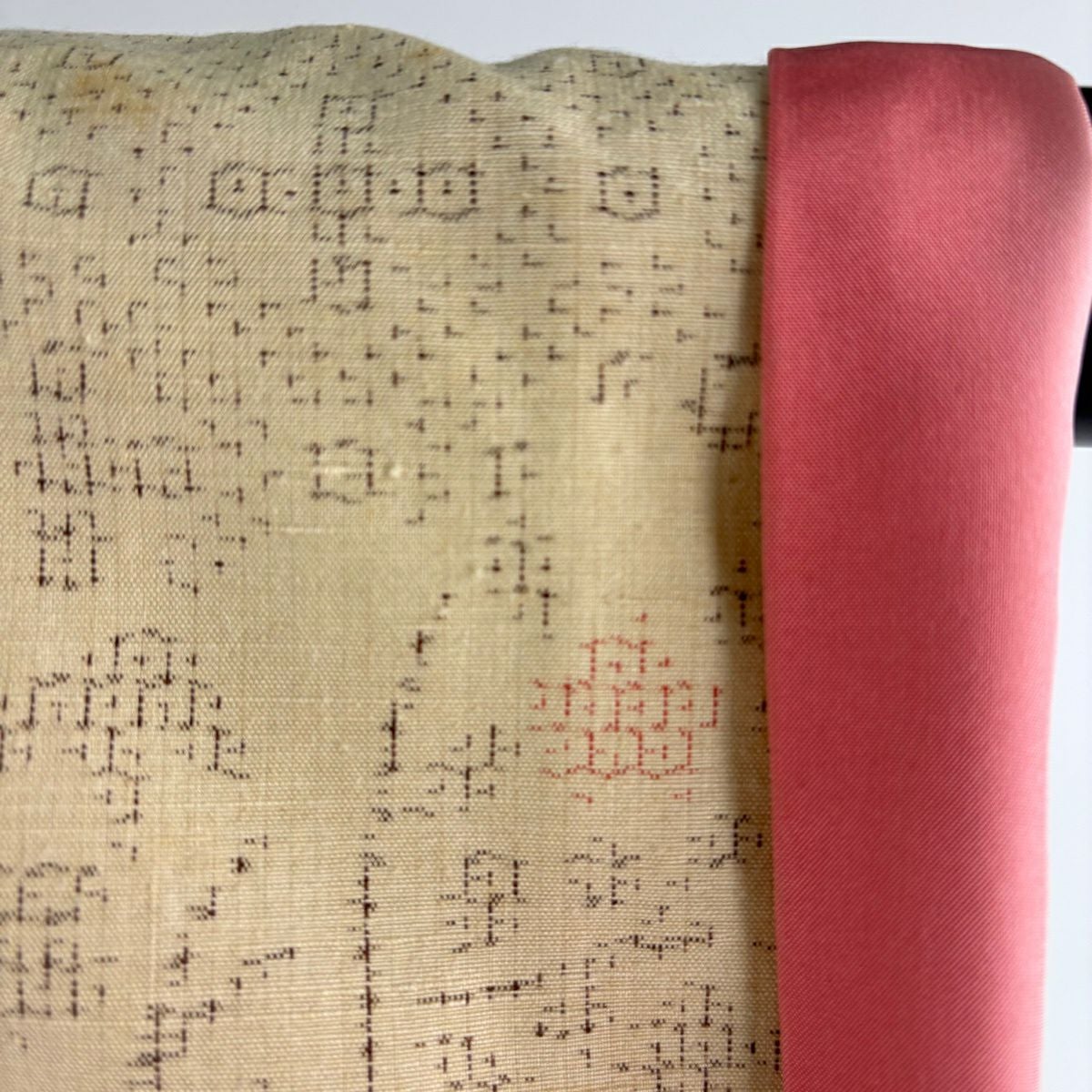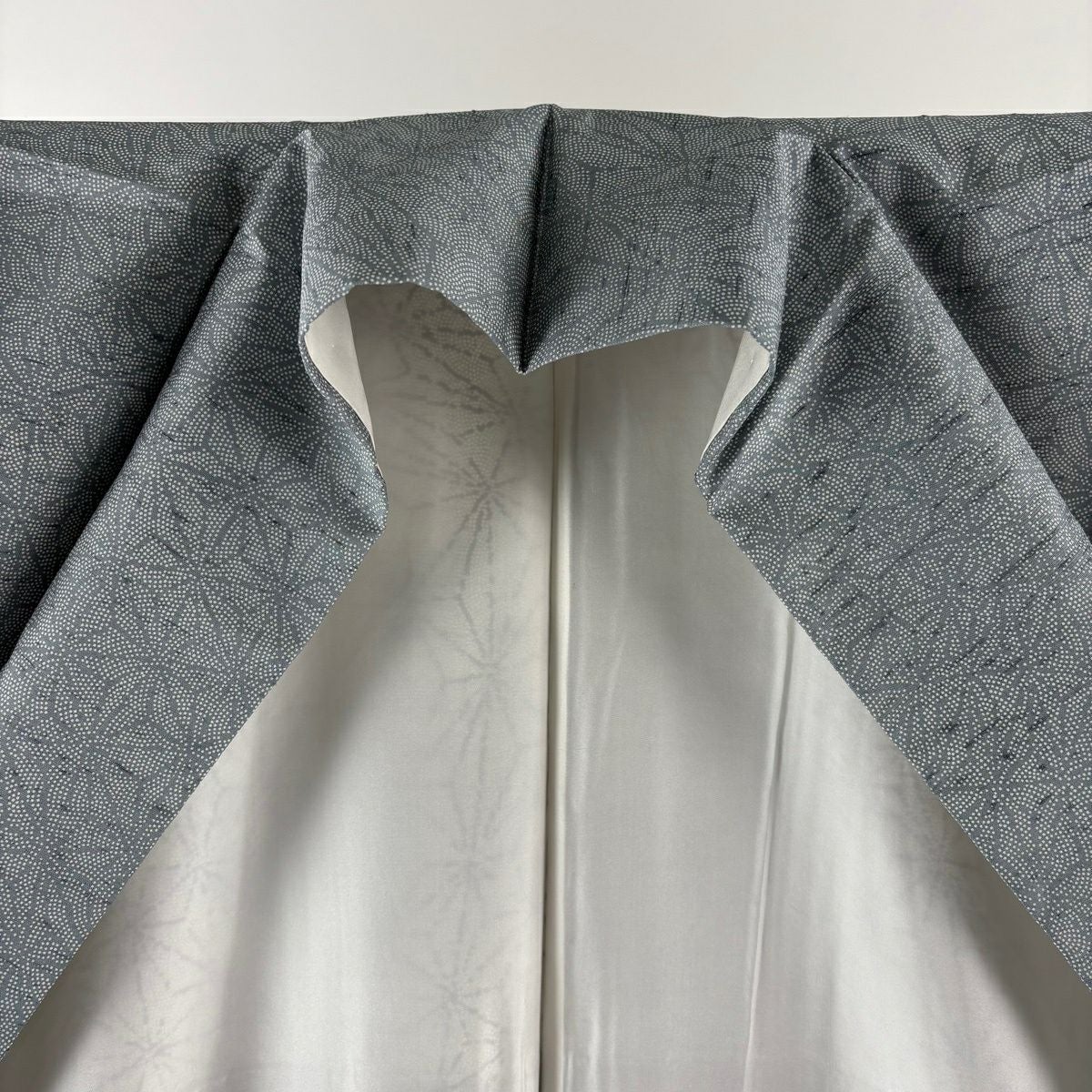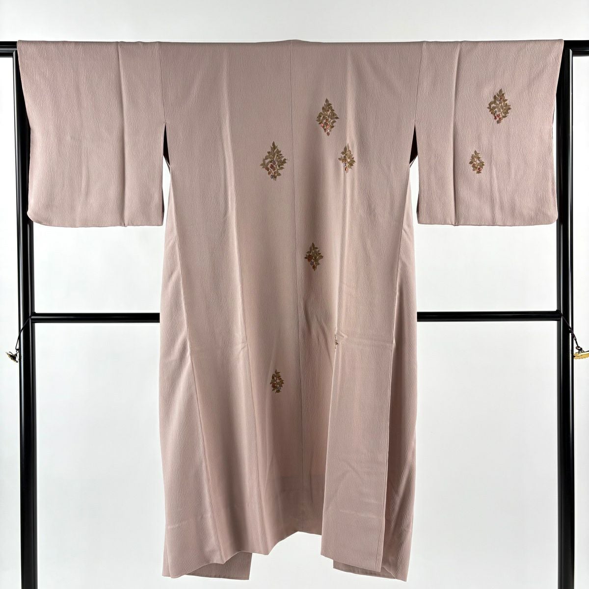 【在庫一掃】 【美品】 お召 身丈156cm 裄丈62.5cm S 袷 縦縞 麻の葉 ベージュ 正絹 逸品