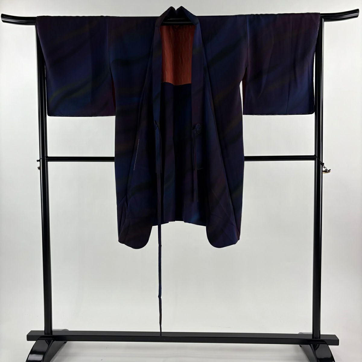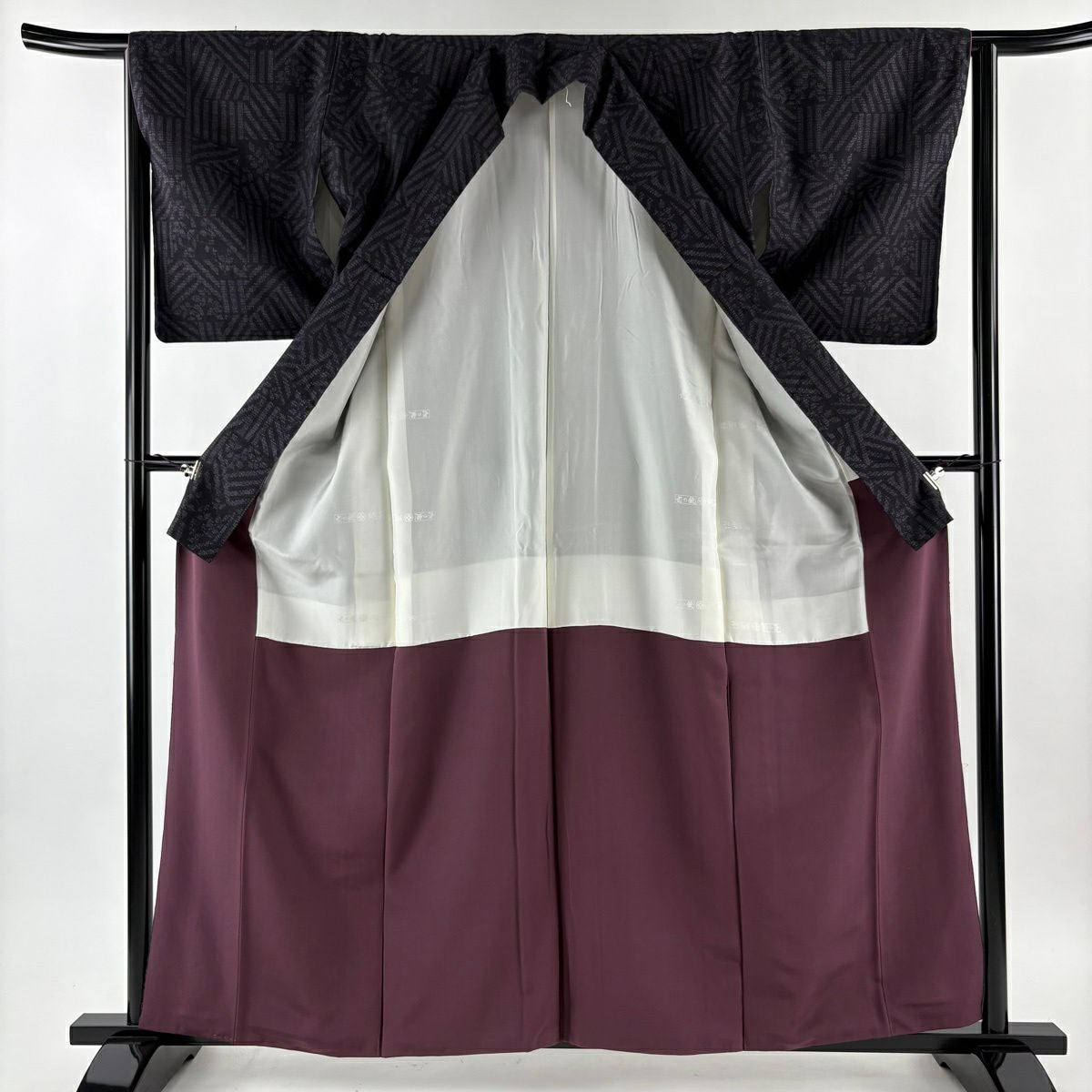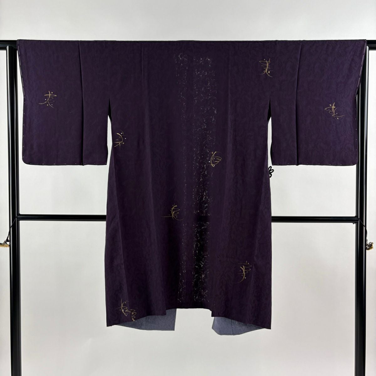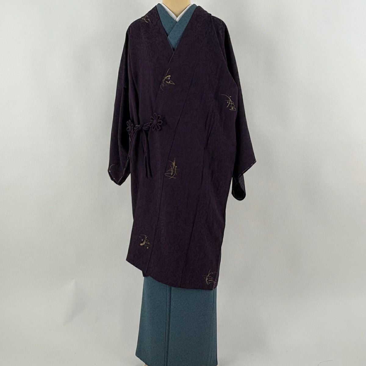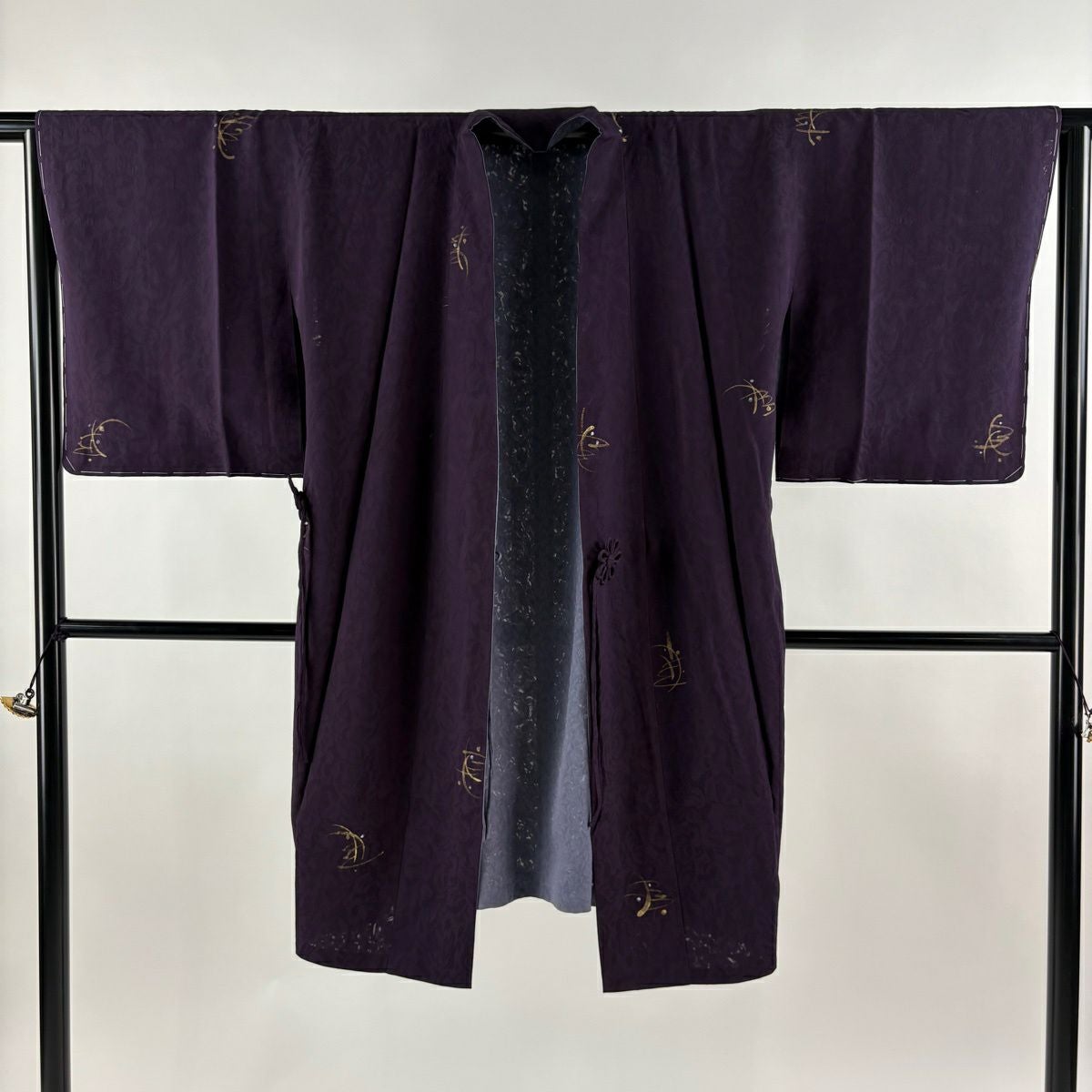 【美品】 道中着 身丈104cm 裄丈64cm M 和装コート リバーシブル 幾何学 金彩 濃紫 正絹 逸品