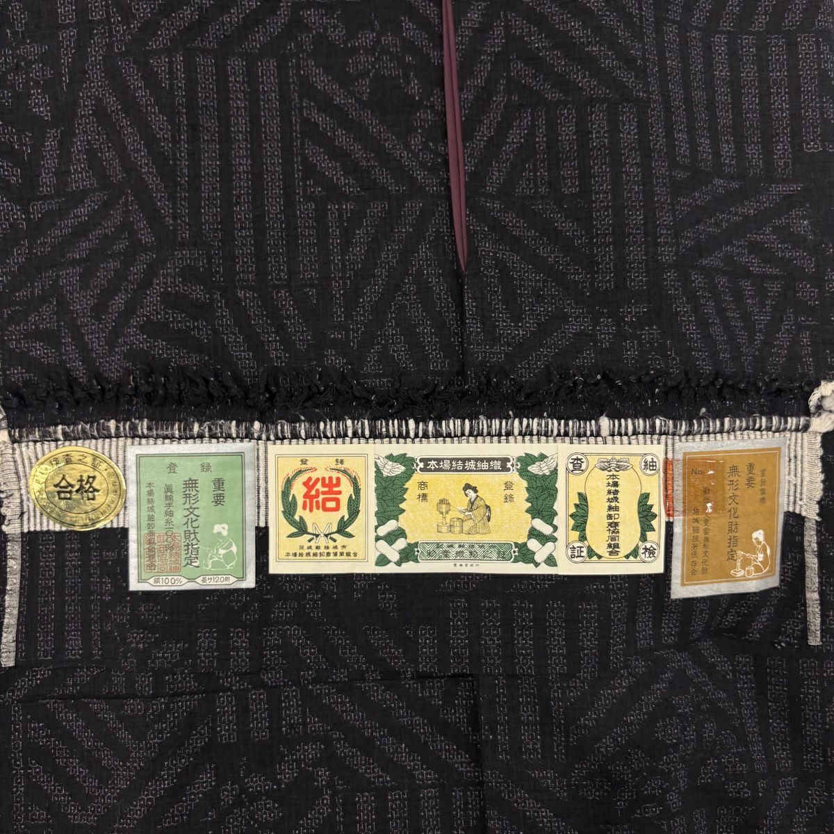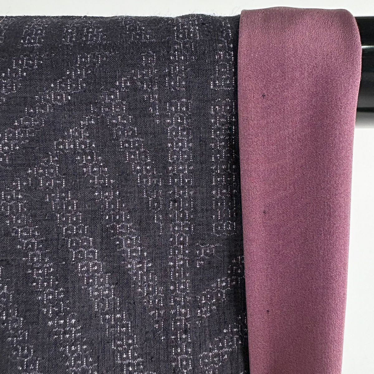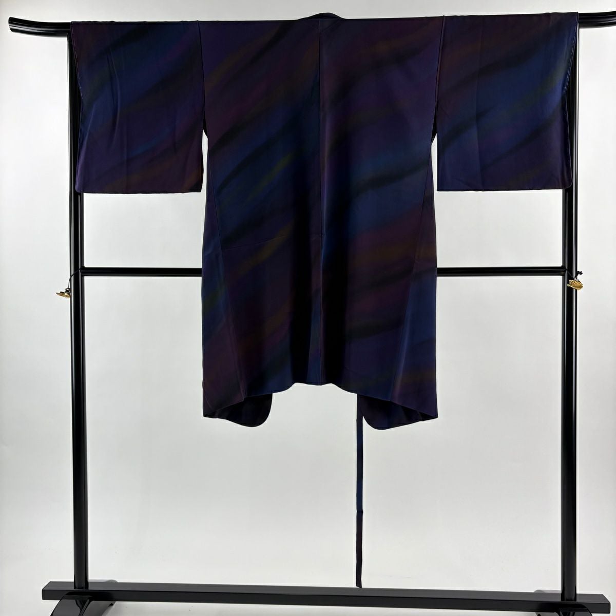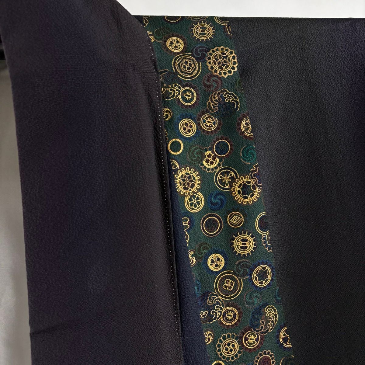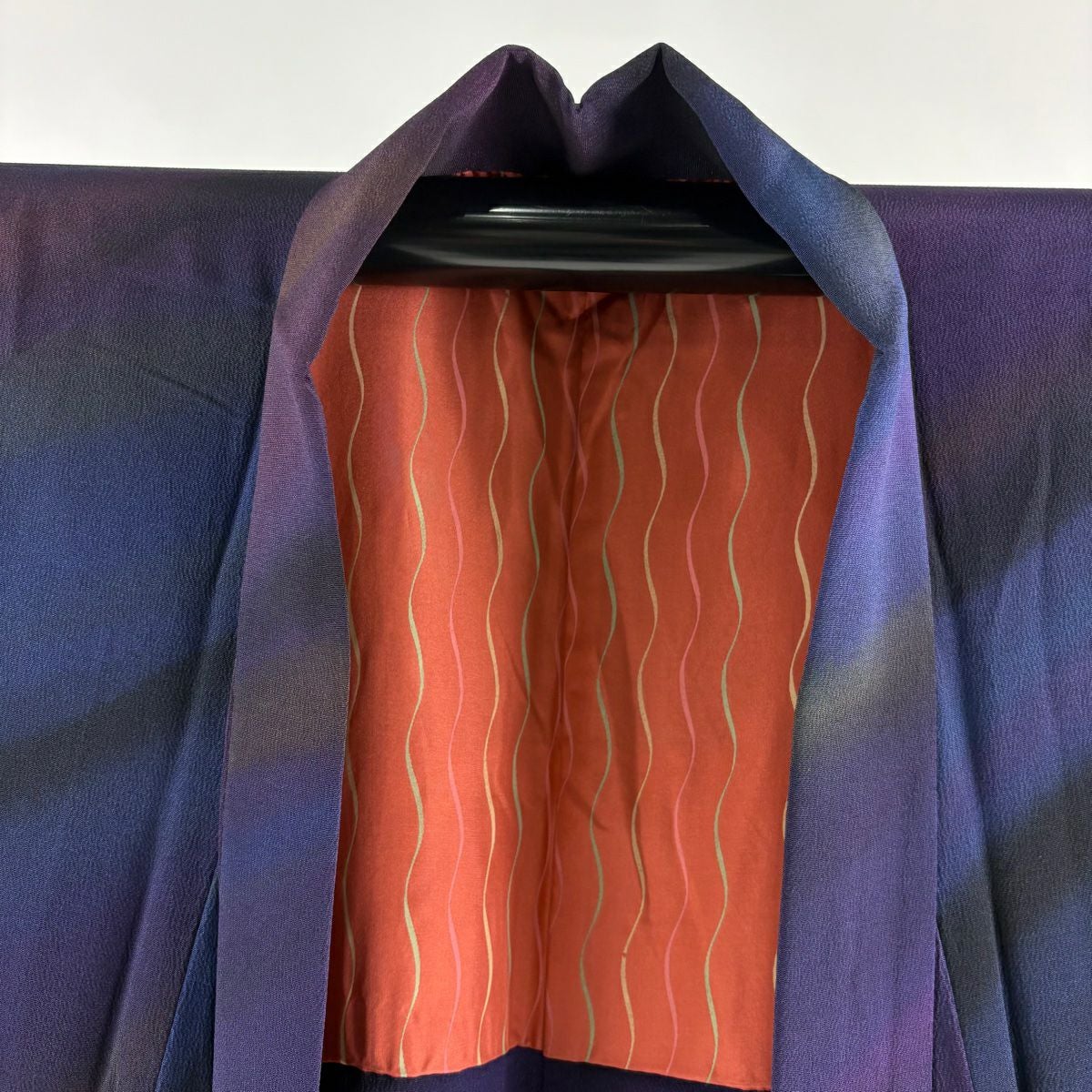 【美品】 道中着 身丈104cm 裄丈64cm M 和装コート リバーシブル 幾何学 金彩 濃紫 正絹 逸品