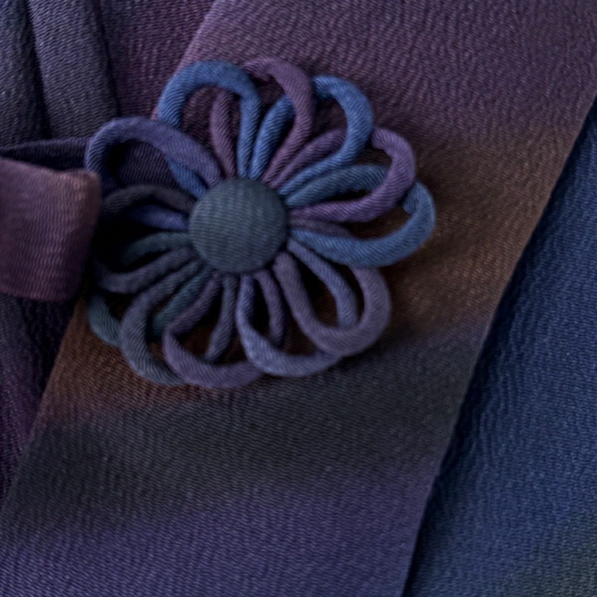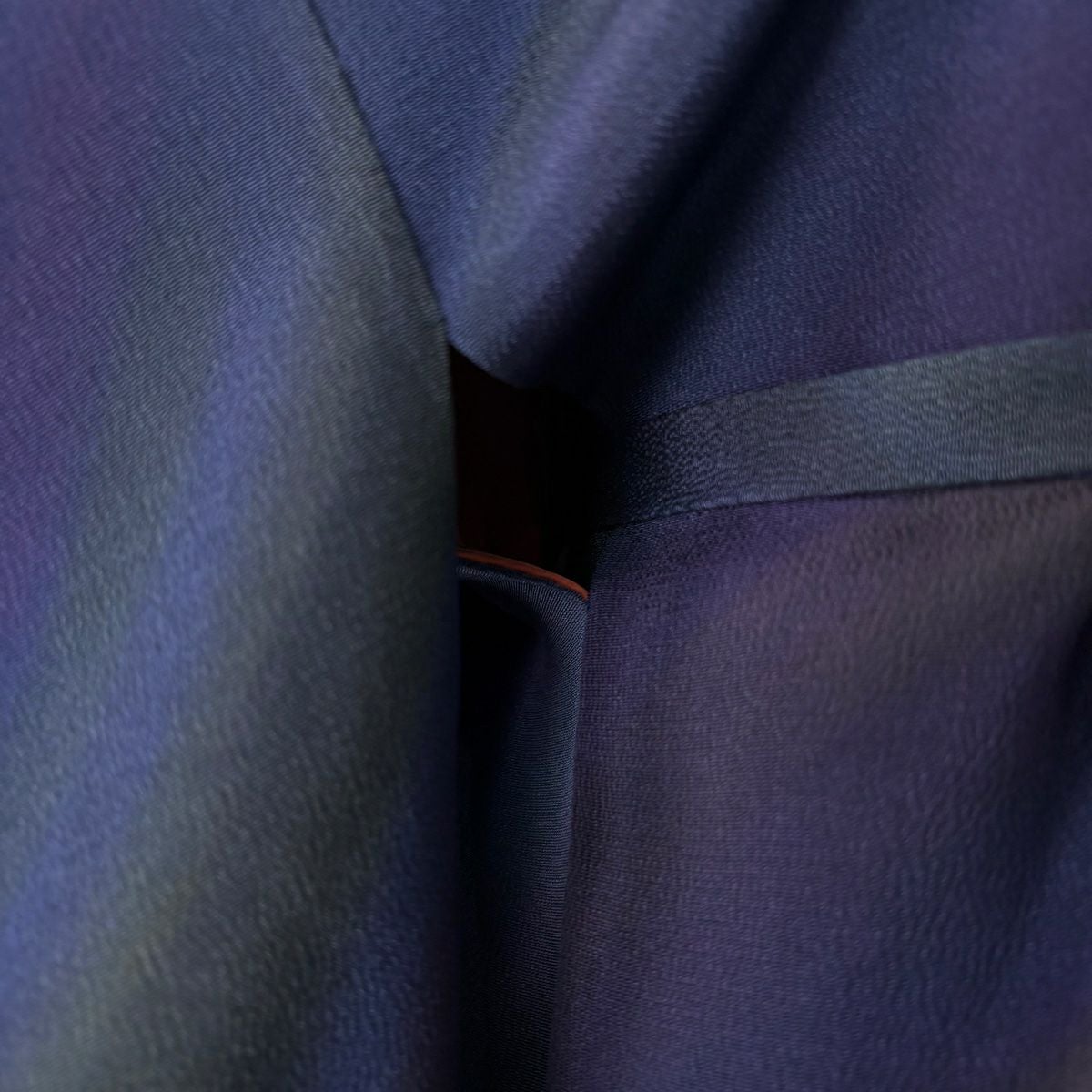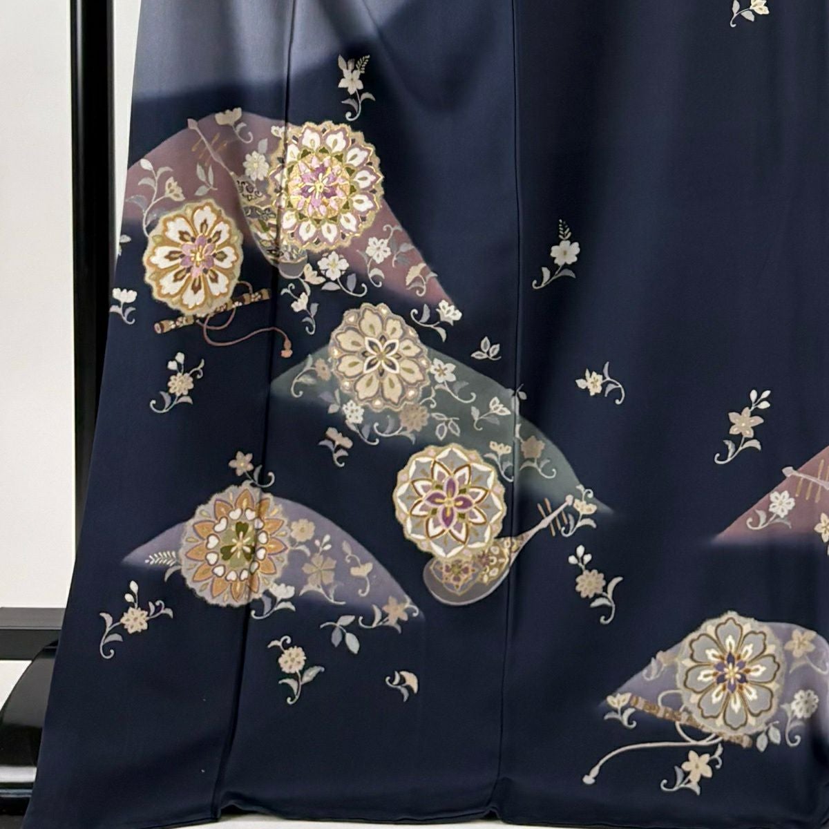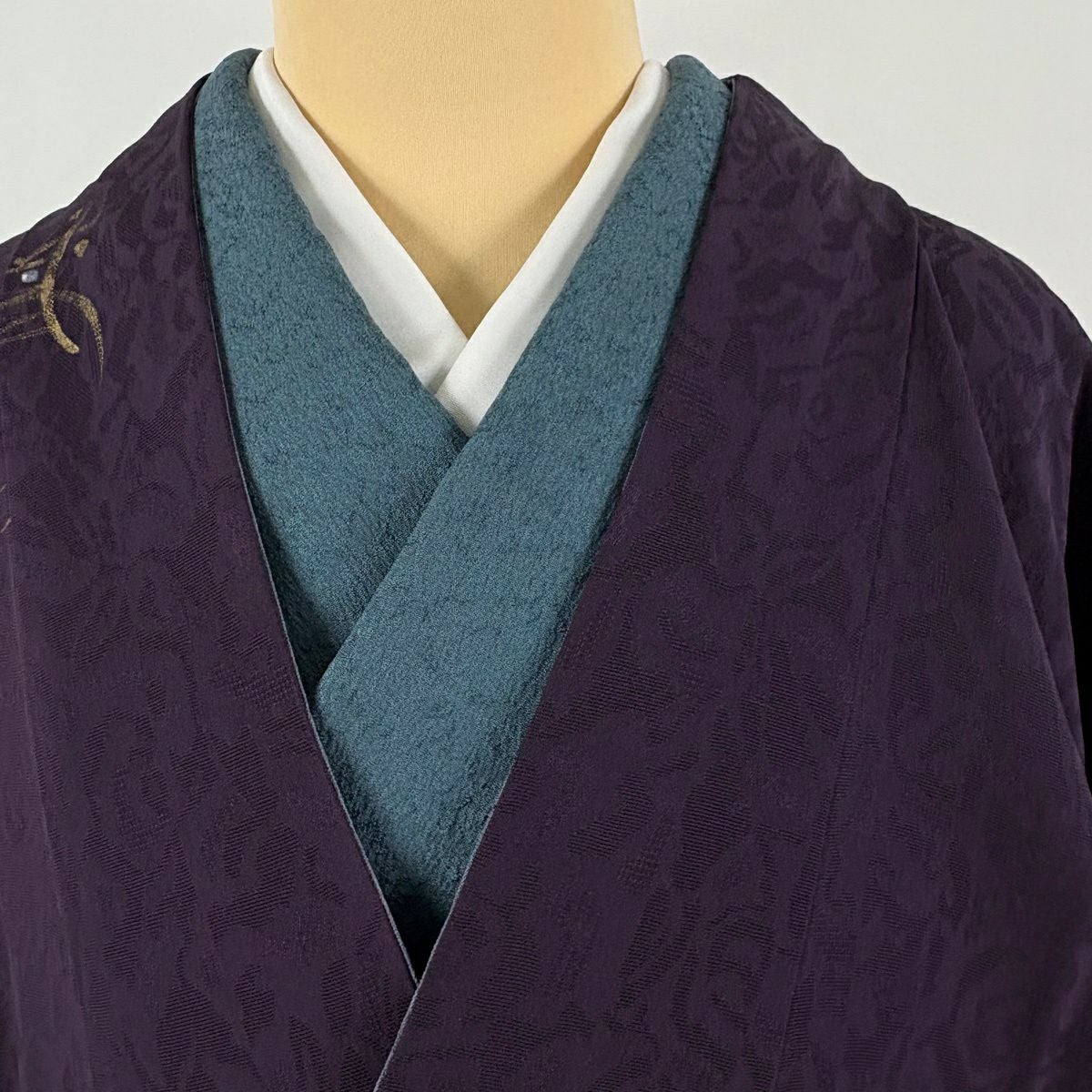 訪問着 身丈174cm 裄丈67.5cm L 袷 帝王紫 落款あり 華文 和楽器 金糸 金彩 青灰色 正絹 逸品