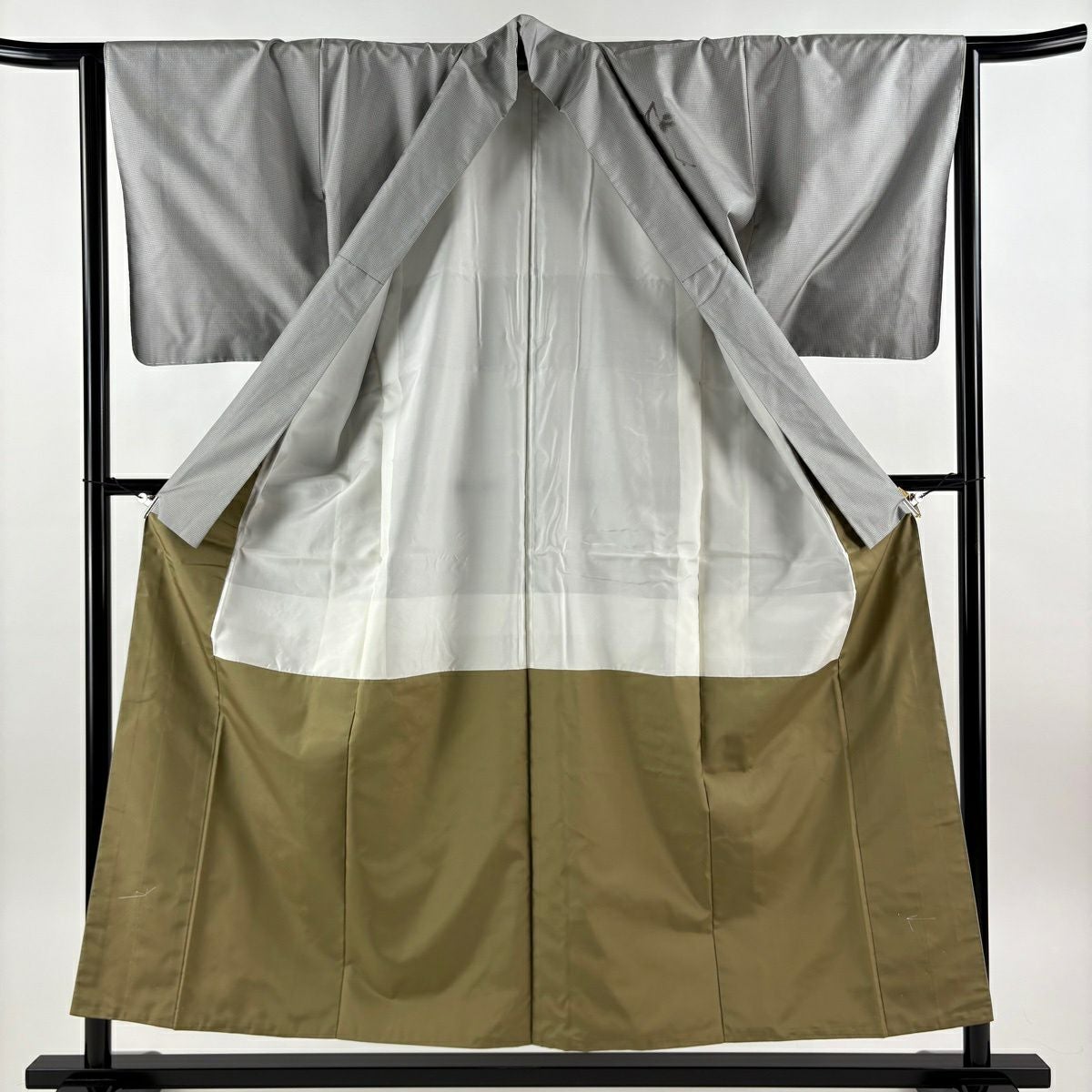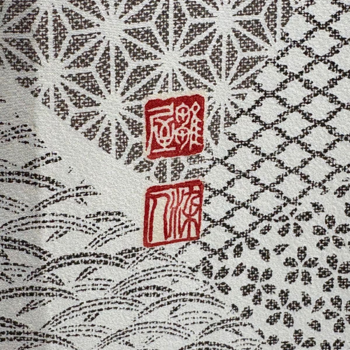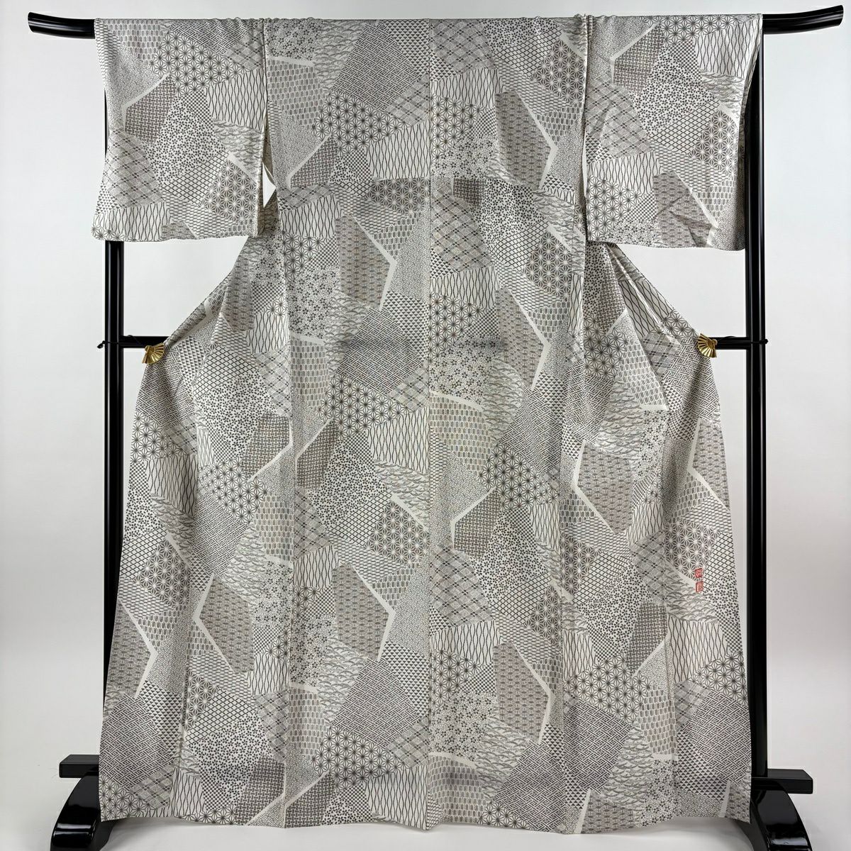 【美品】 小紋 身丈167.5cm 裄丈69cm L 単衣 雛屋 落款あり 有職文様 寄せ柄 灰白 正絹 逸品