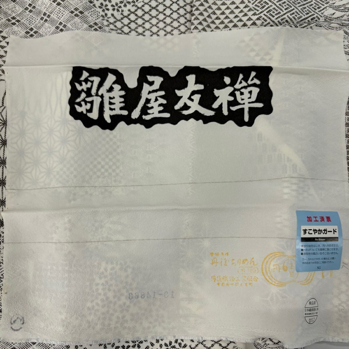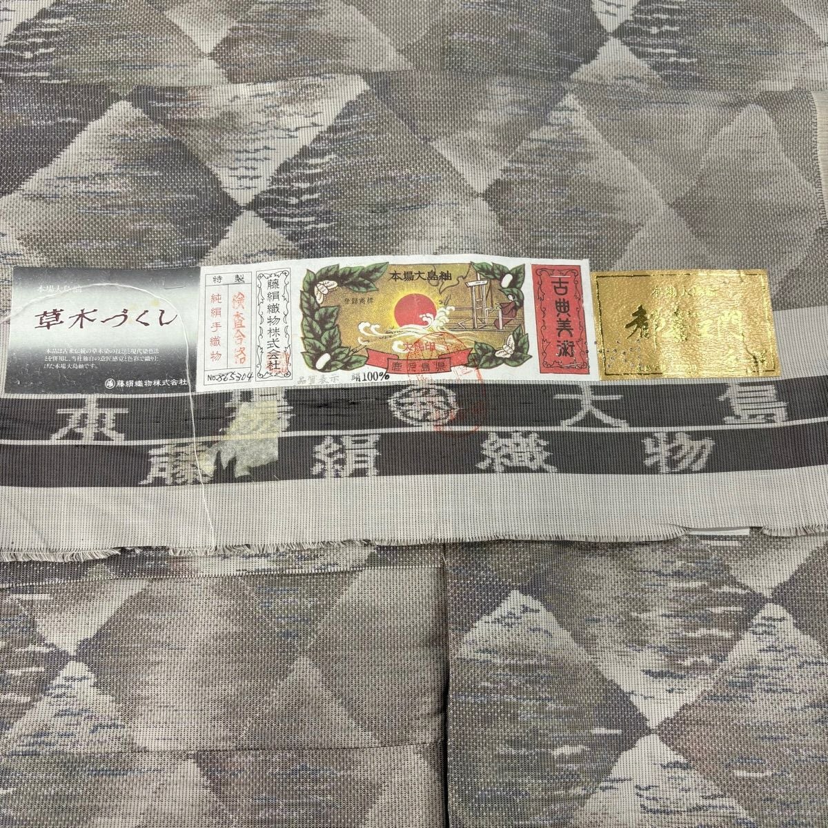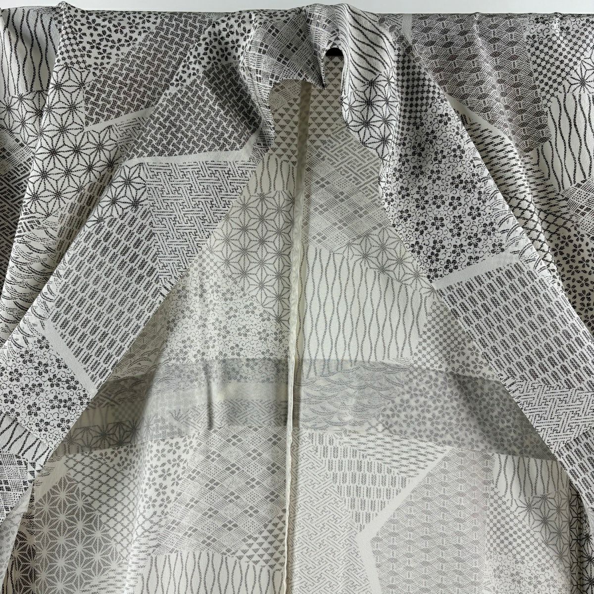 【美品】 小紋 身丈167.5cm 裄丈69cm L 単衣 雛屋 落款あり 有職文様 寄せ柄 灰白 正絹 逸品