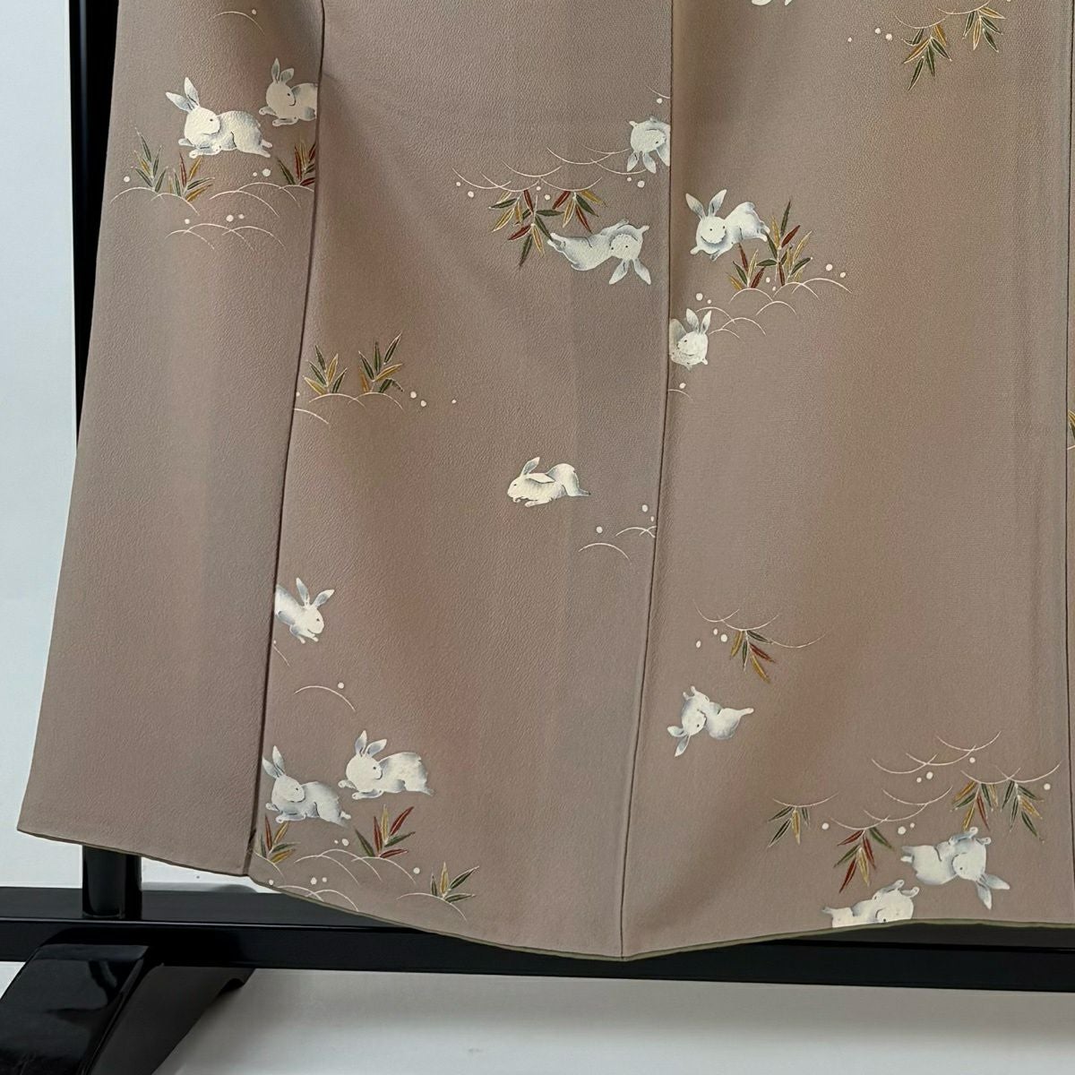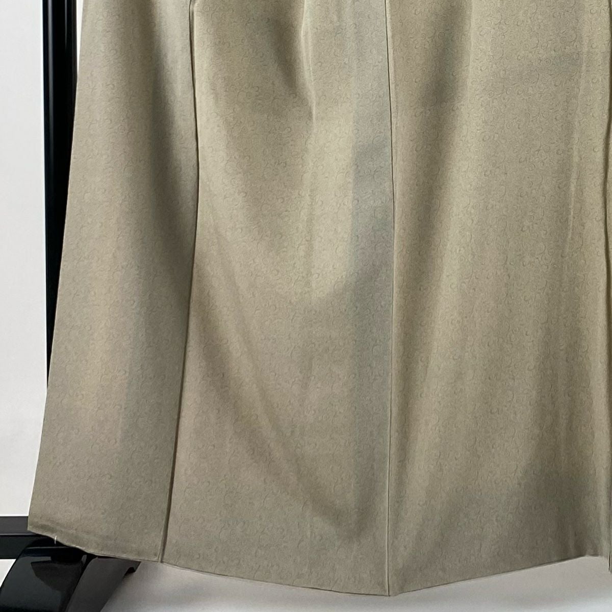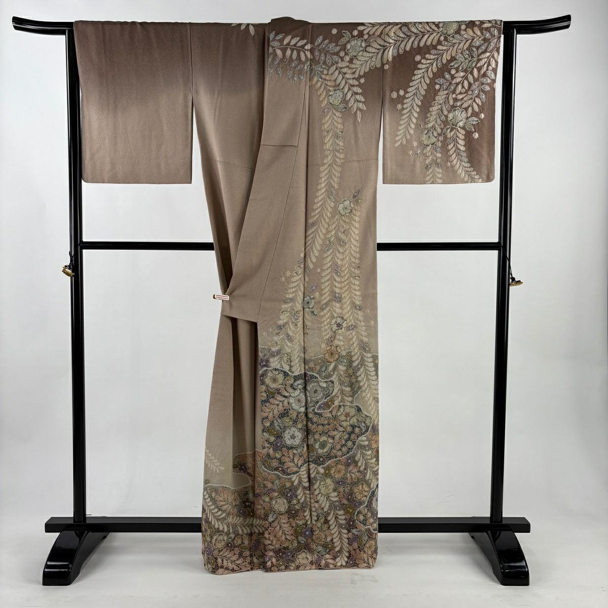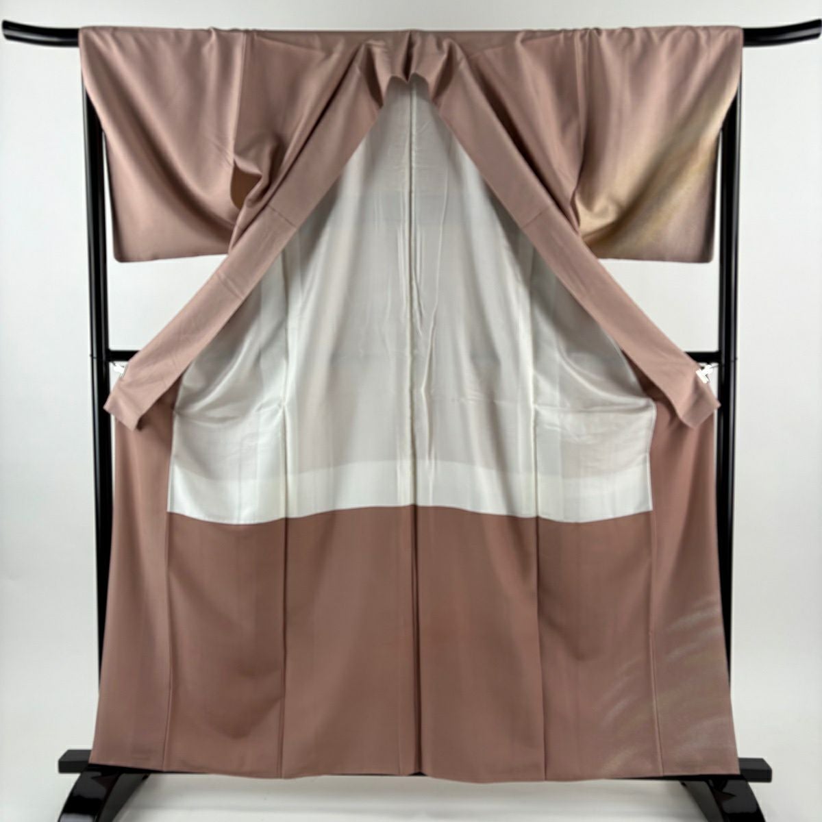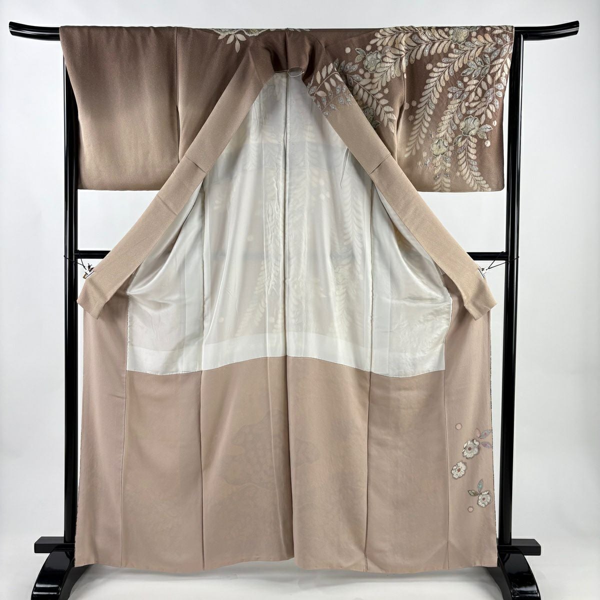 付下げ 身丈158.5cm 裄丈66cm M 袷 南 克治 落款あり 建物 松竹梅 ぼかし 抹茶色 正絹 逸品