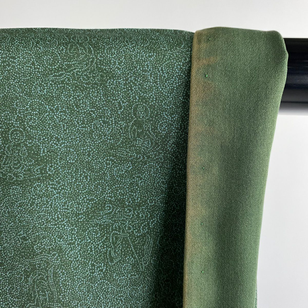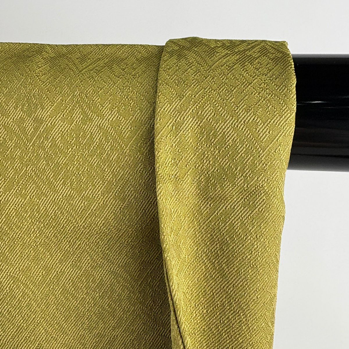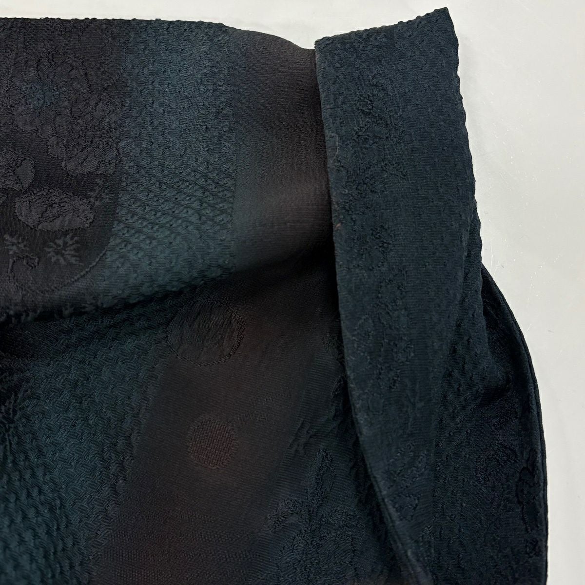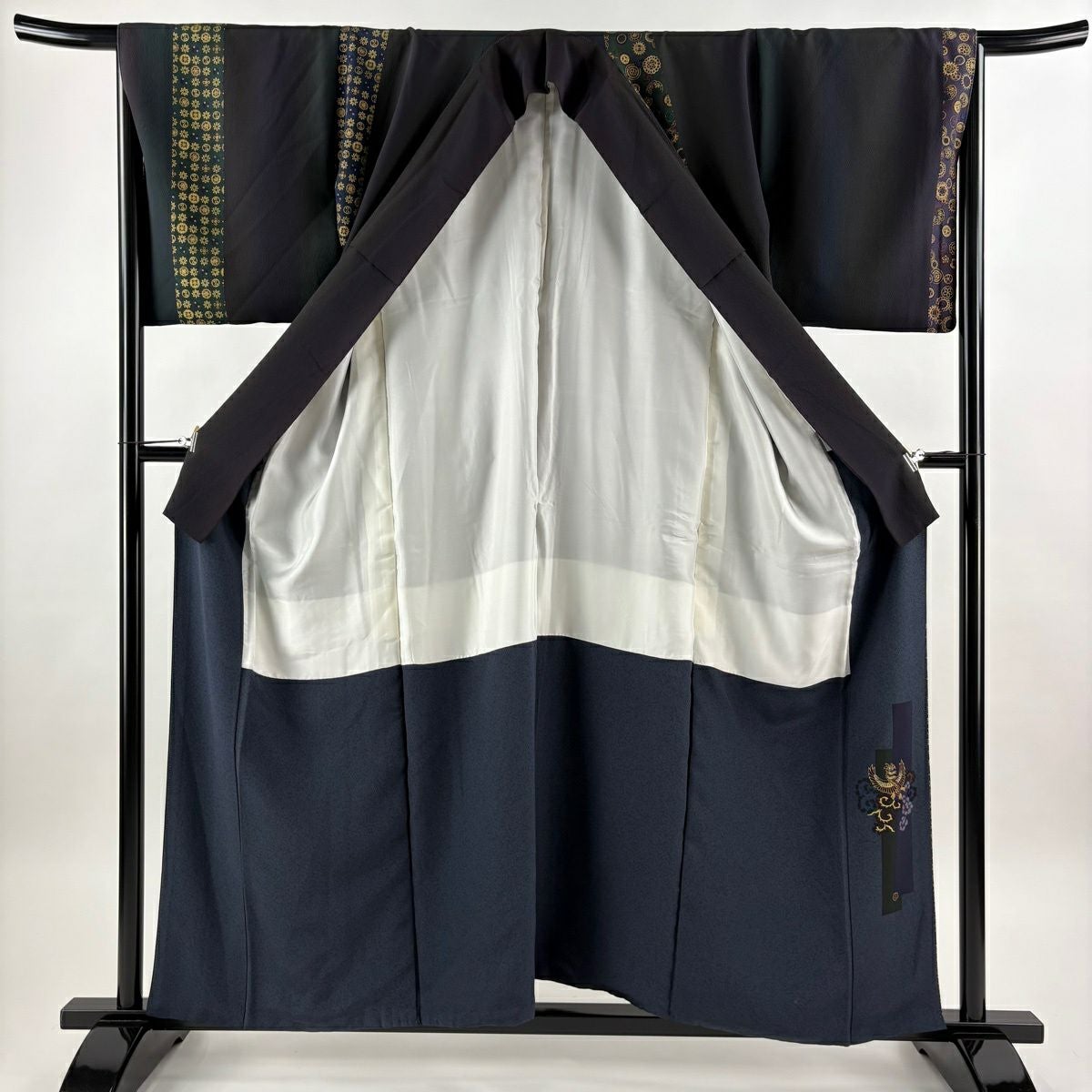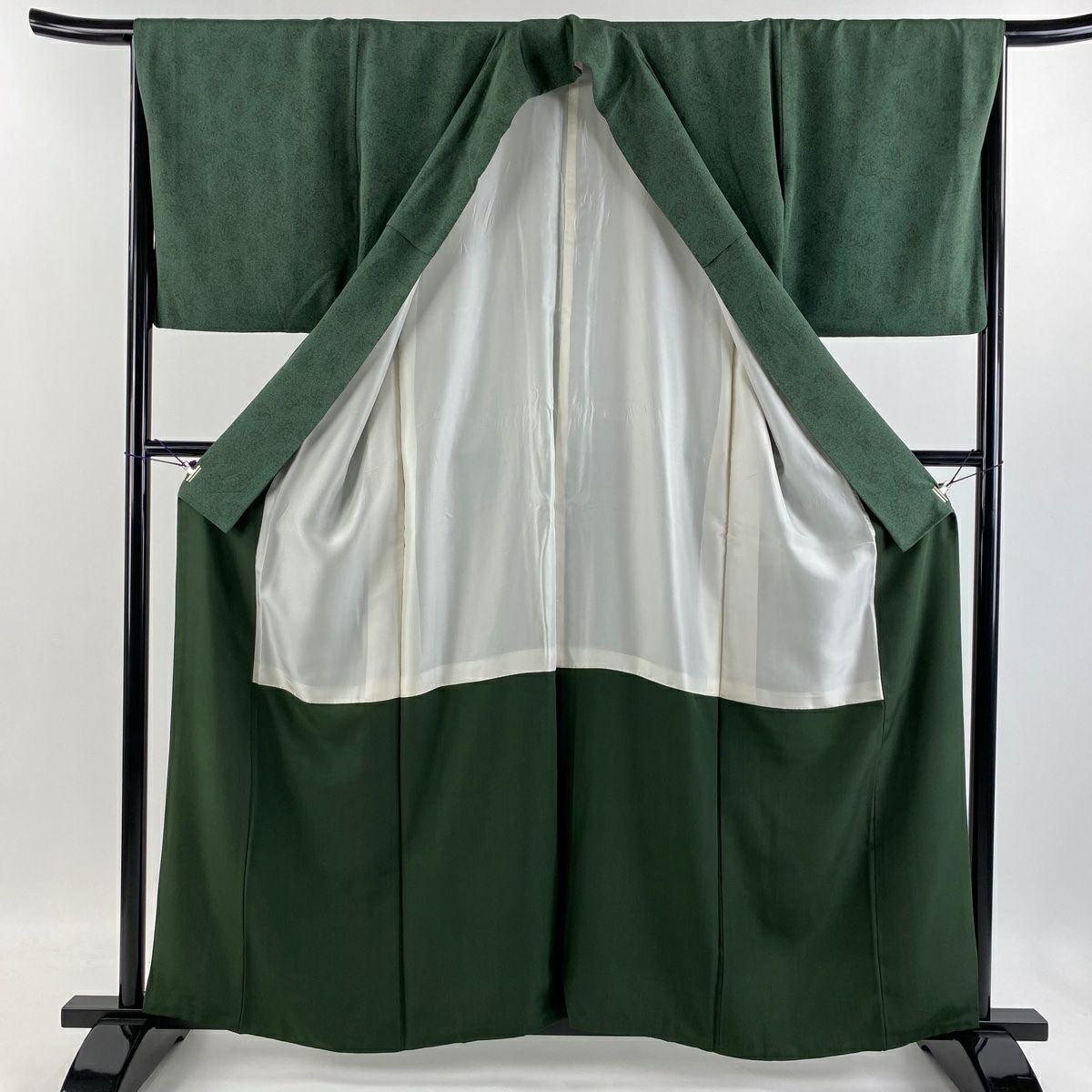 付下げ 身丈158.5cm 裄丈68cm L 袷 前田仁仙 落款あり 幾何学 金彩 ちりめん 深緑 正絹 逸品