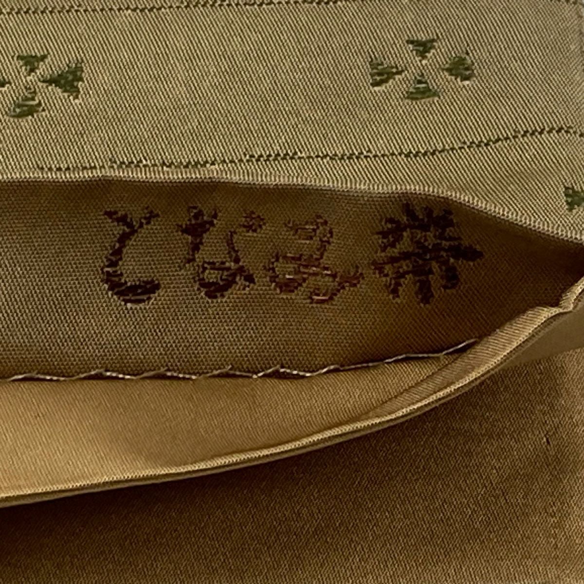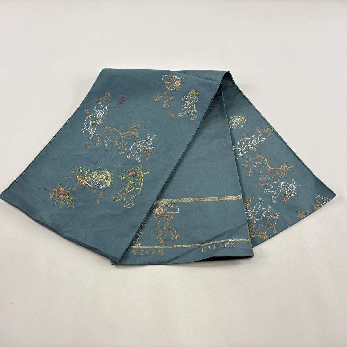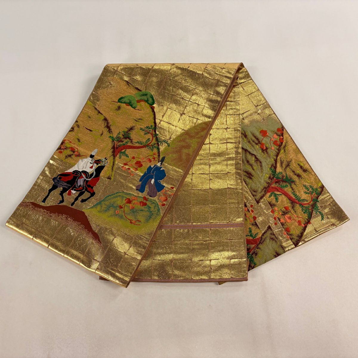 【在庫一掃】 【美品】 袋帯 逸品 北出与三郎 落款あり 本袋 直狐文二人静文様 金糸 箔 灰緑 六通 正絹