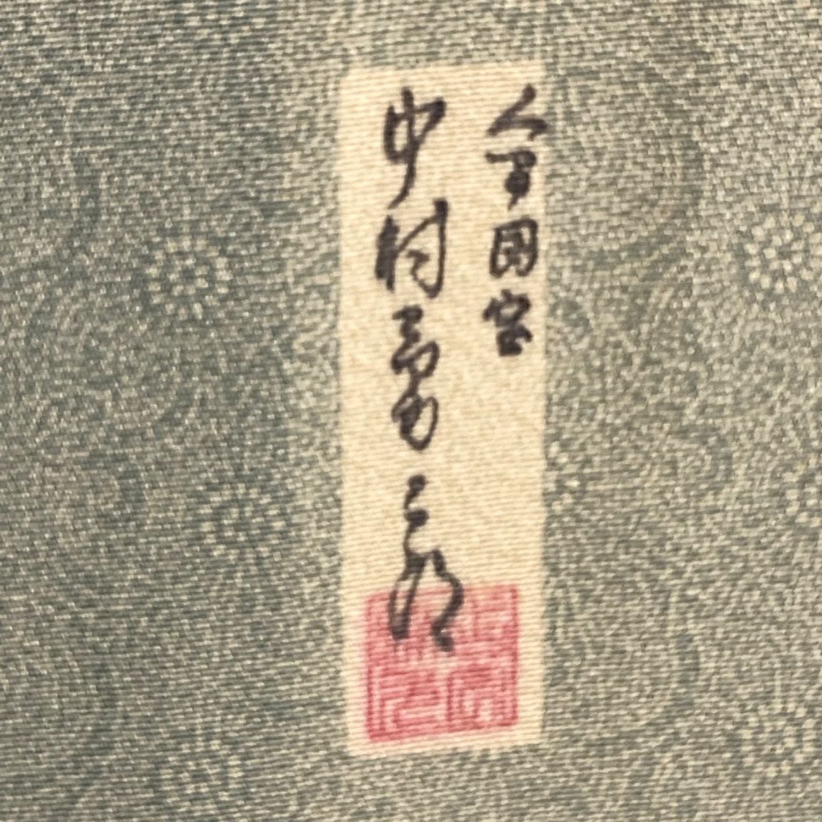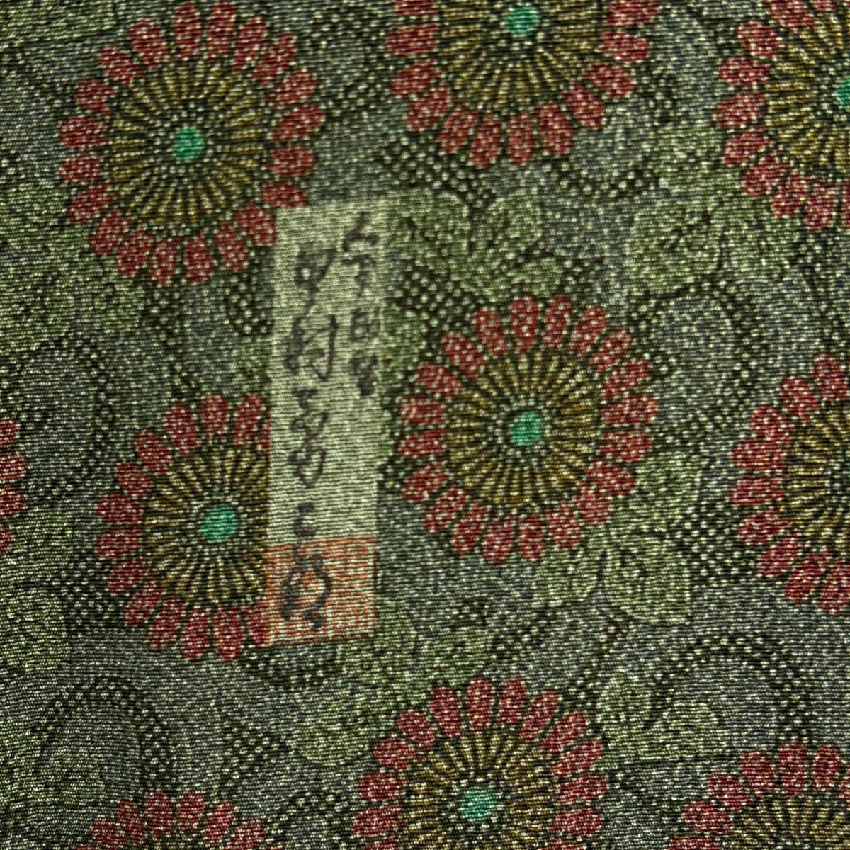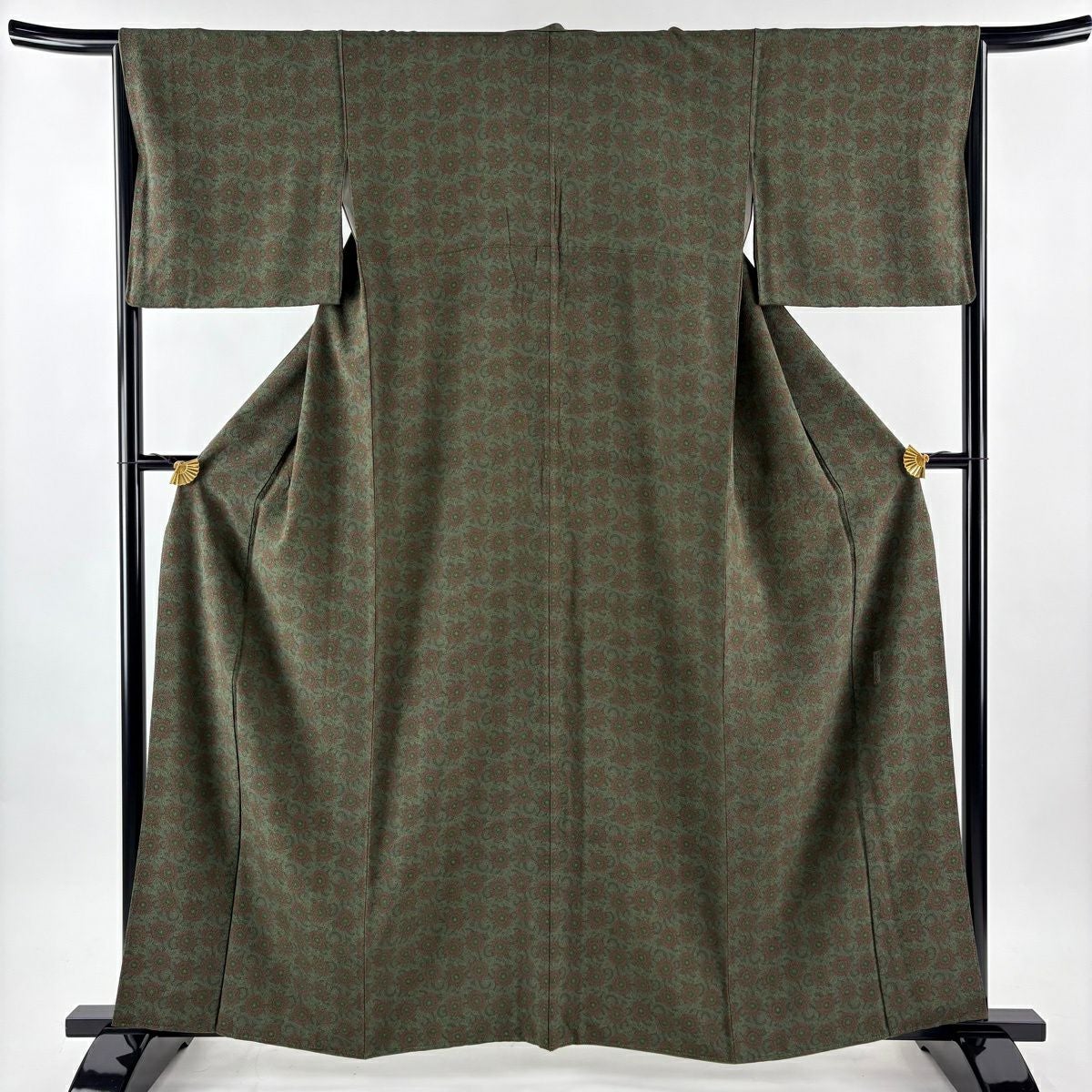 江戸小紋 身丈153cm 裄丈63.5cm S 袷 人間国宝 中村勇二郎 落款あり 古代菊 茶緑色 正絹 逸品