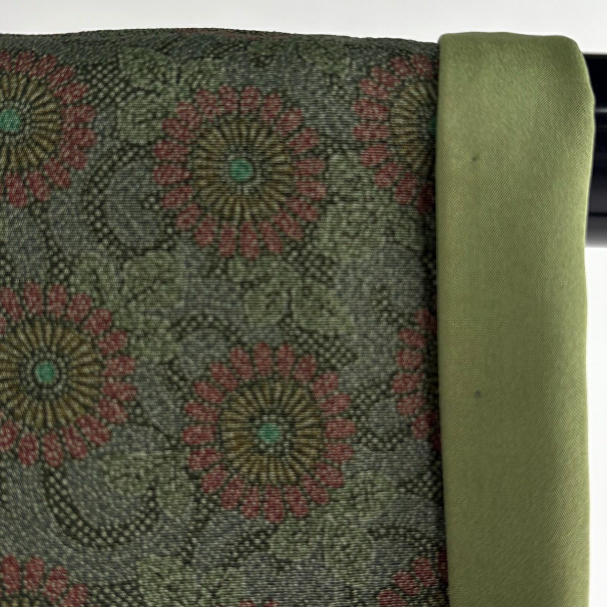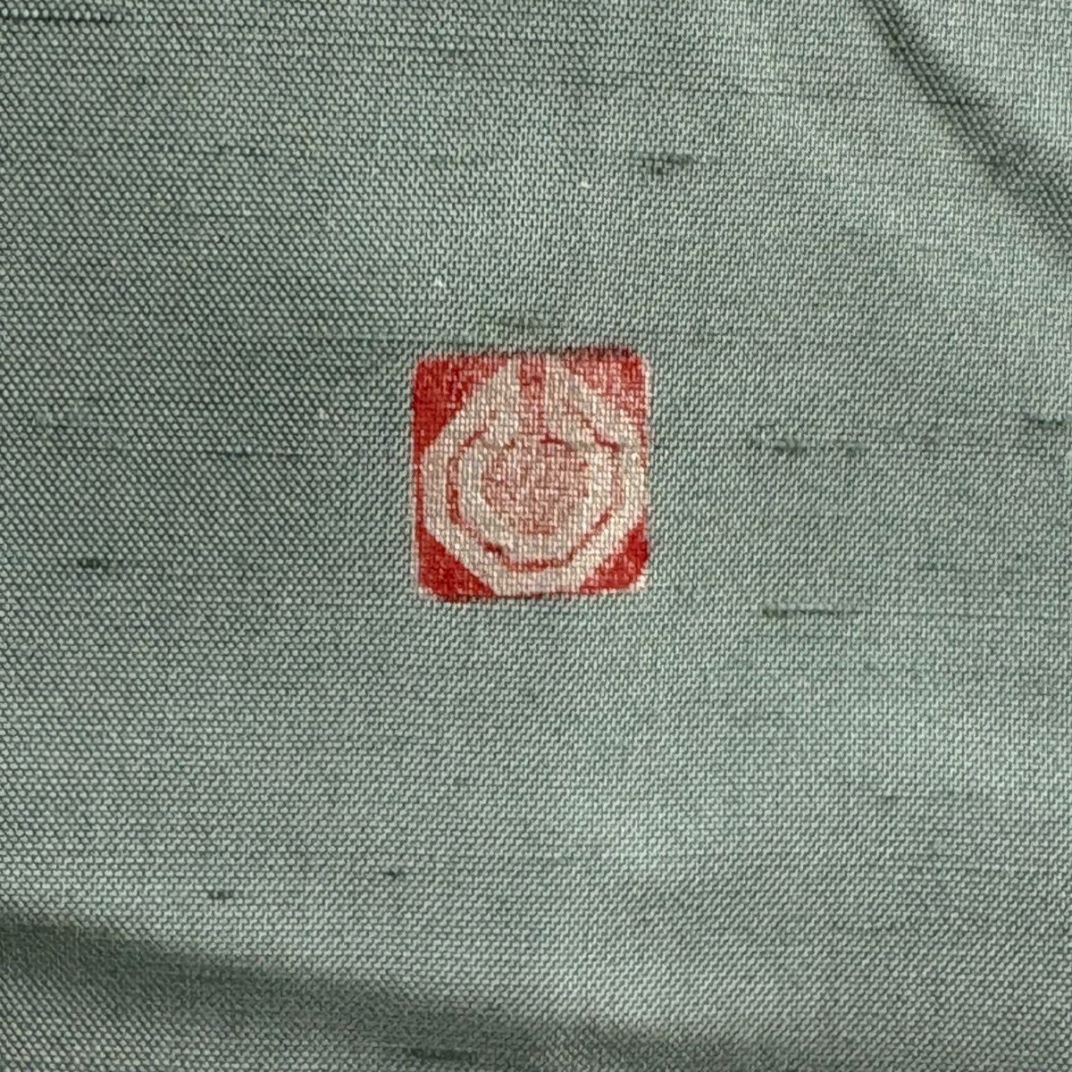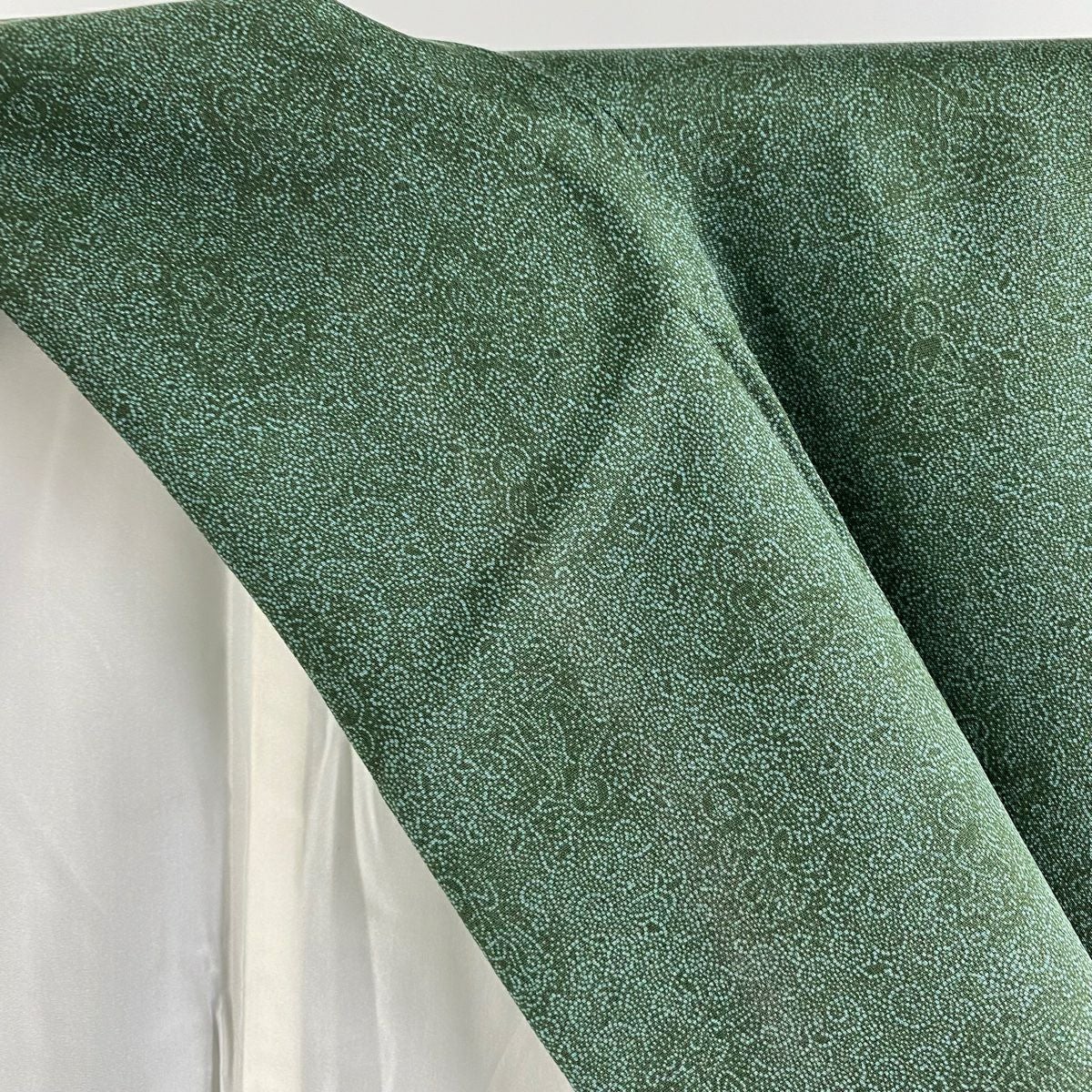 江戸小紋 身丈153cm 裄丈63.5cm S 袷 人間国宝 中村勇二郎 落款あり 古代菊 茶緑色 正絹 逸品