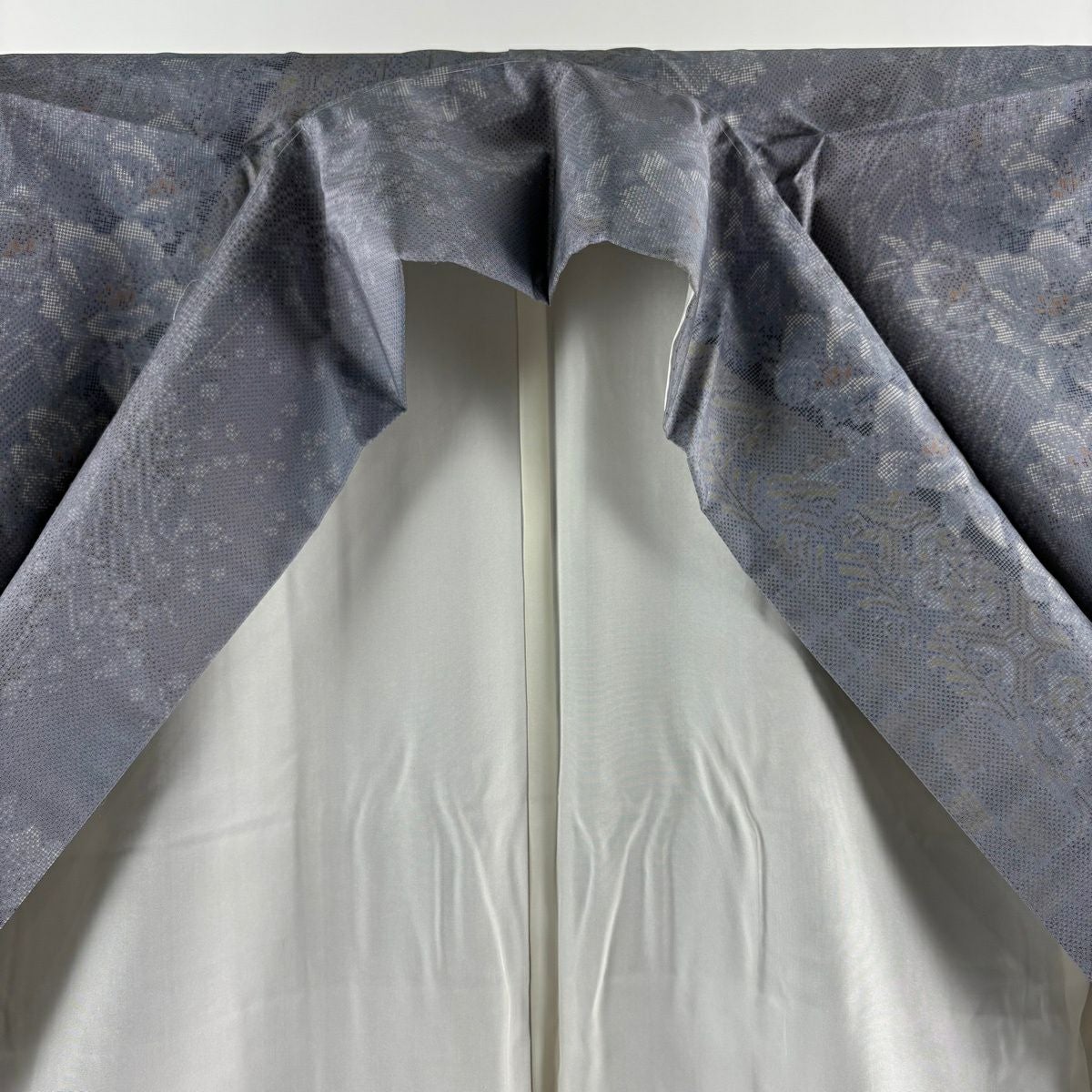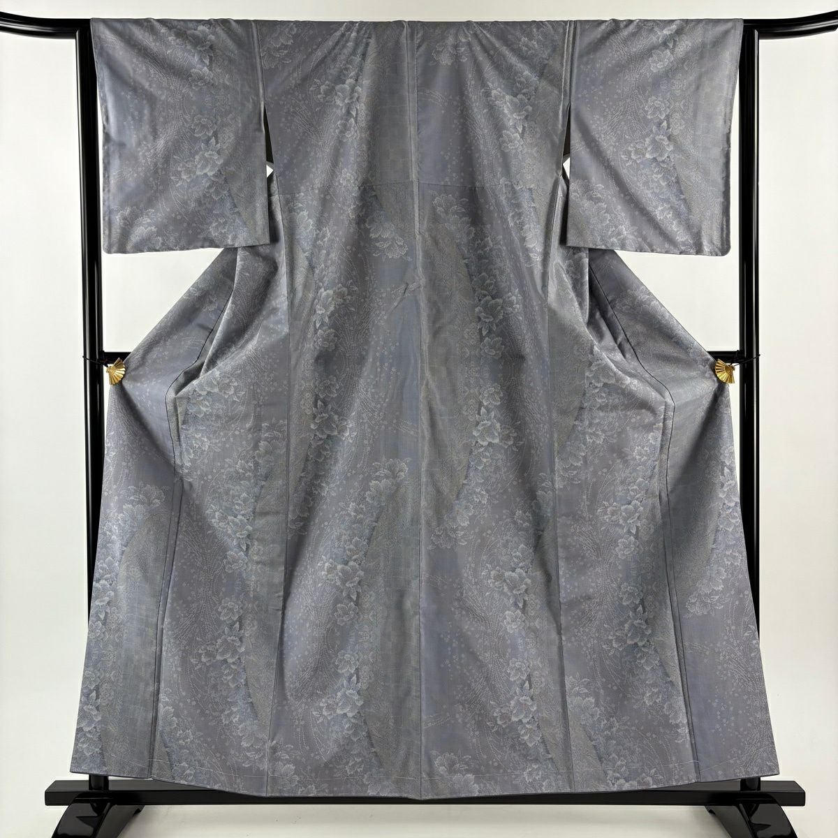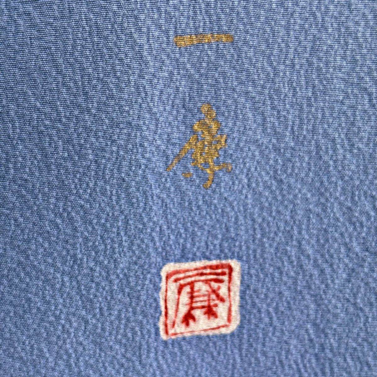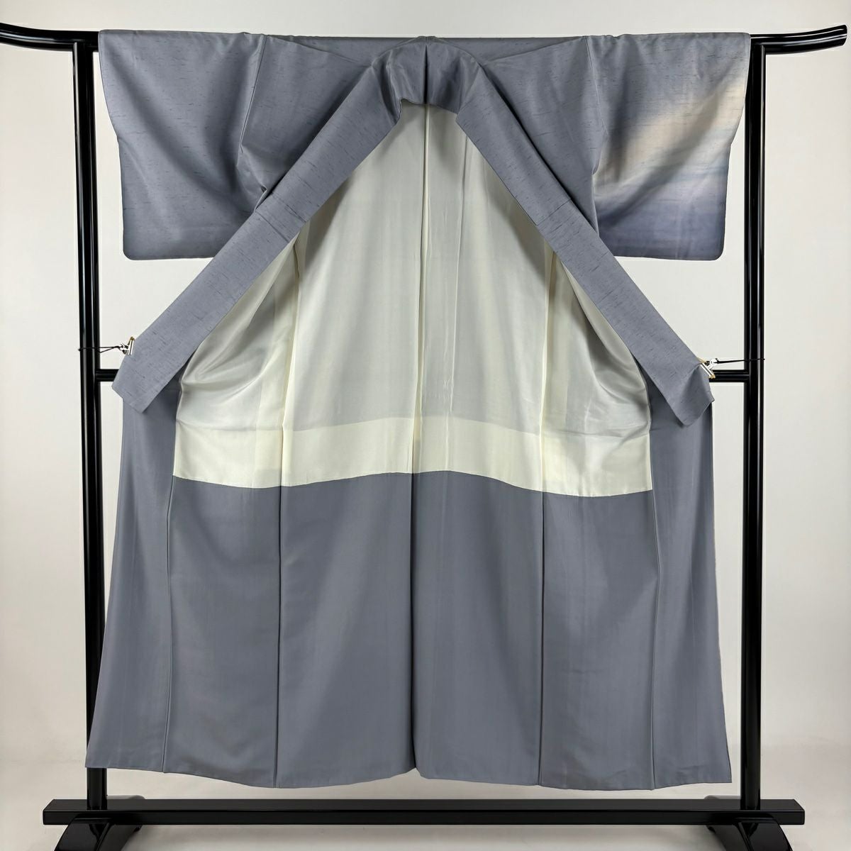 【在庫一掃】 付下げ 身丈153cm 裄丈63cm S 袷 牛首紬地 落款あり 霞 ぼかし 青灰色 正絹 逸品
