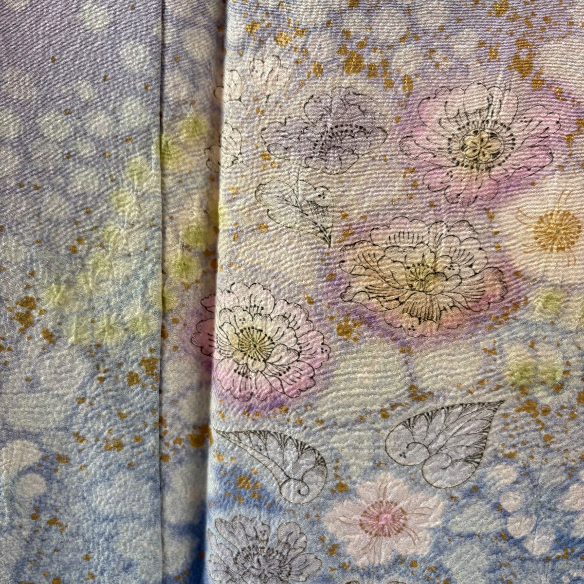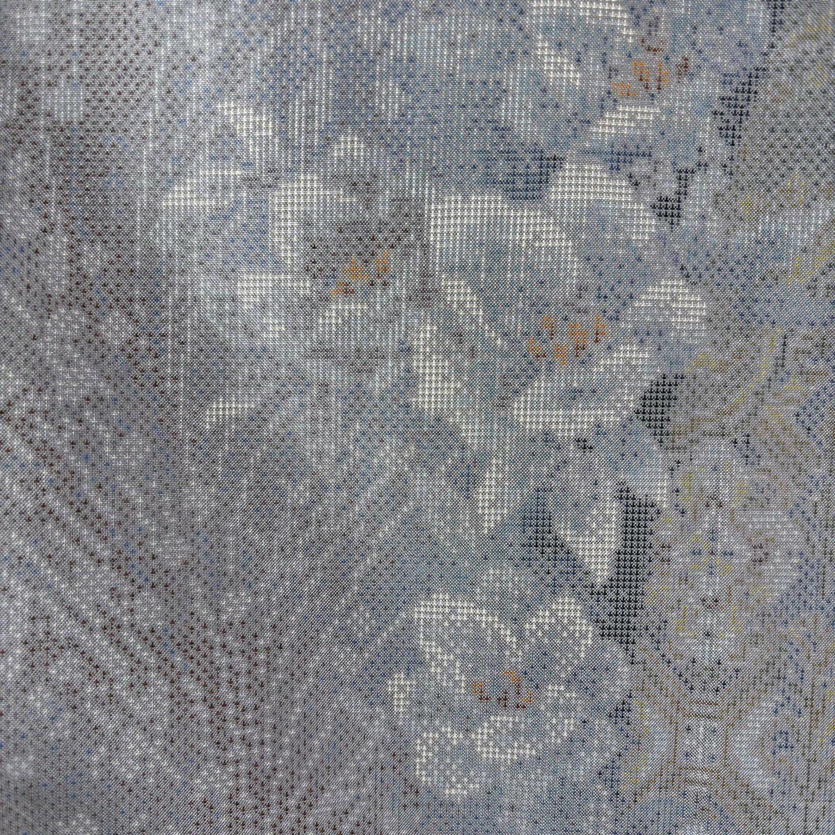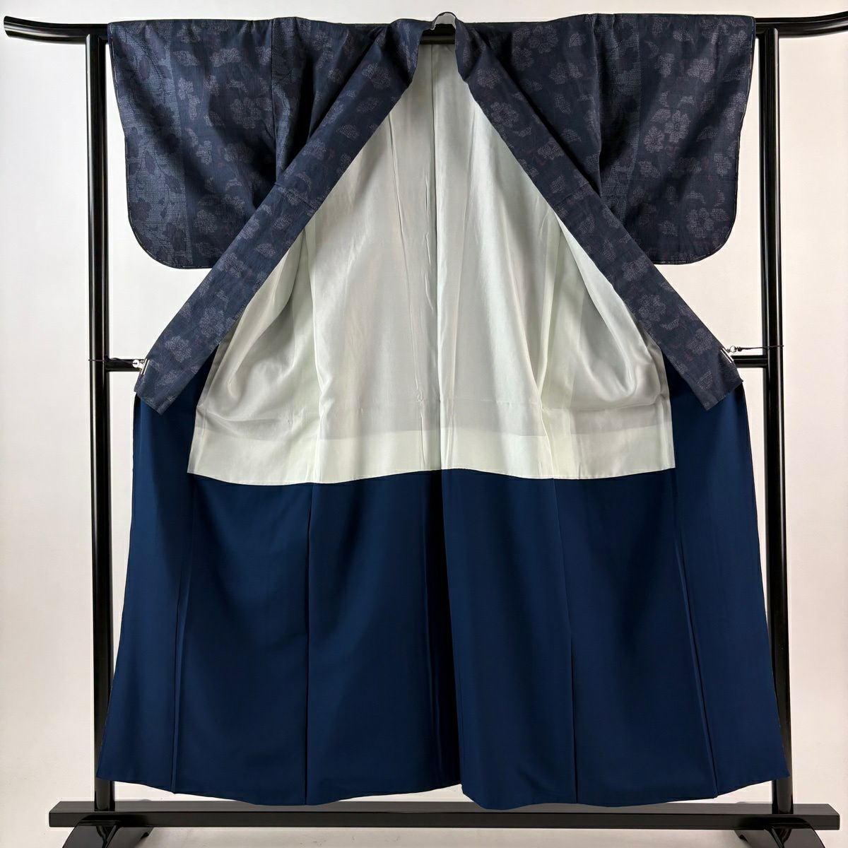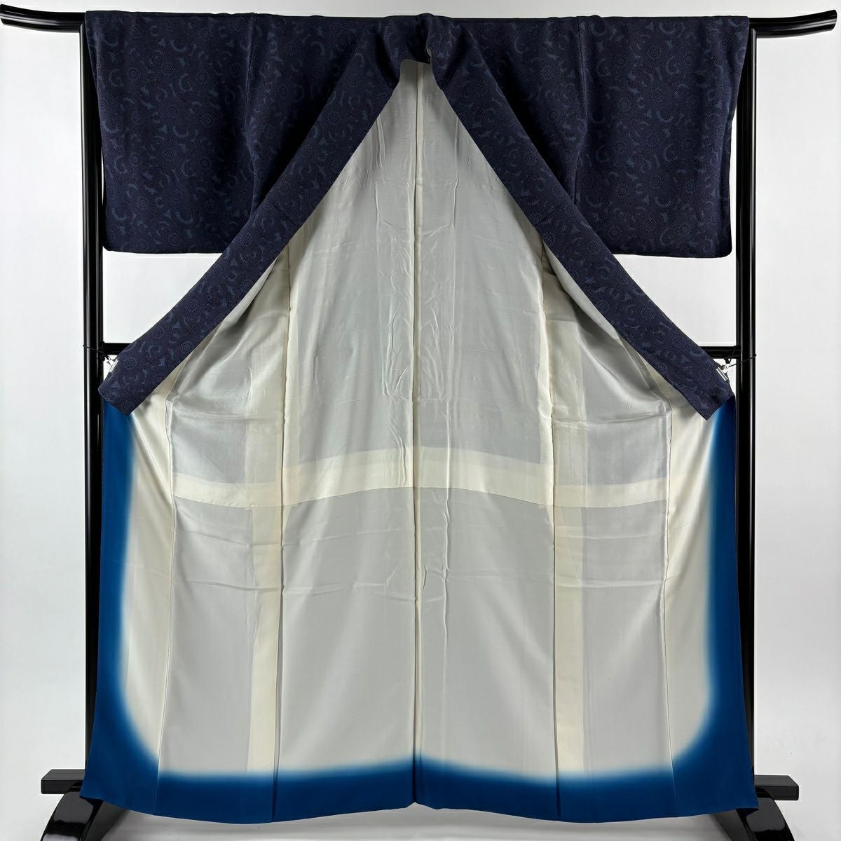 【在庫一掃】 付下げ 身丈153cm 裄丈63cm S 袷 牛首紬地 落款あり 霞 ぼかし 青灰色 正絹 逸品