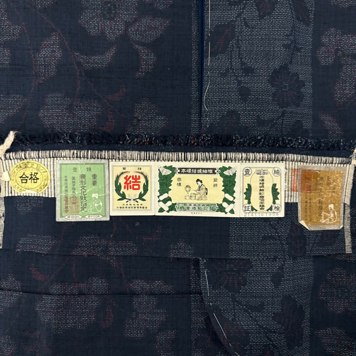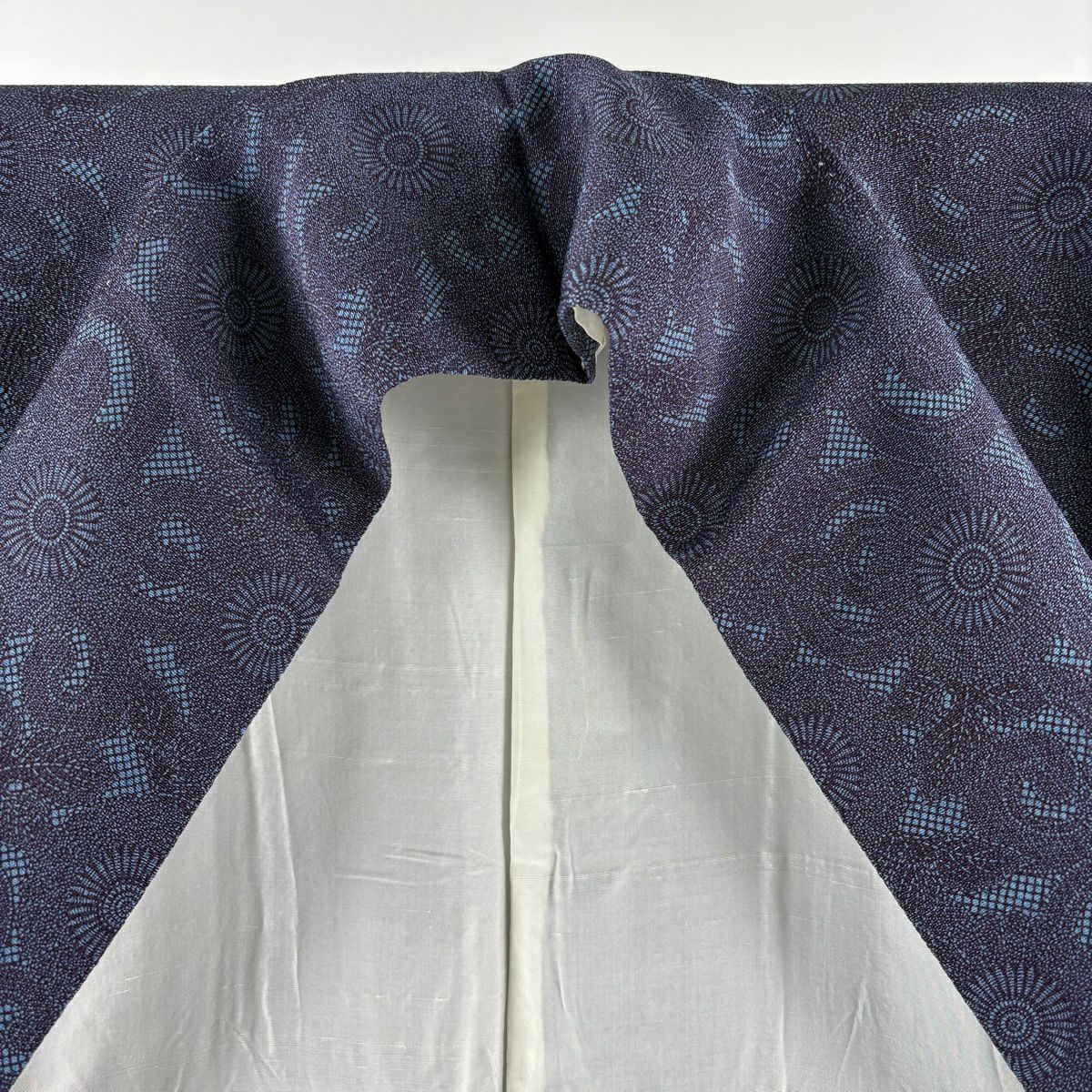 江戸小紋 身丈158.5cm 裄丈66cm M 袷 人間国宝 中村勇二郎 落款あり 古代菊 灰茶 正絹 逸品