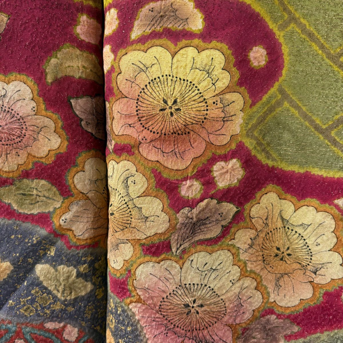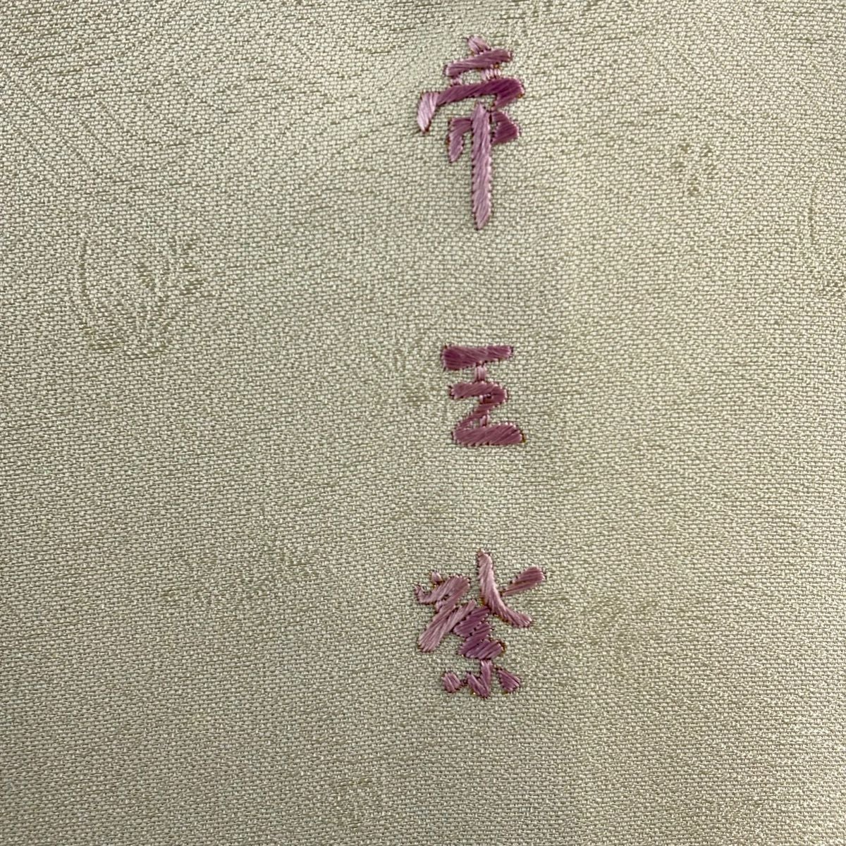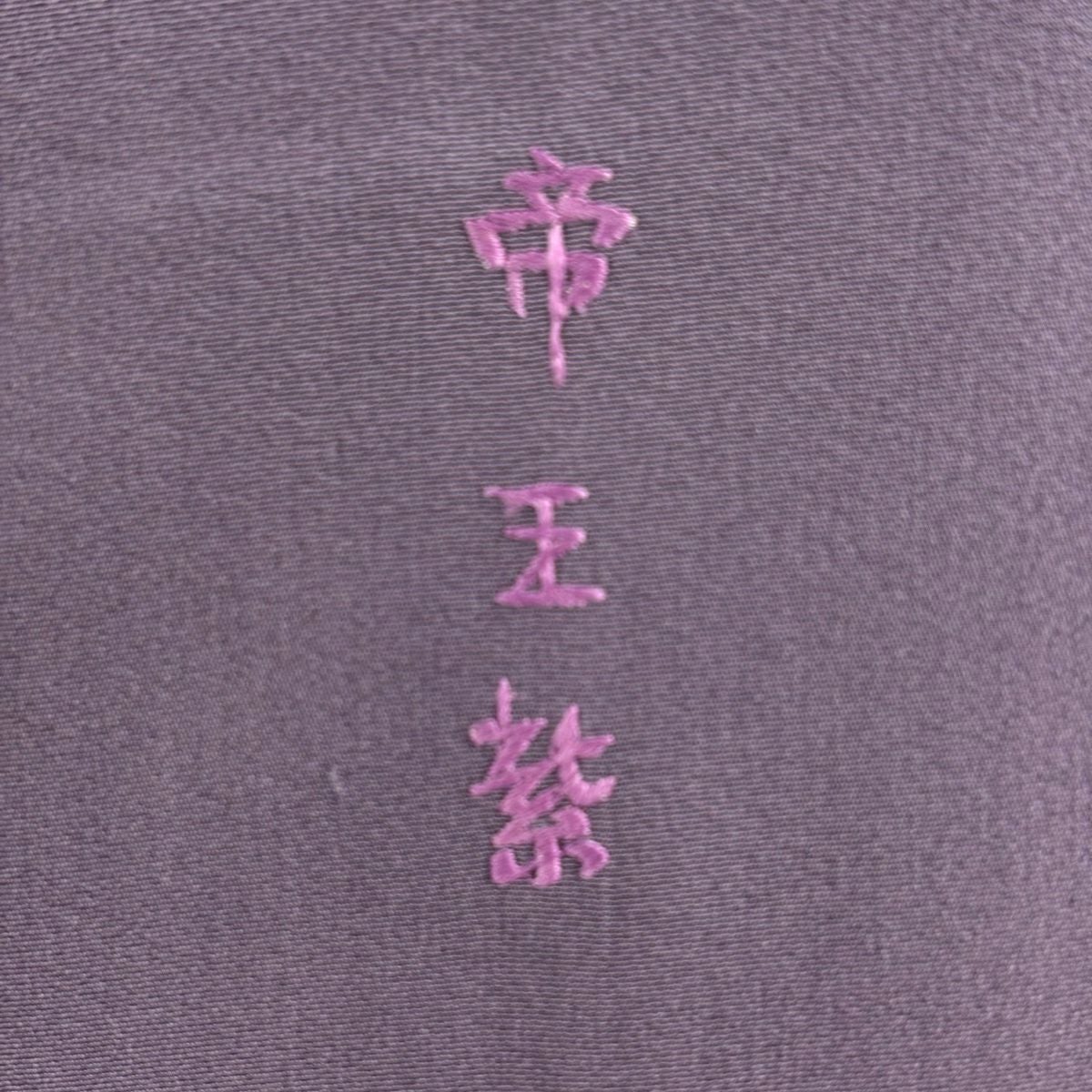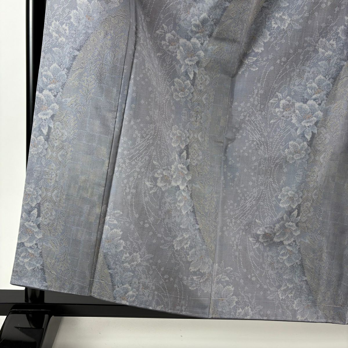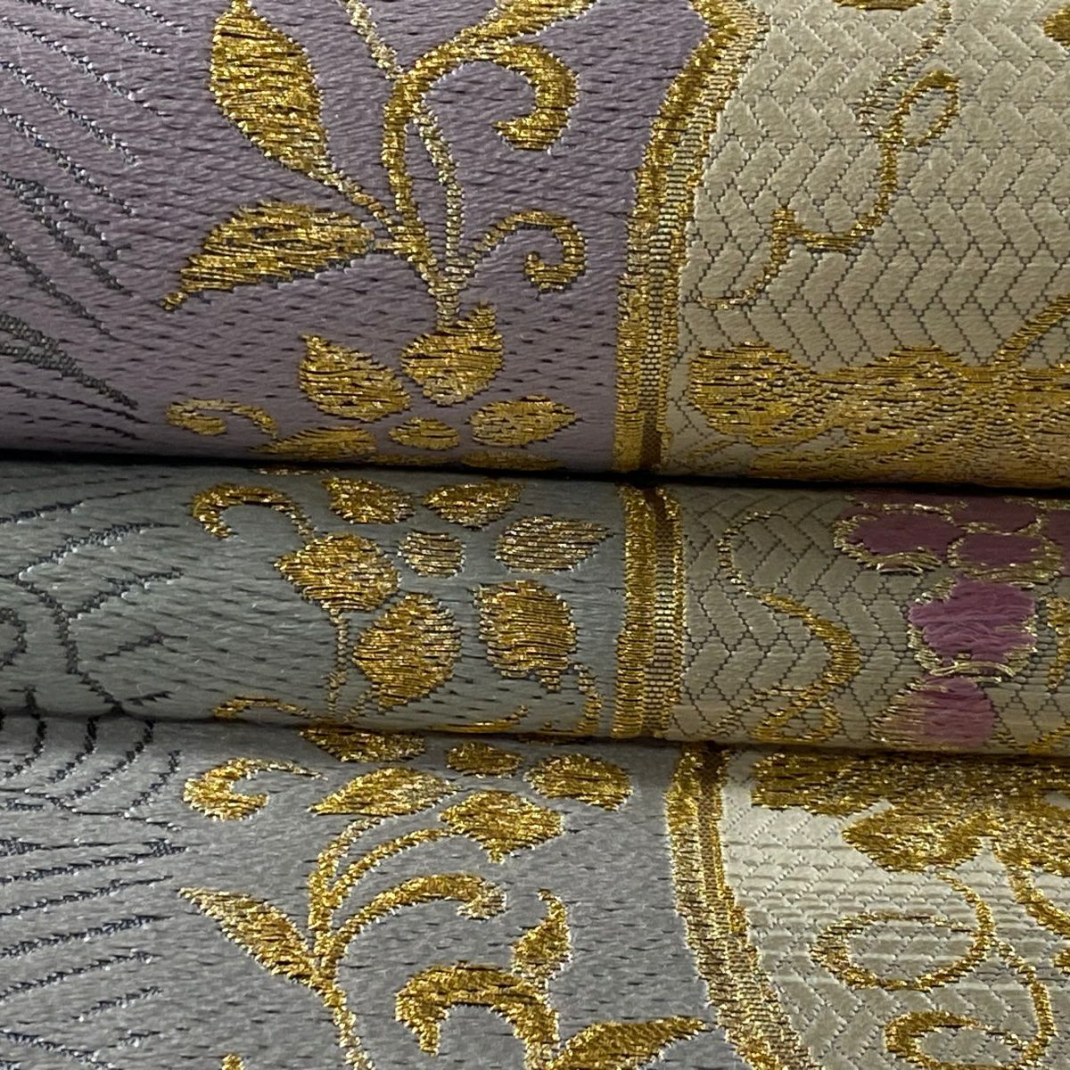 【在庫一掃】 【美品】 袋帯 逸品 北出与三郎 落款あり 本袋 名物暈繝縁唐花文 金糸 箔 灰紫 六通 正絹