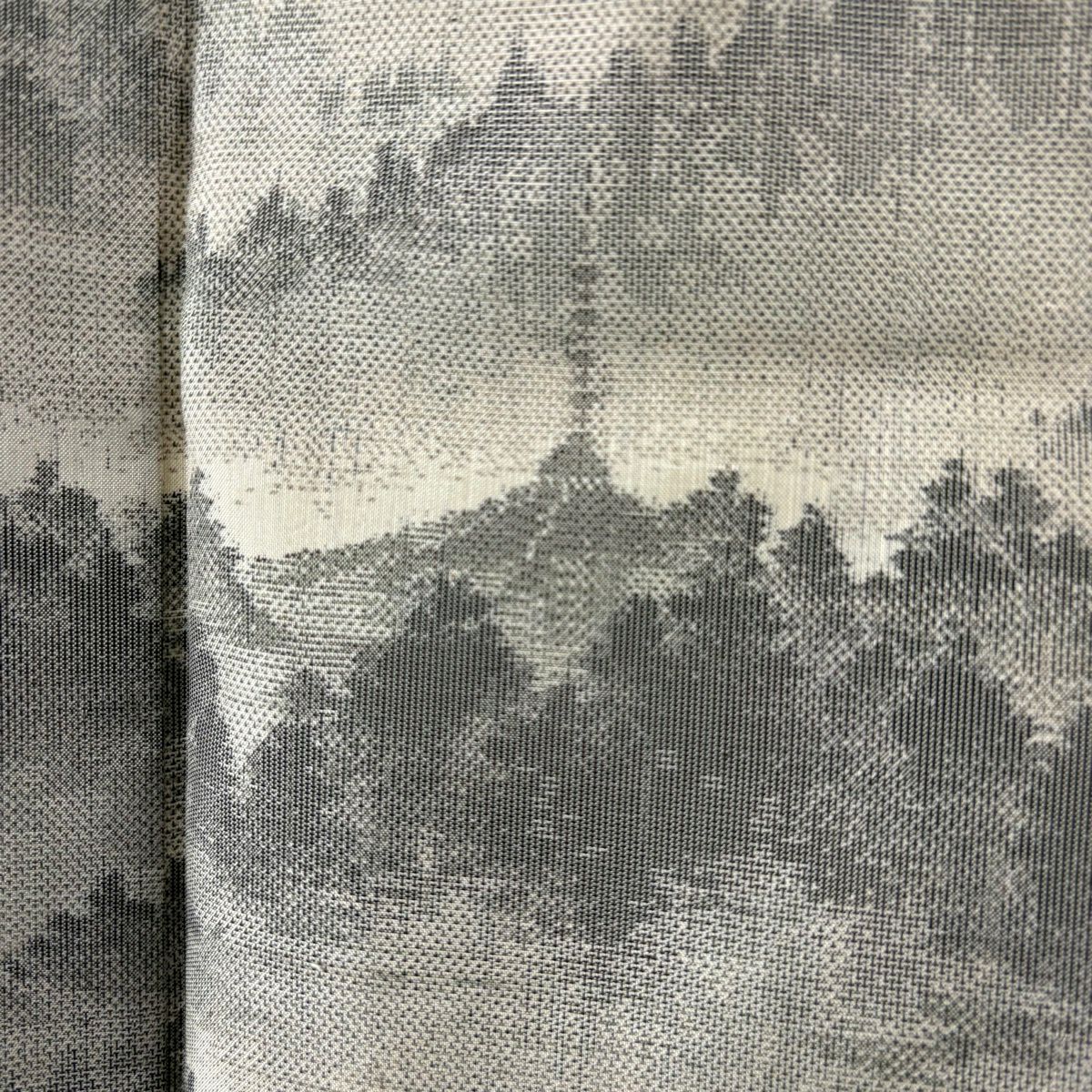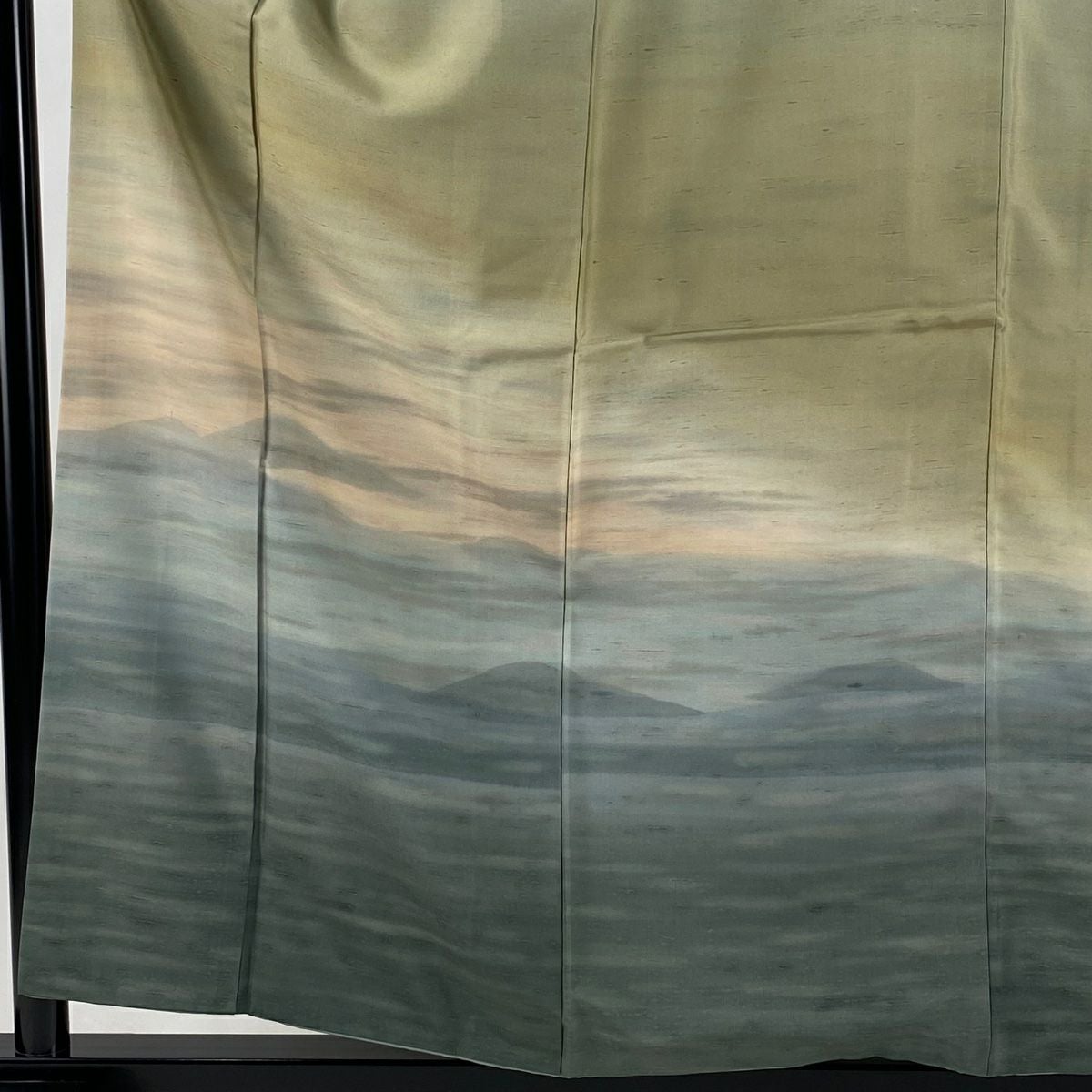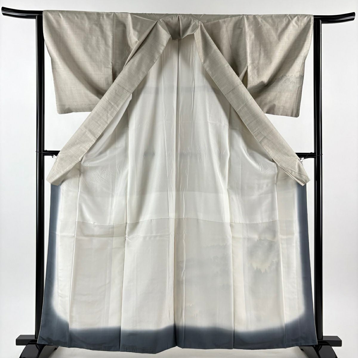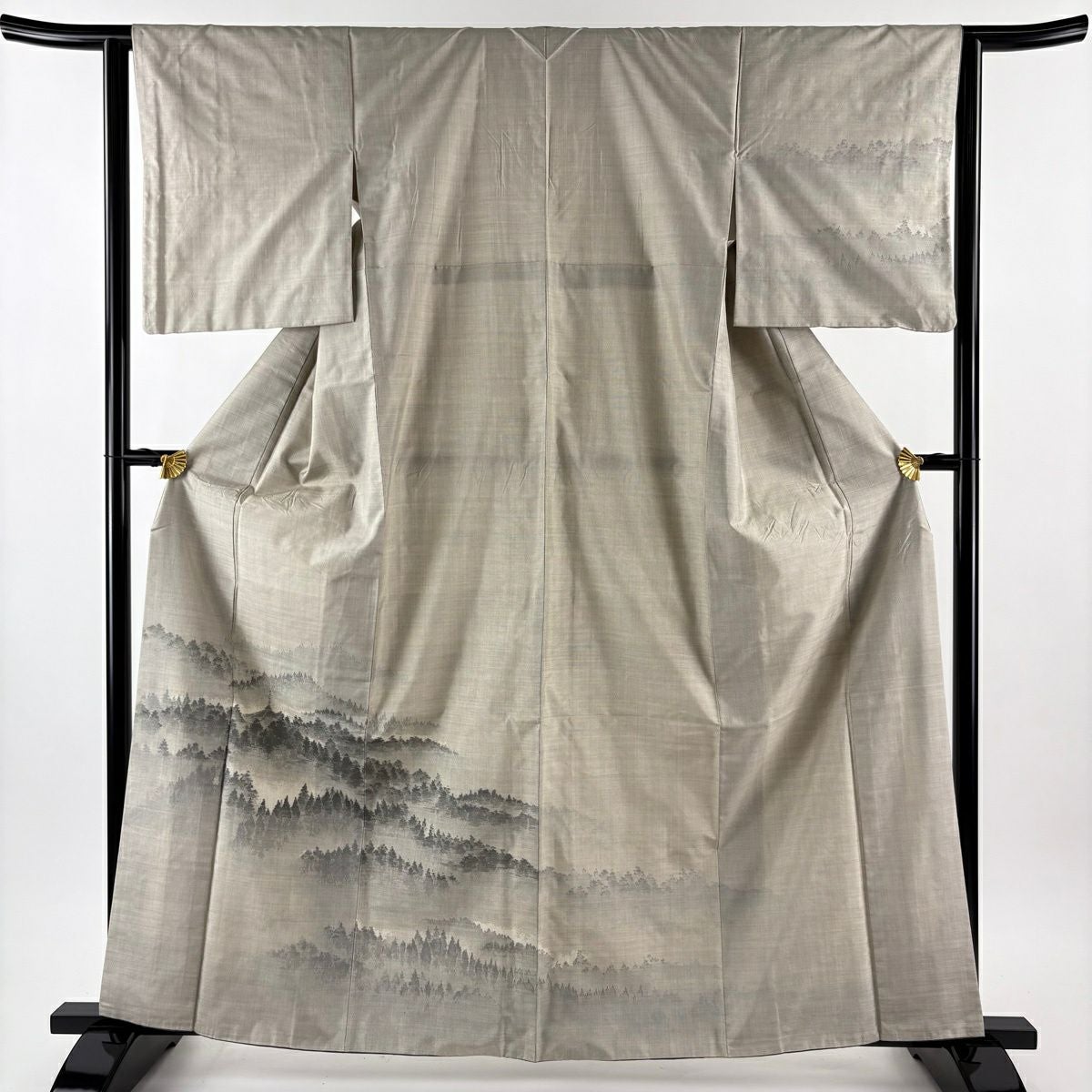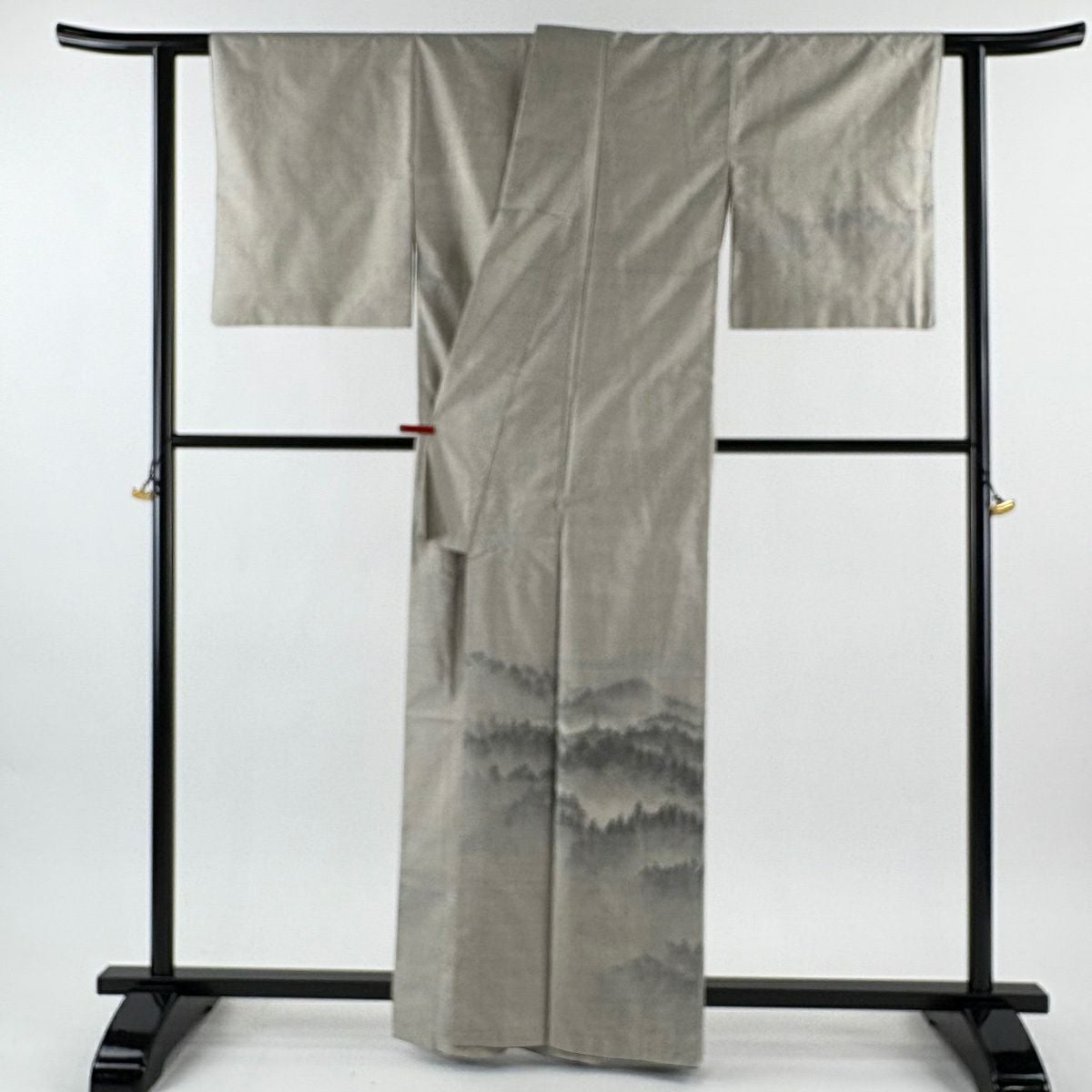 付下げ 身丈157cm 裄丈65cm M 袷 牛首紬地 落款あり 山並み シルエット ぼかし 灰色 正絹 逸品
