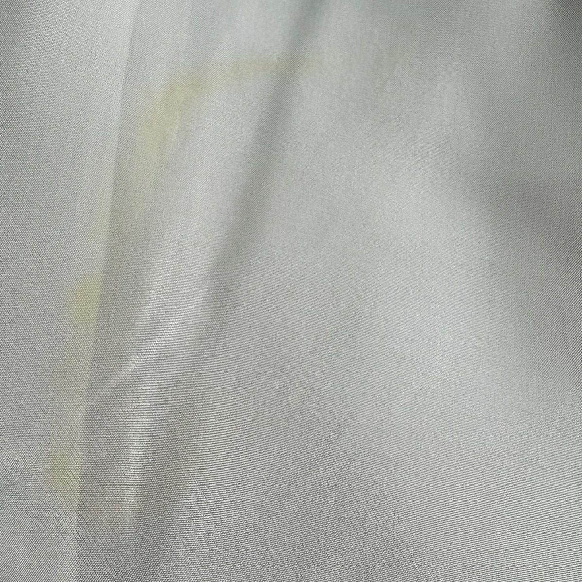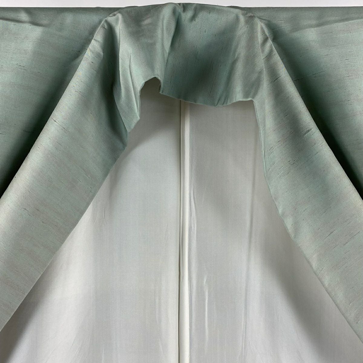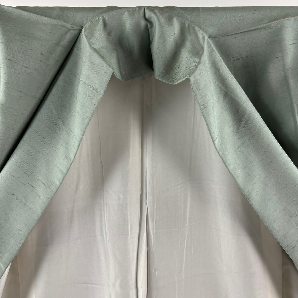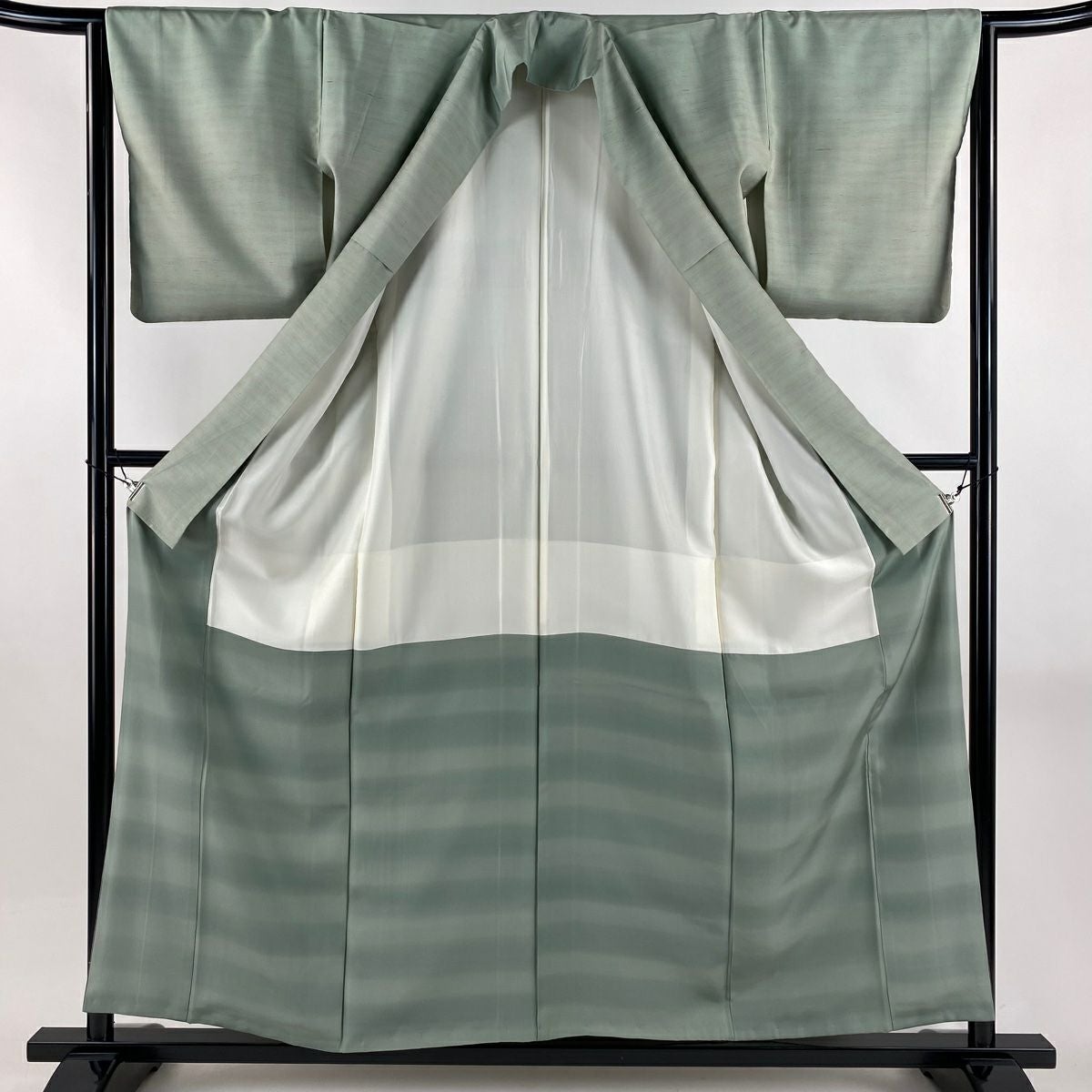 【美品】 付下げ 身丈160cm 裄丈65cm M 袷 牛首紬地 落款あり 水面 霞 ぼかし 灰緑 正絹 逸品