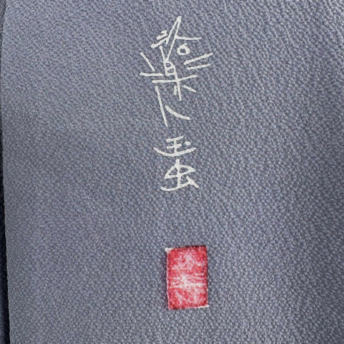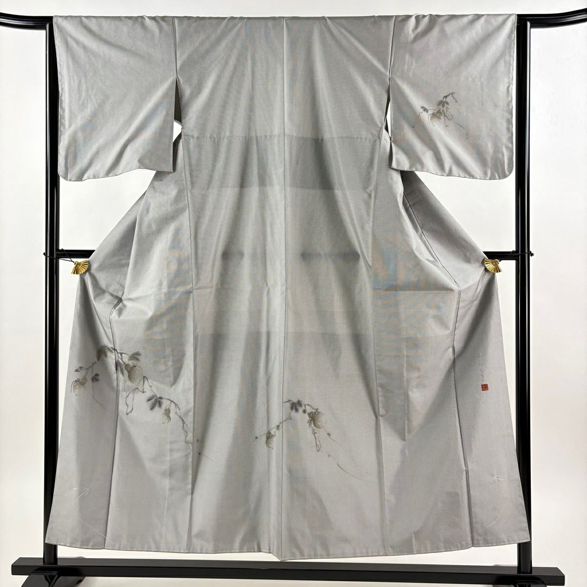 【美品】 付下げ 身丈154cm 裄丈64cm M 袷 蒋雪英 紬地 落款あり 瓢箪 相良刺繍 灰色 正絹 逸品