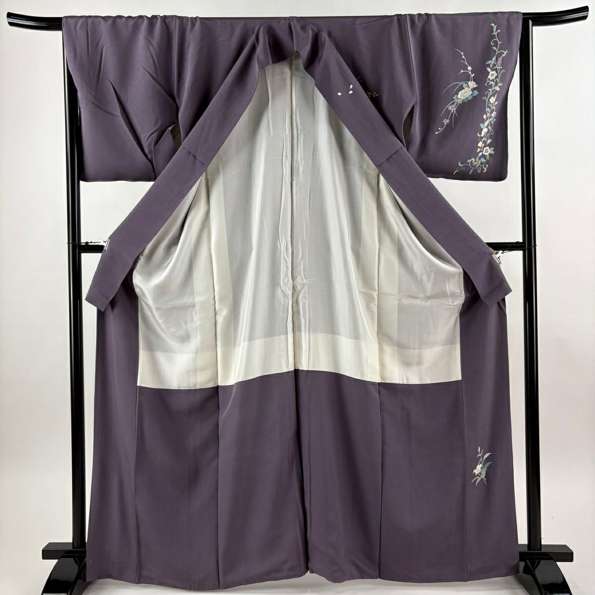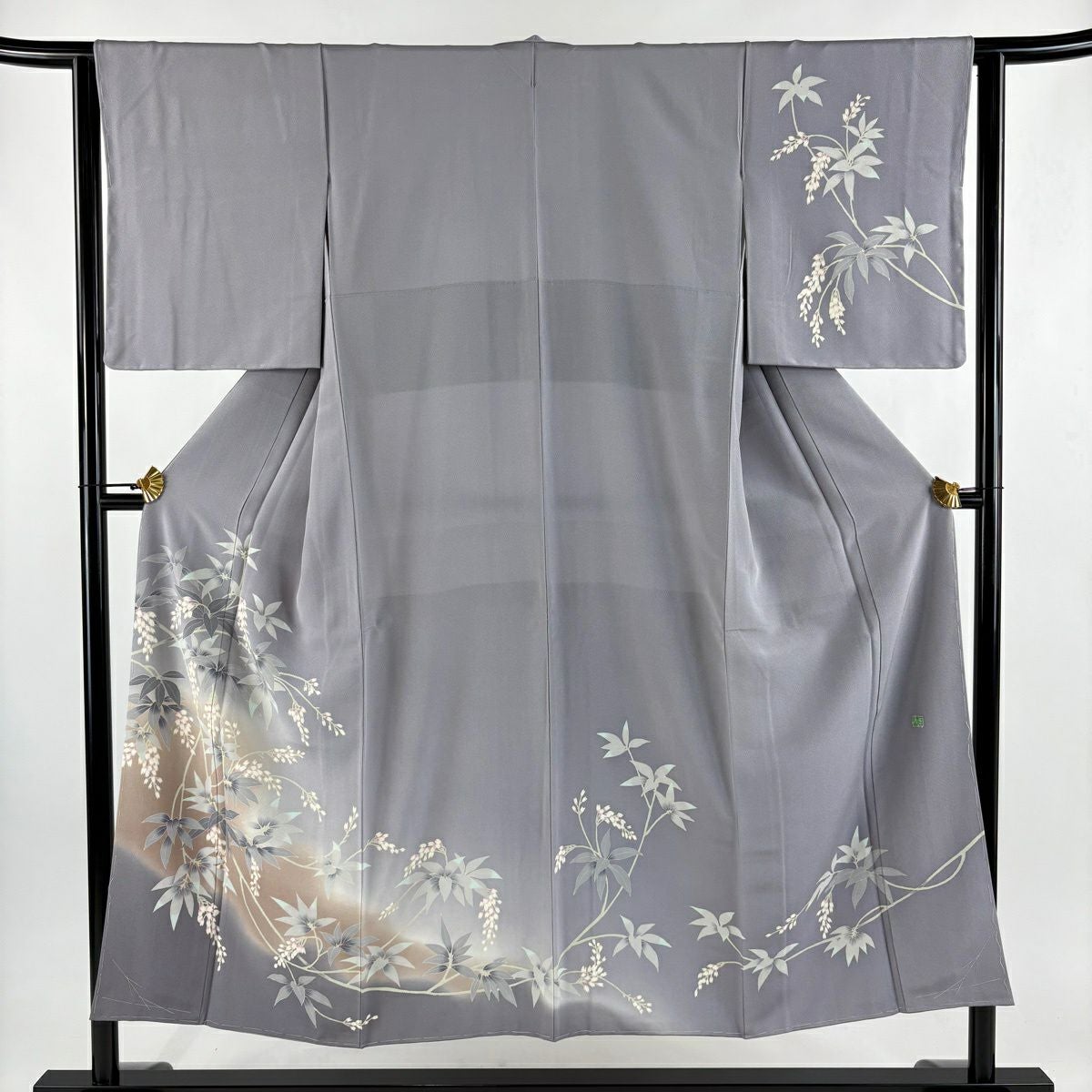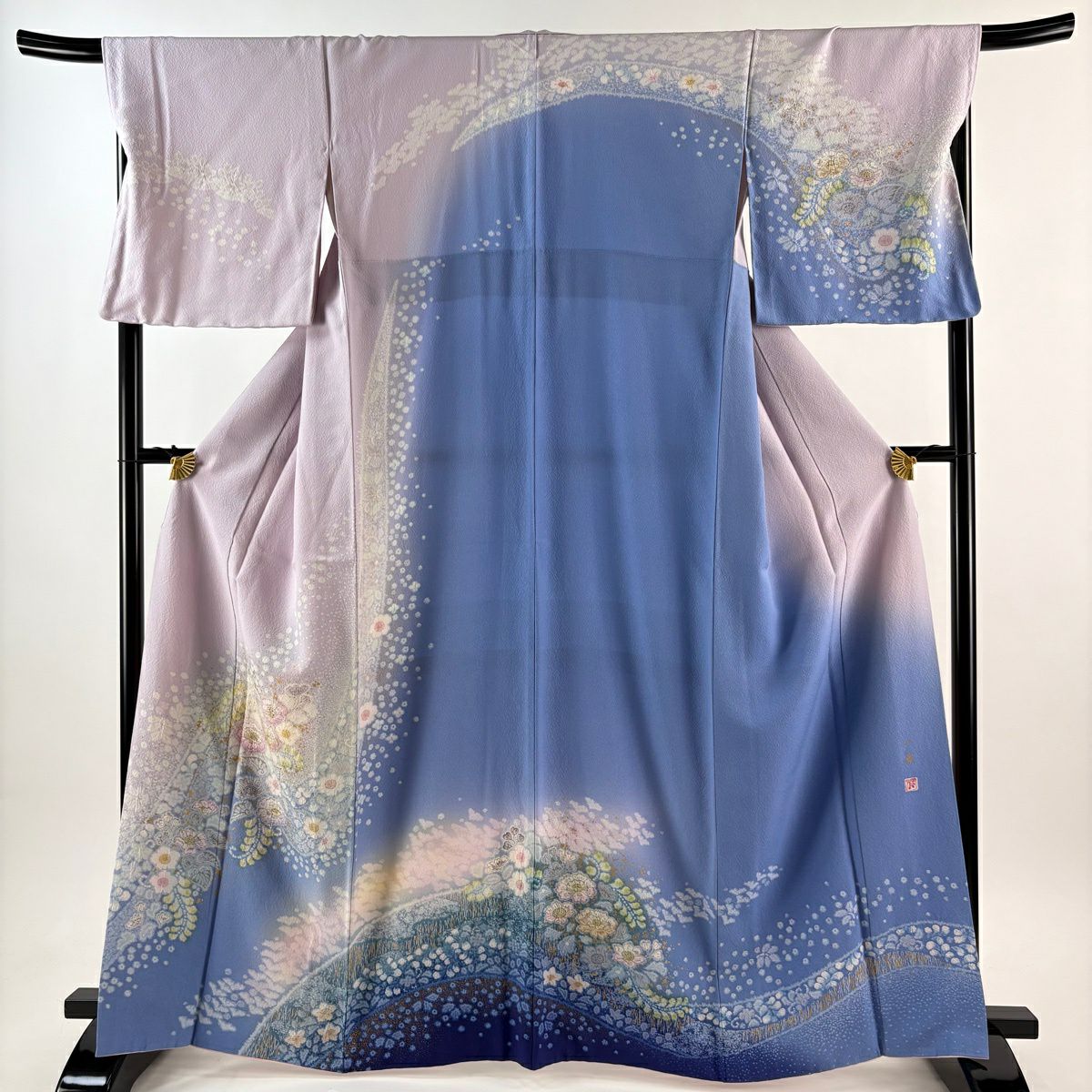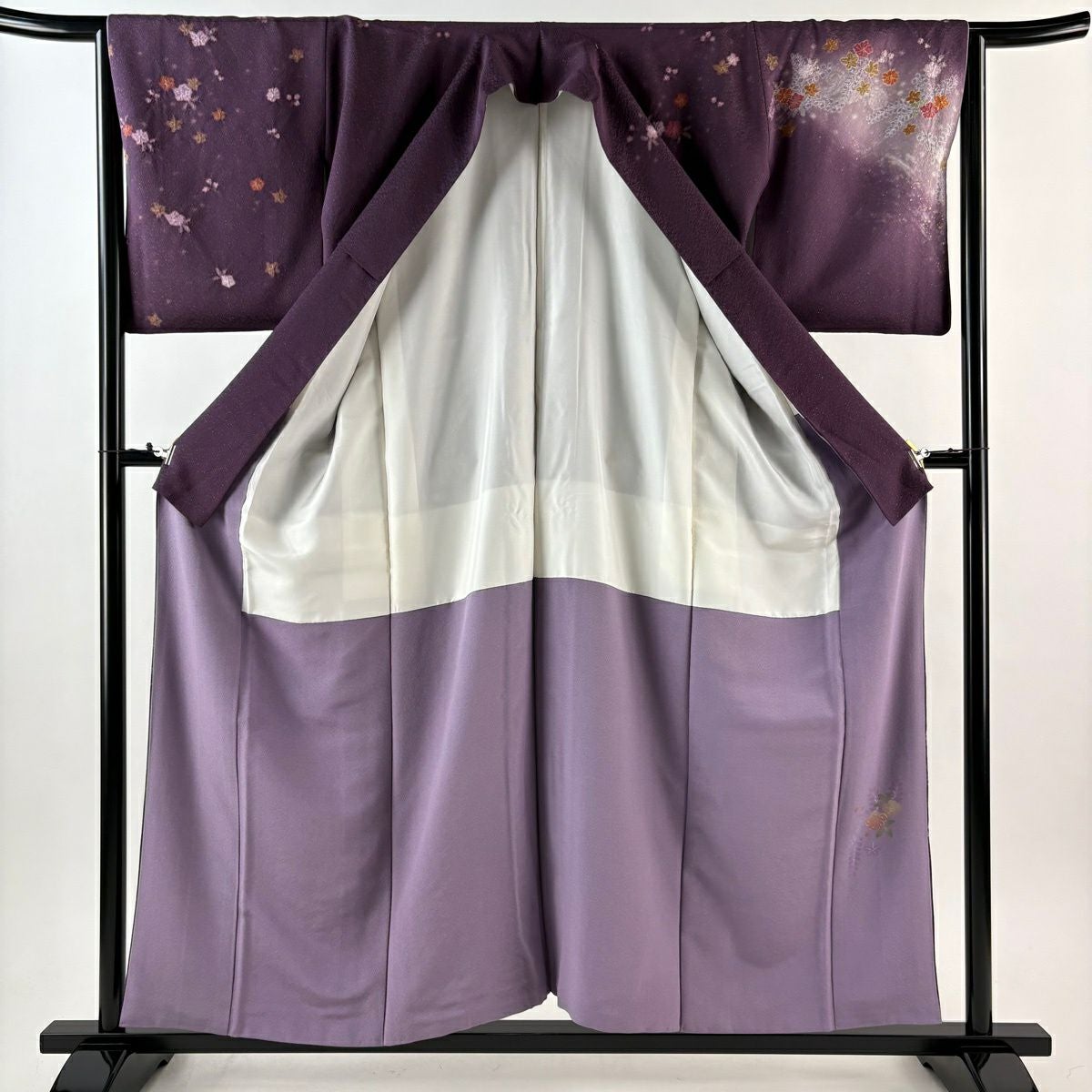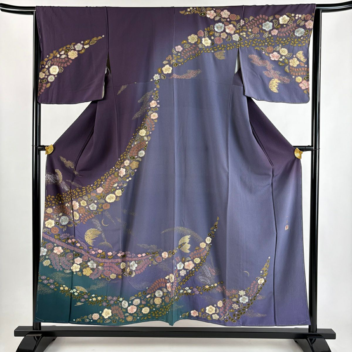訪問着 身丈166cm 裄丈64.5cm M 袷 帝王紫 落款あり 花籠 花唐草 刺繍 ぼかし 灰紫 正絹 逸品