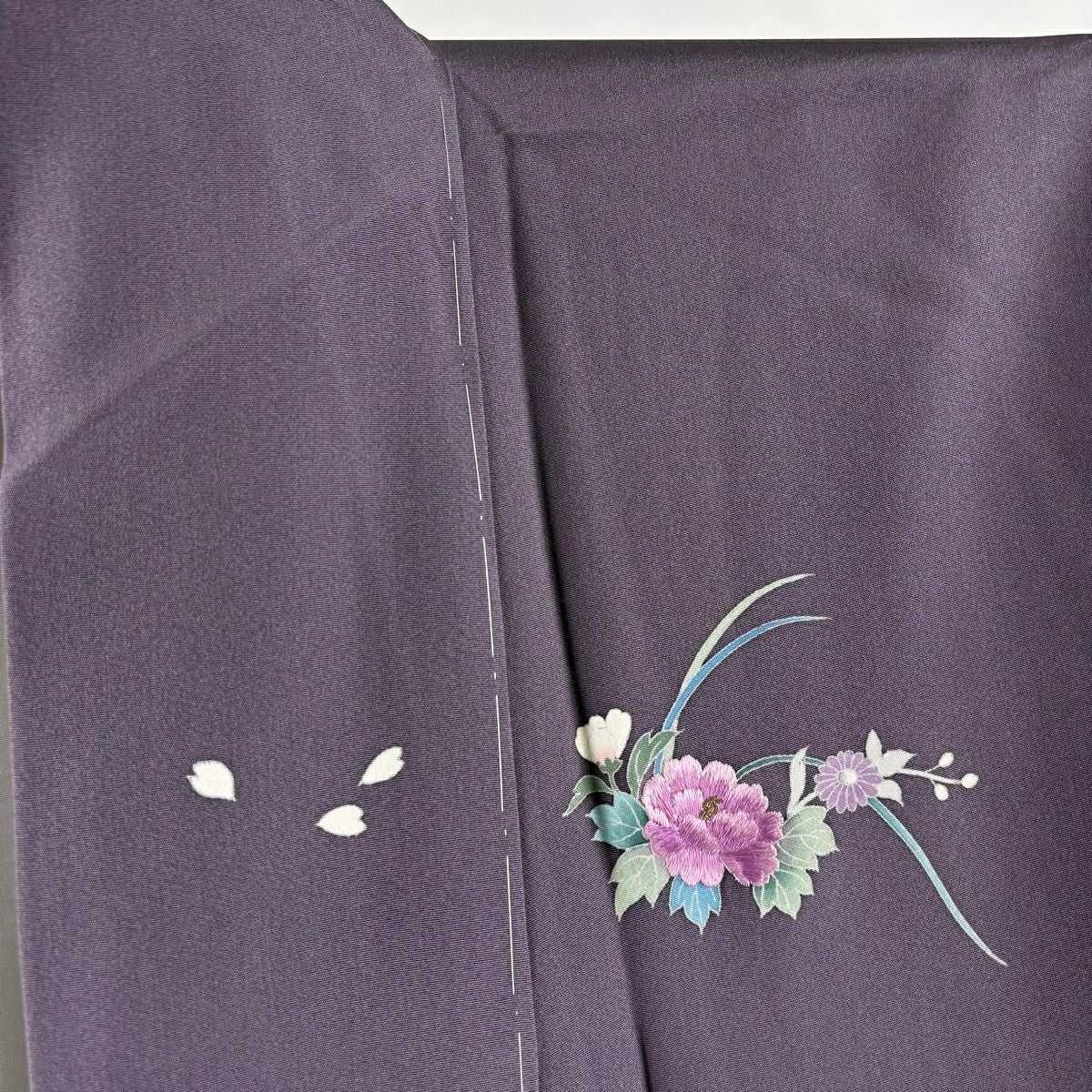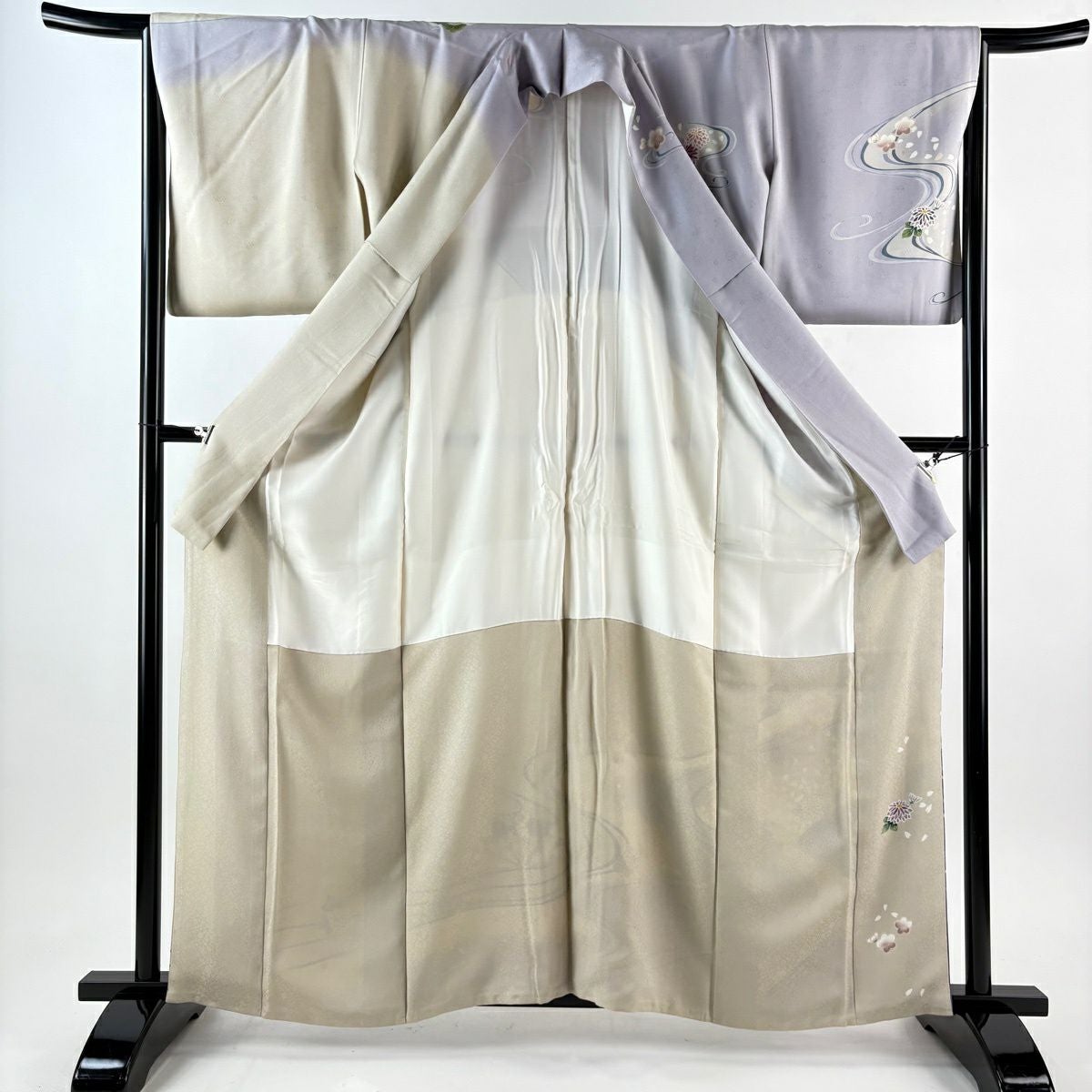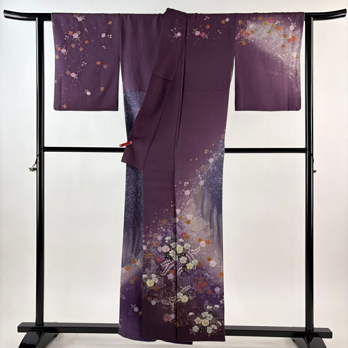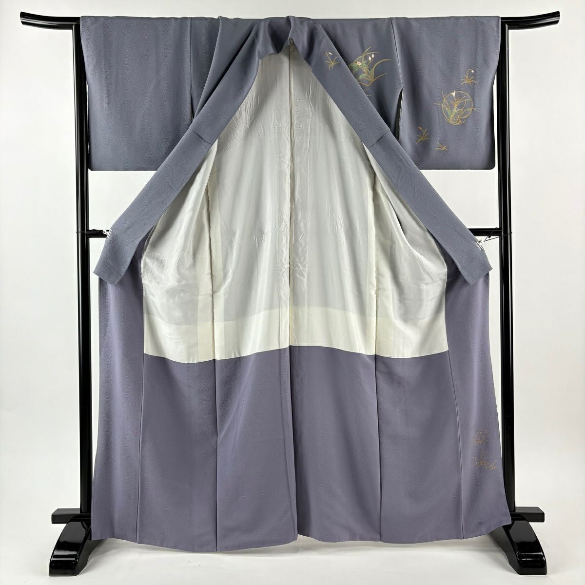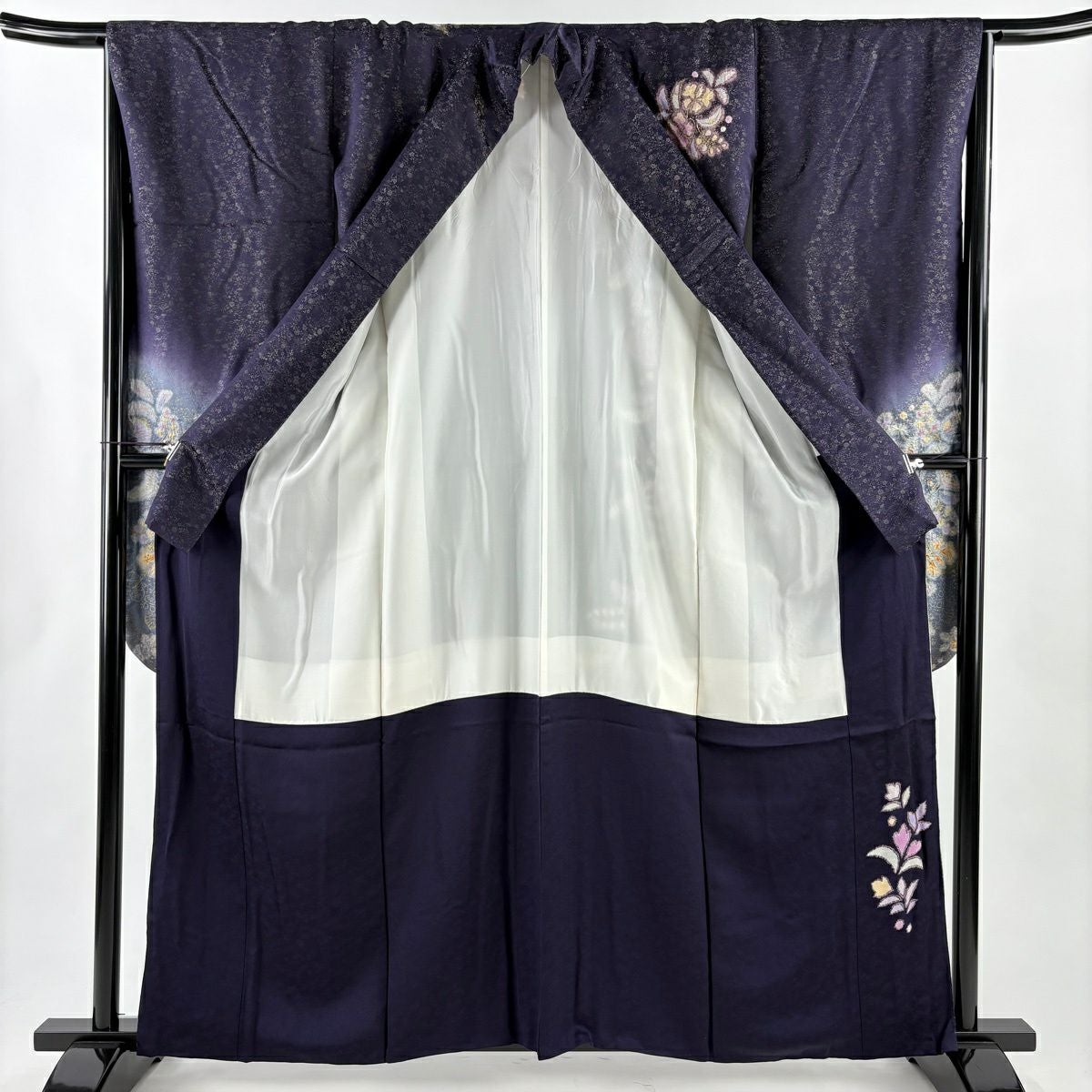 訪問着 身丈166cm 裄丈64.5cm M 袷 帝王紫 落款あり 花籠 花唐草 刺繍 ぼかし 灰紫 正絹 逸品