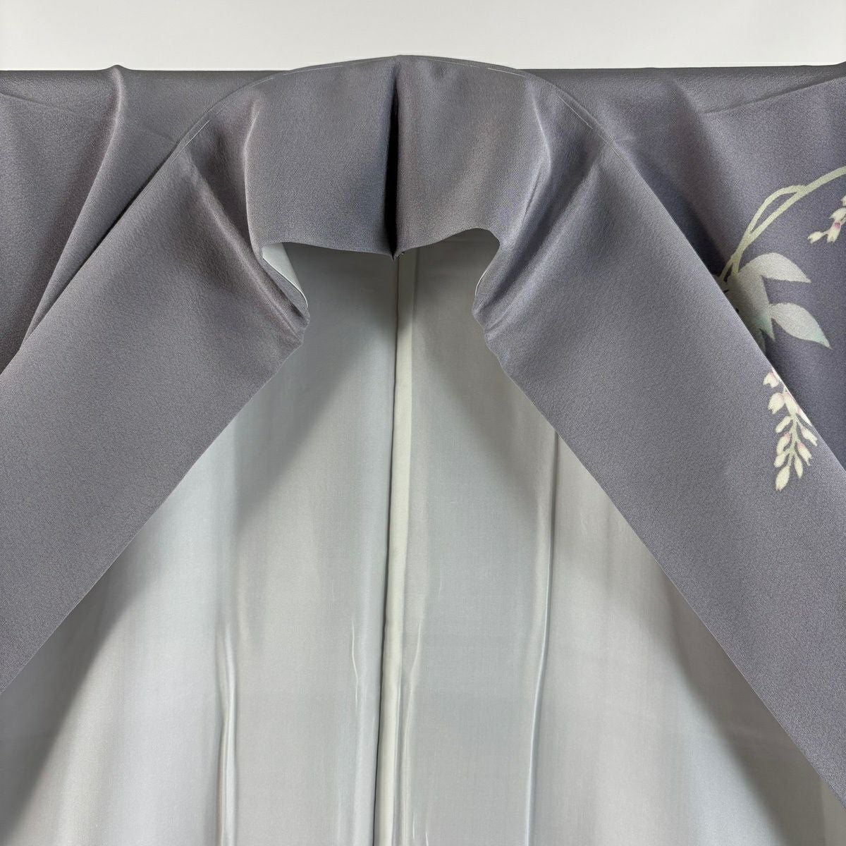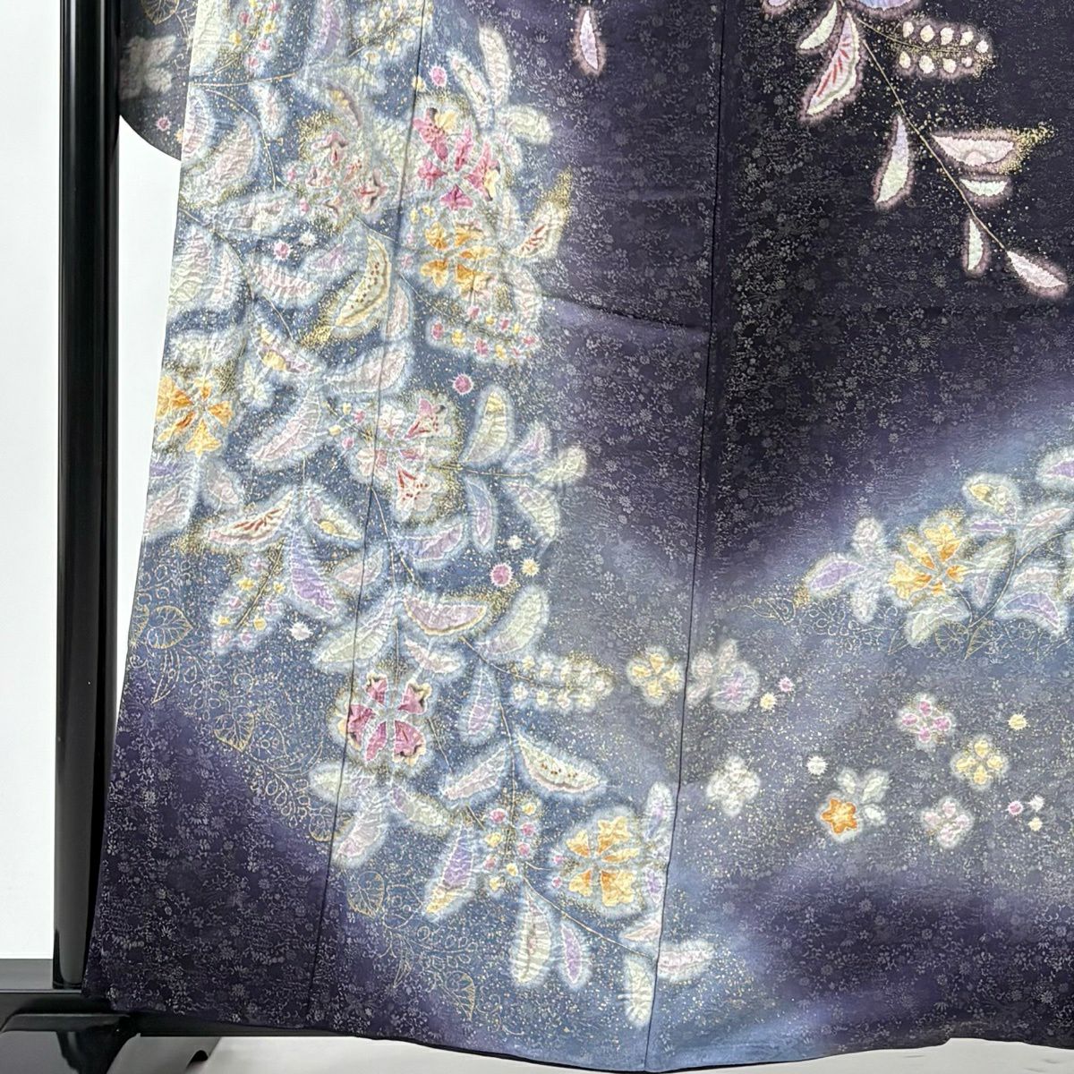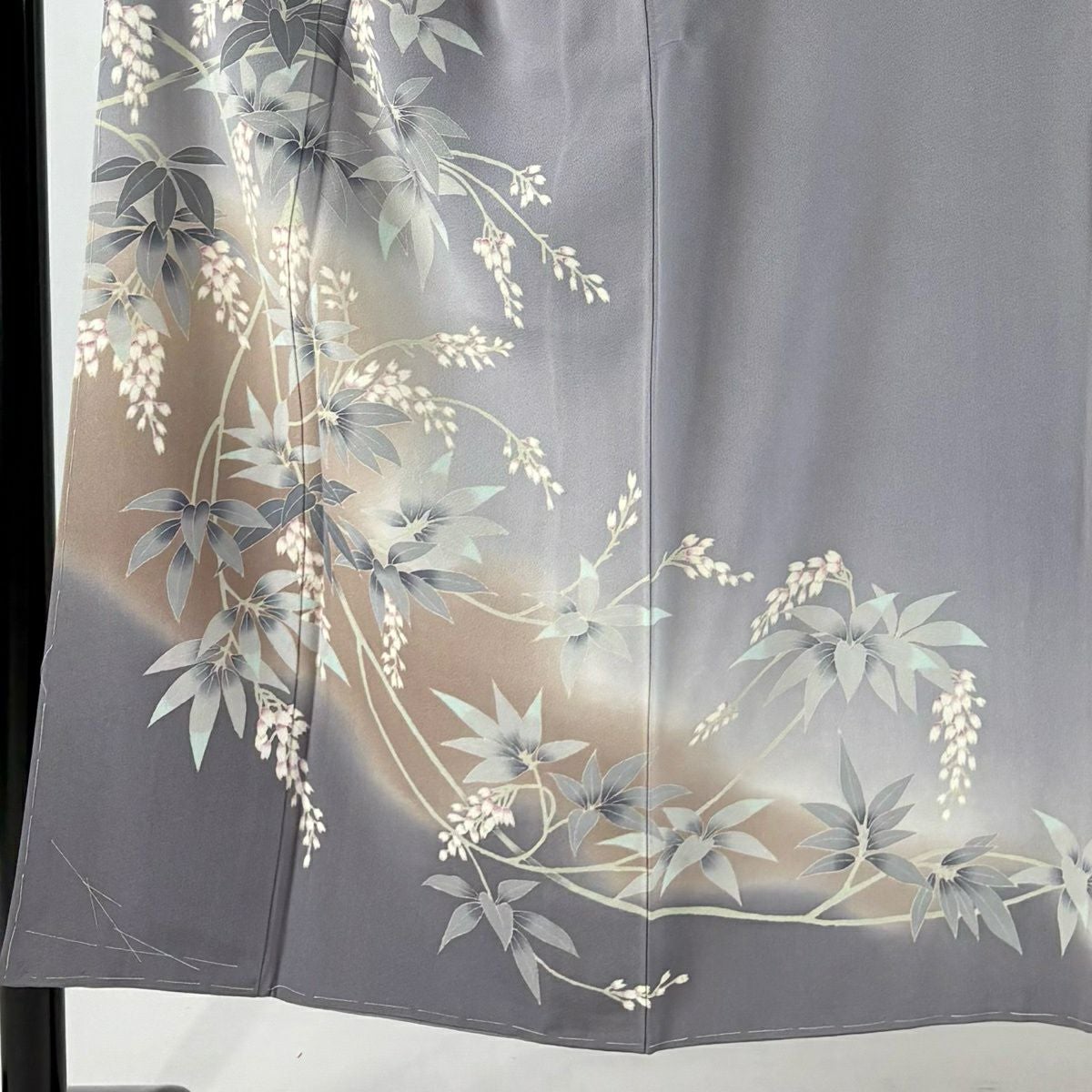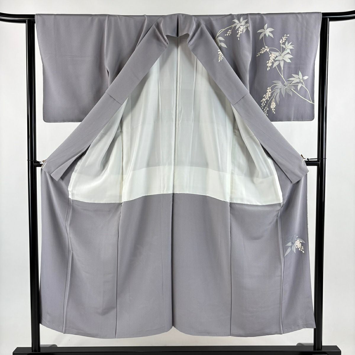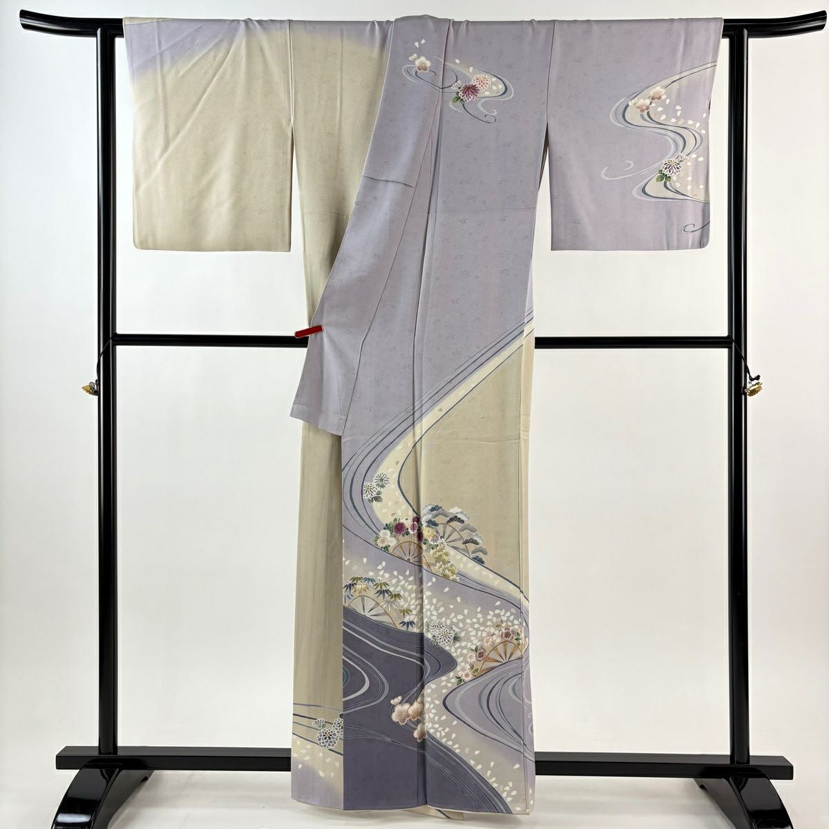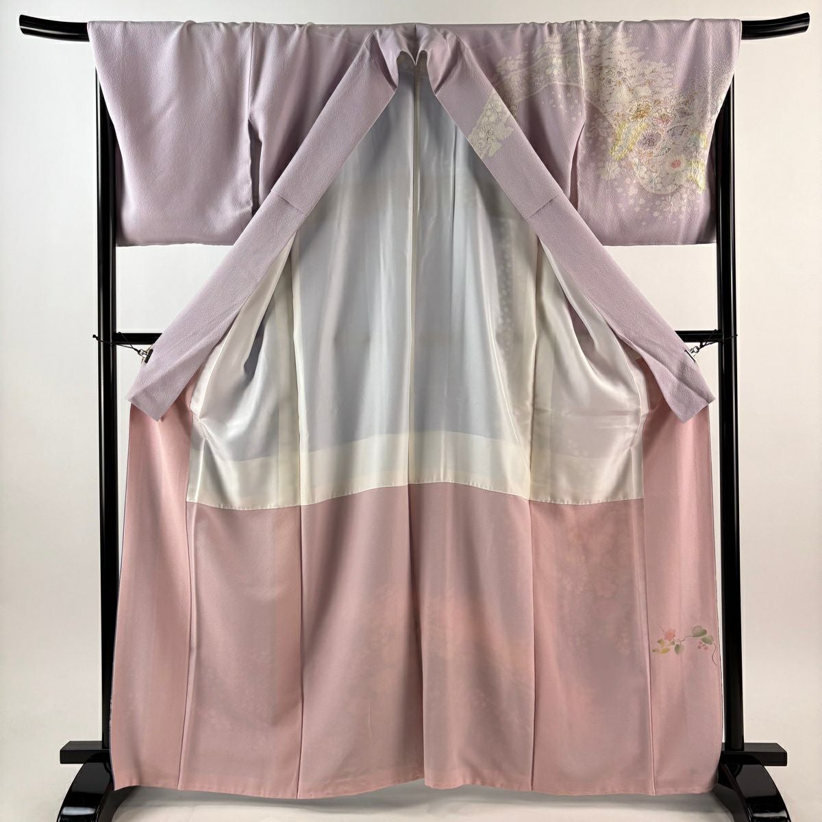 訪問着 身丈166cm 裄丈64.5cm M 袷 帝王紫 落款あり 花籠 花唐草 刺繍 ぼかし 灰紫 正絹 逸品
