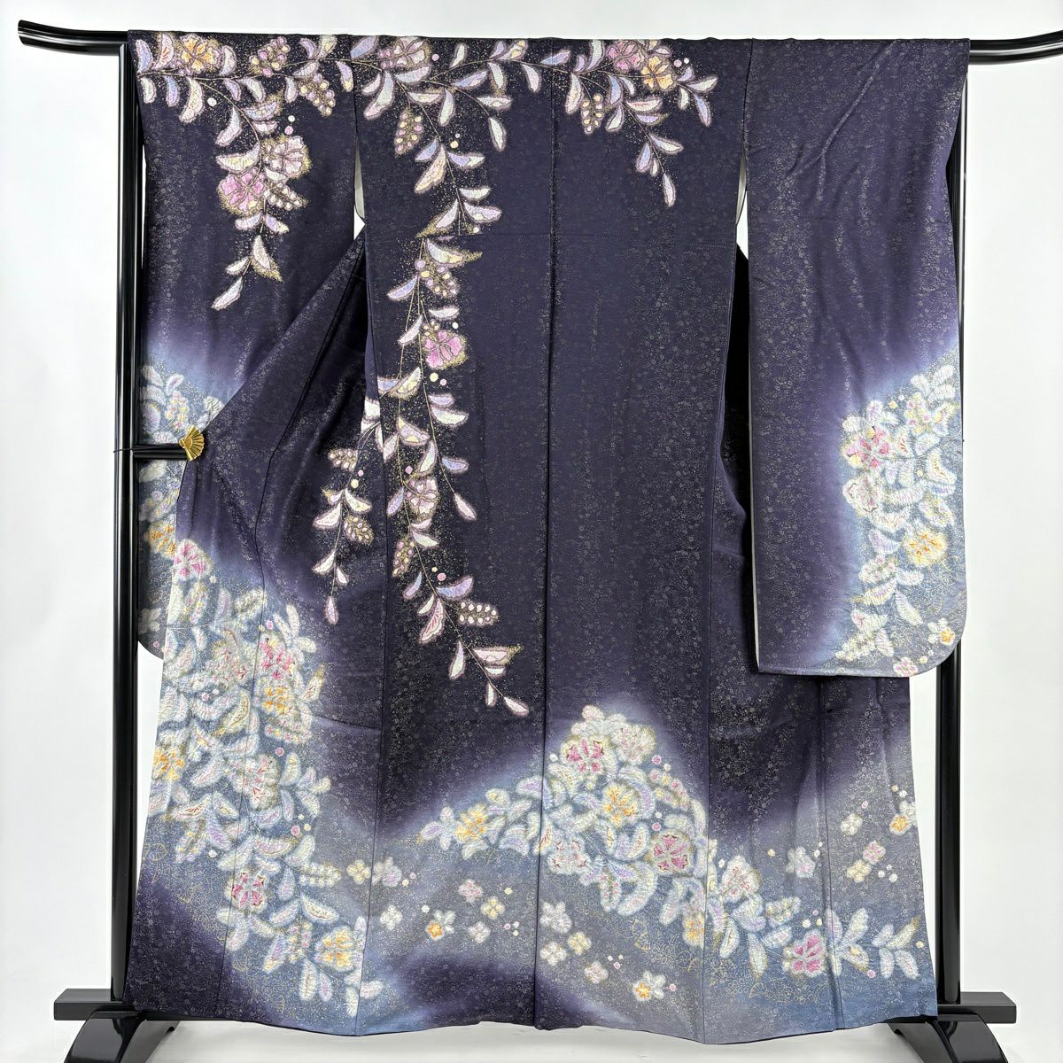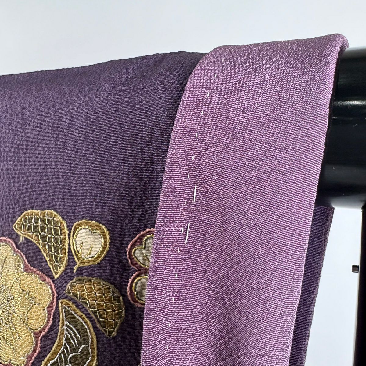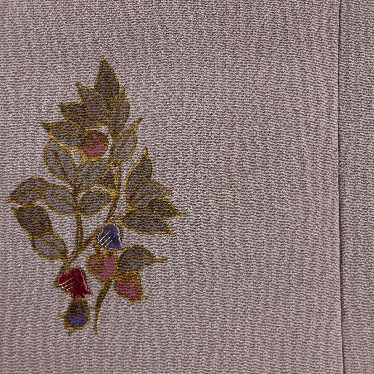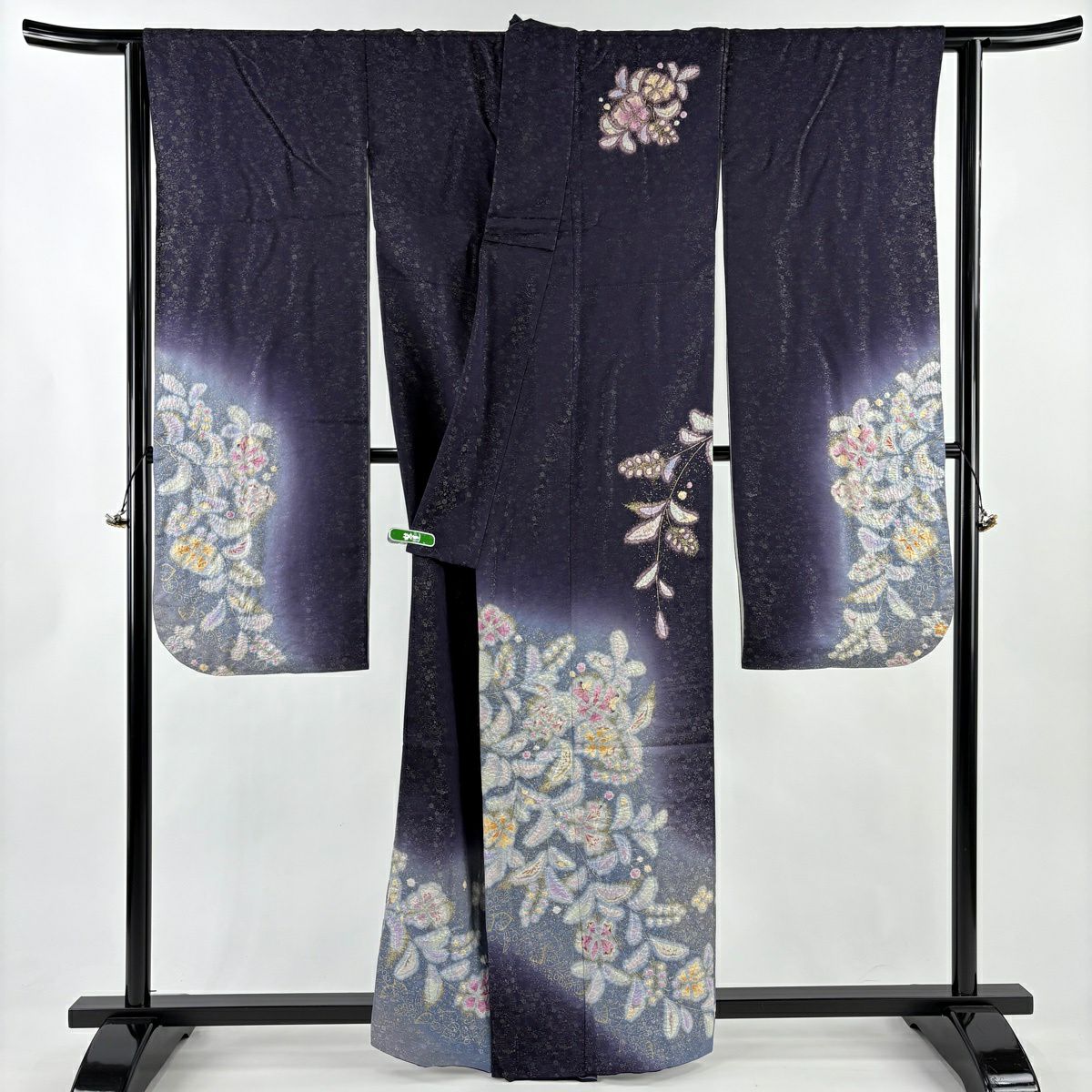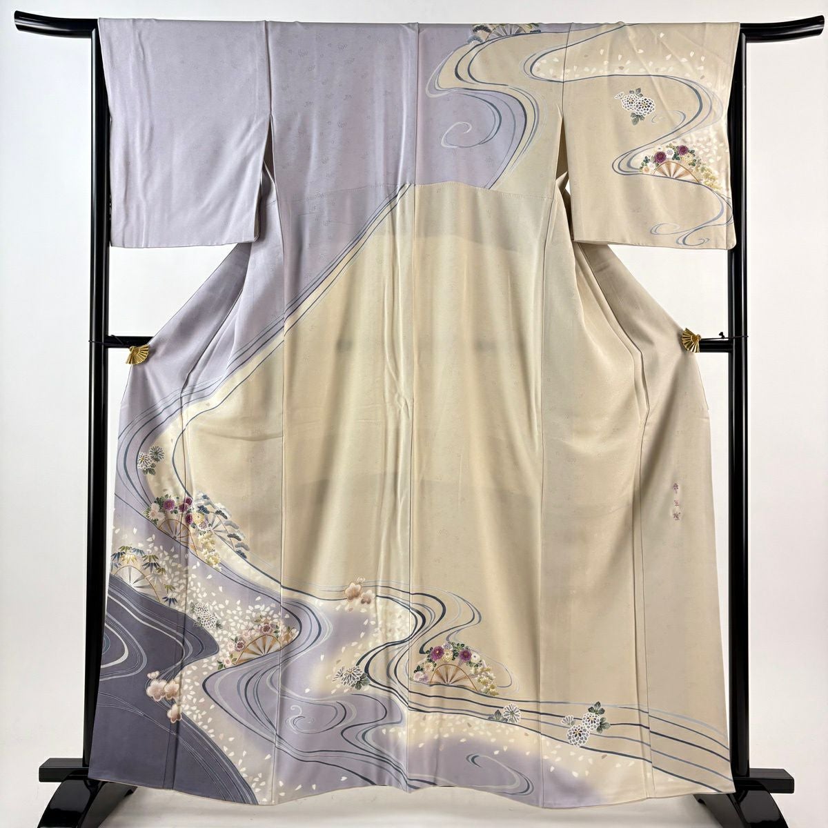 訪問着 身丈166cm 裄丈64.5cm M 袷 帝王紫 落款あり 花籠 花唐草 刺繍 ぼかし 灰紫 正絹 逸品