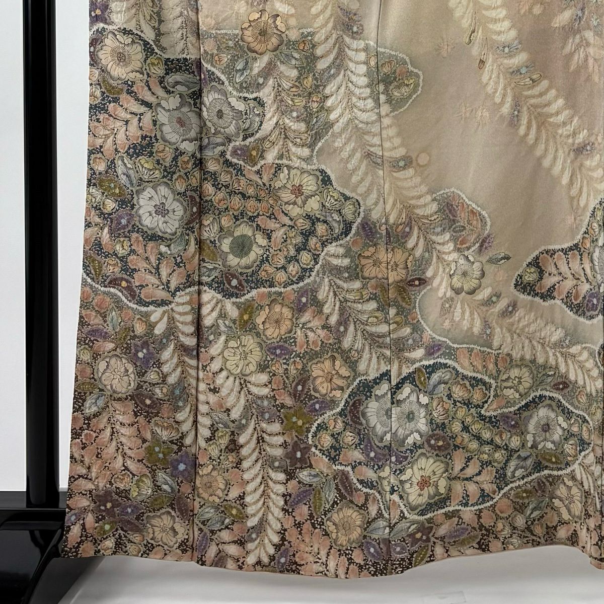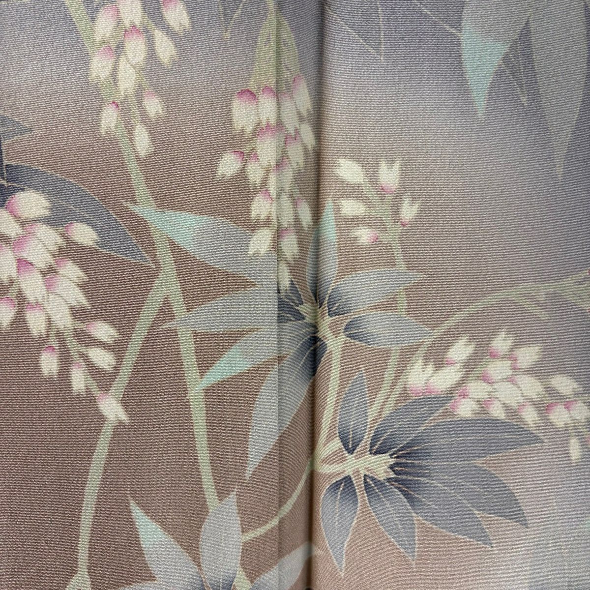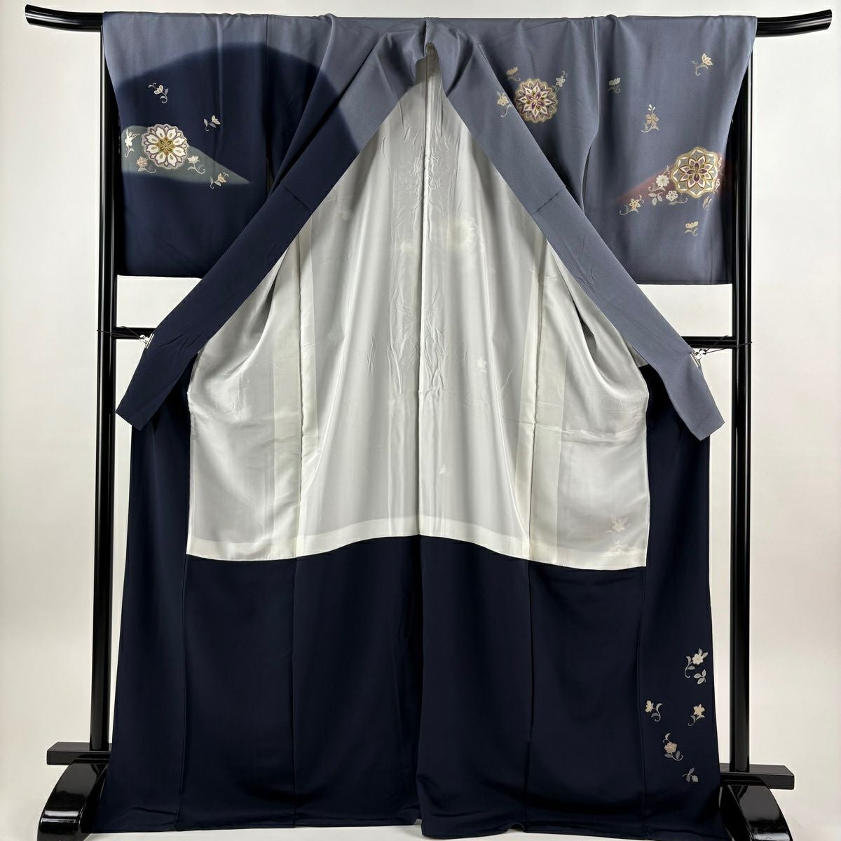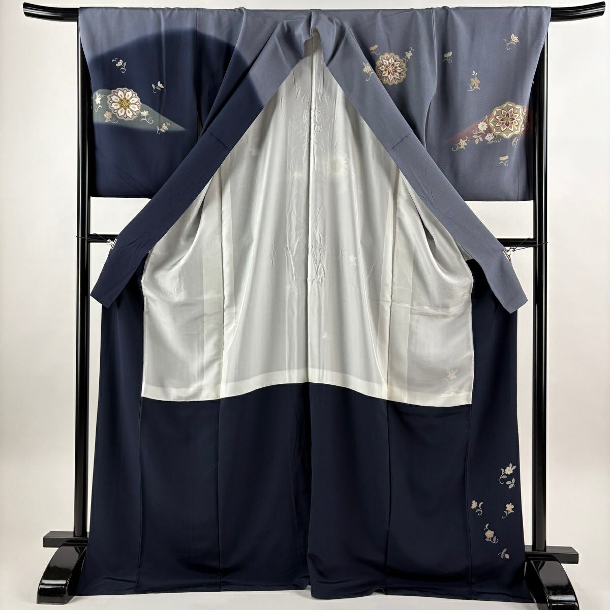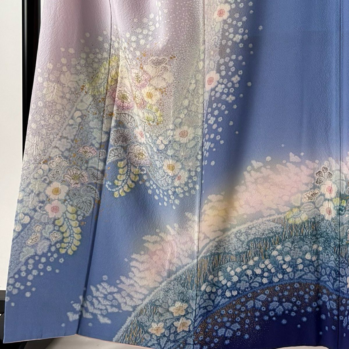 訪問着 身丈166cm 裄丈64.5cm M 袷 帝王紫 落款あり 花籠 花唐草 刺繍 ぼかし 灰紫 正絹 逸品