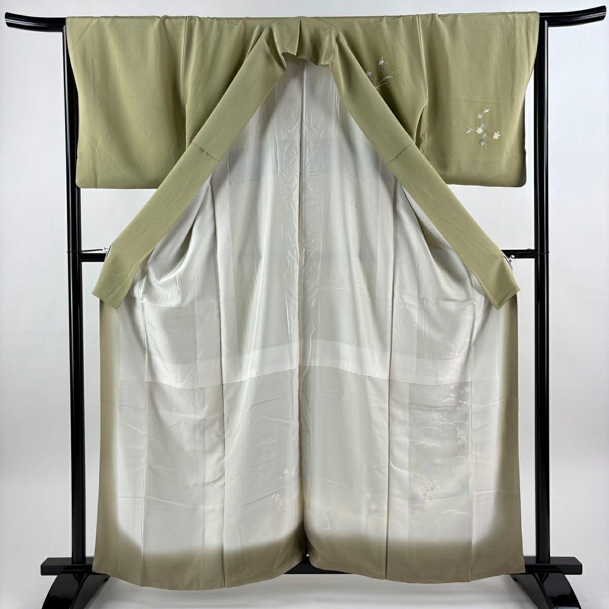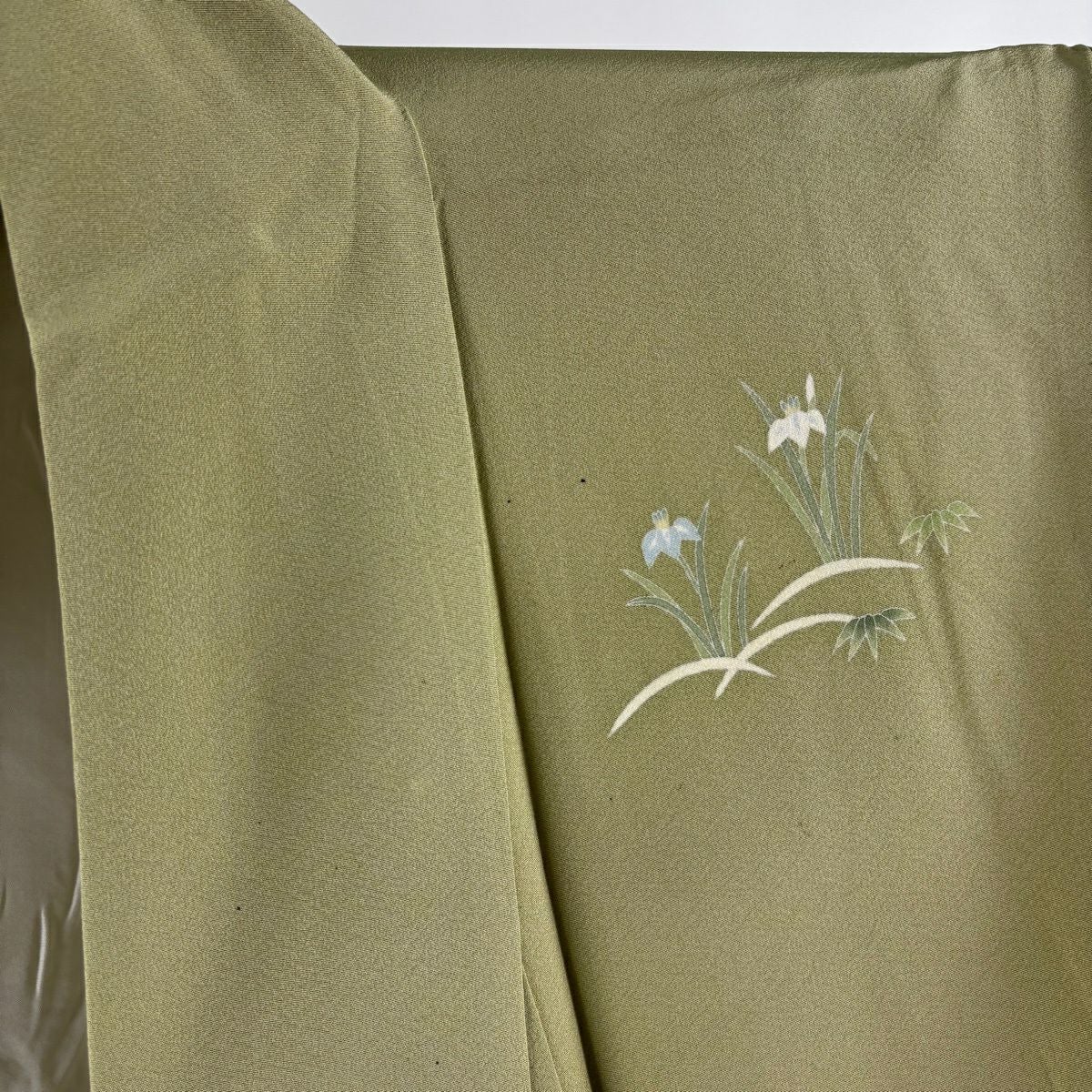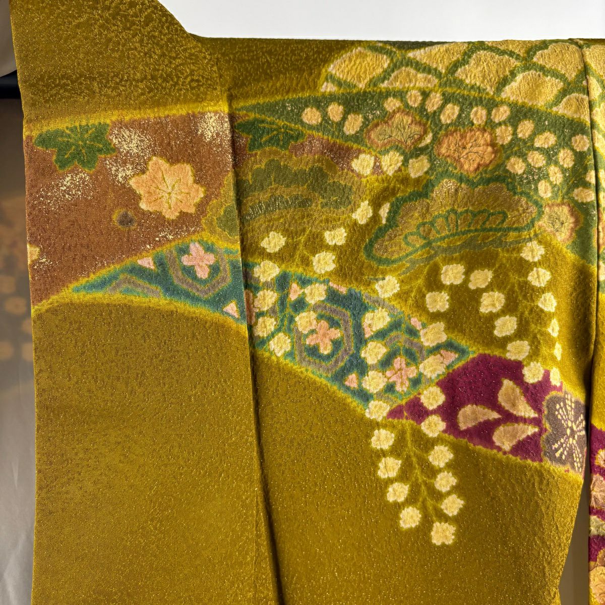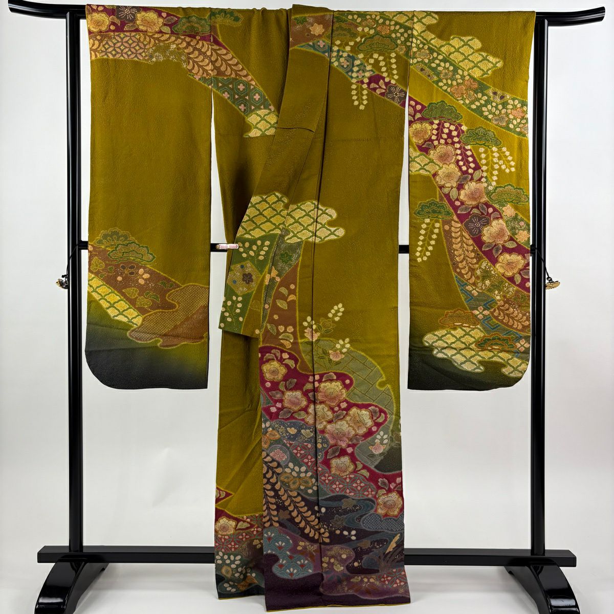 振袖 身丈165.5cm 裄丈66.5cm M 袷 吉乃一廉 落款あり 辻が花 雪輪 金通し 金彩 鶯色 正絹 逸品