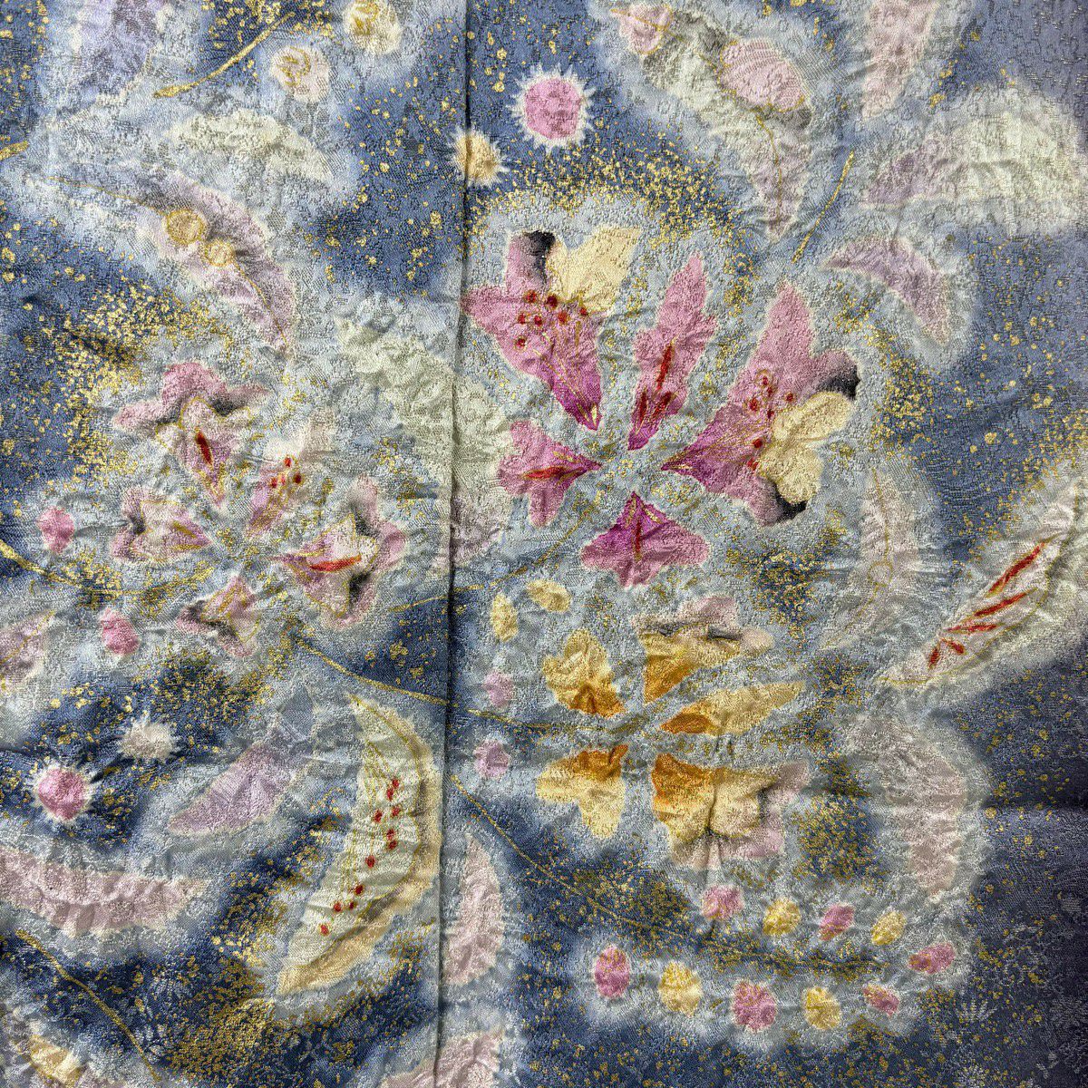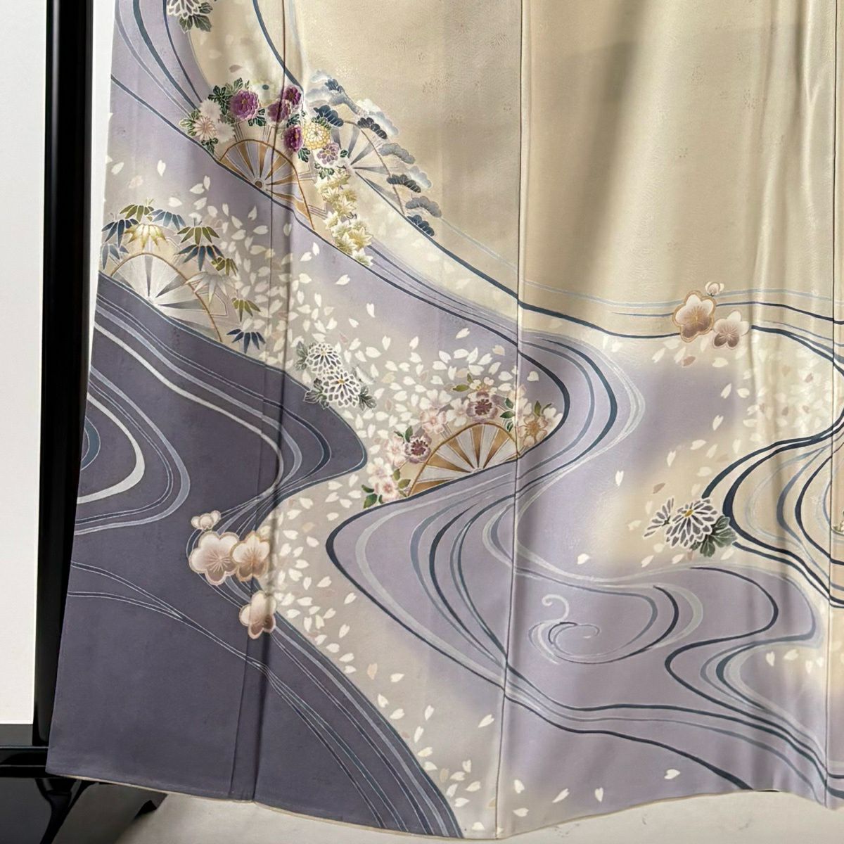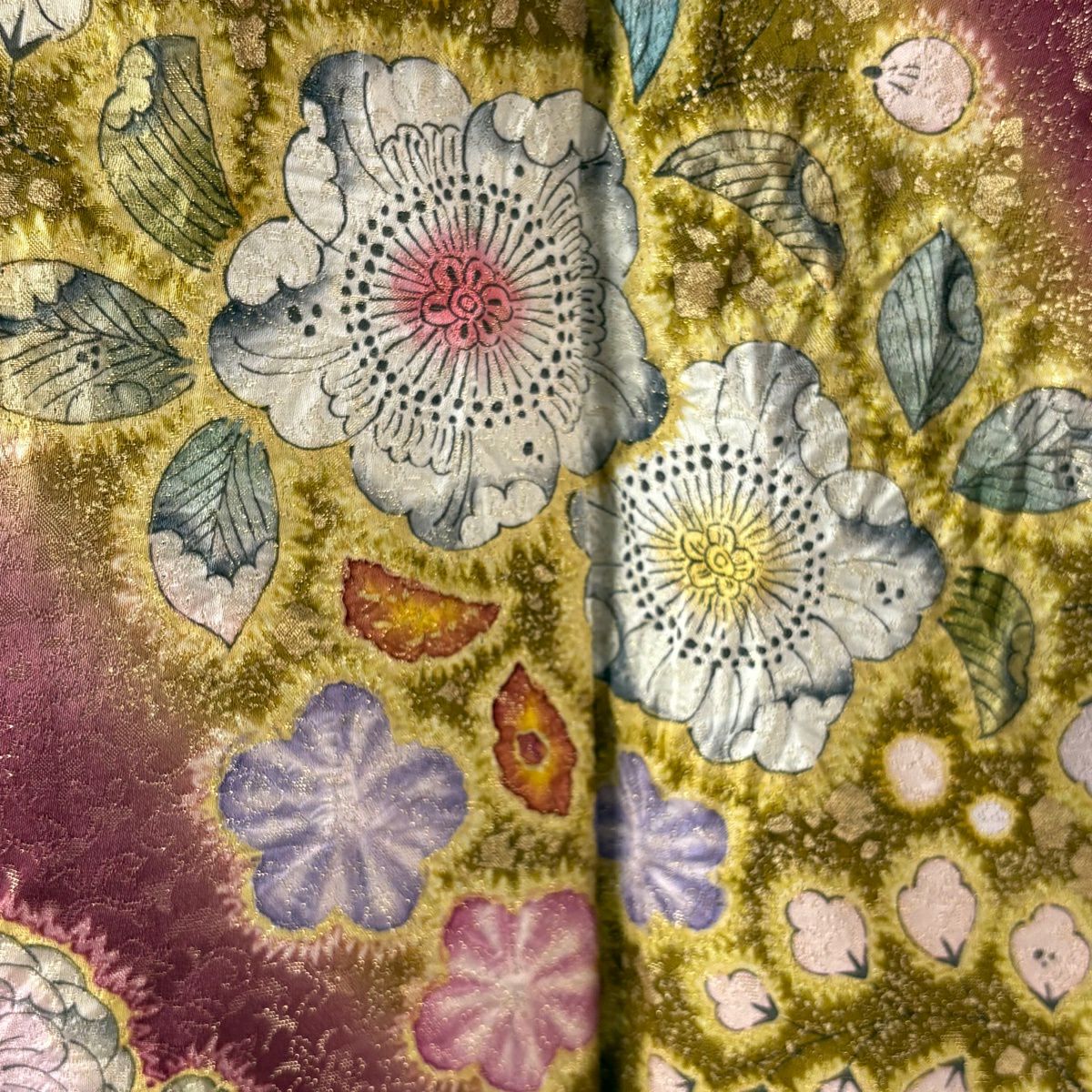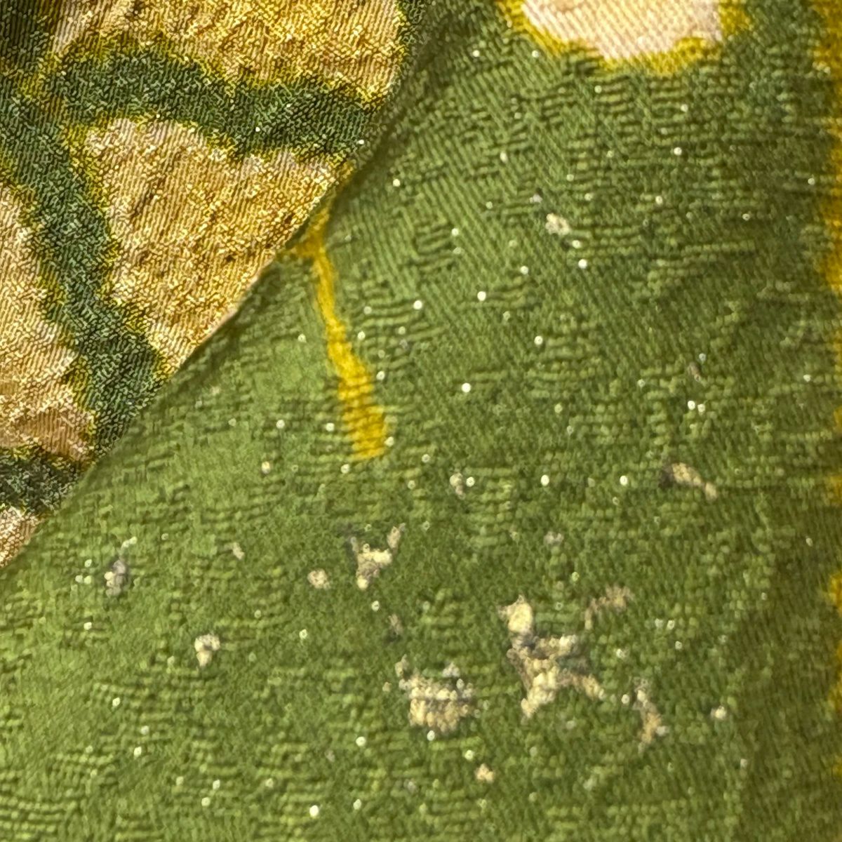 振袖 身丈165.5cm 裄丈66.5cm M 袷 吉乃一廉 落款あり 辻が花 雪輪 金通し 金彩 鶯色 正絹 逸品