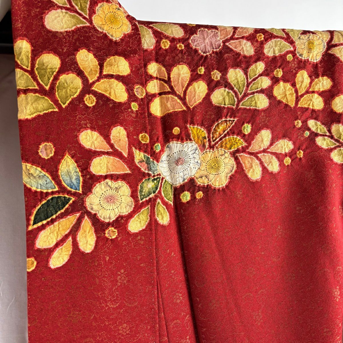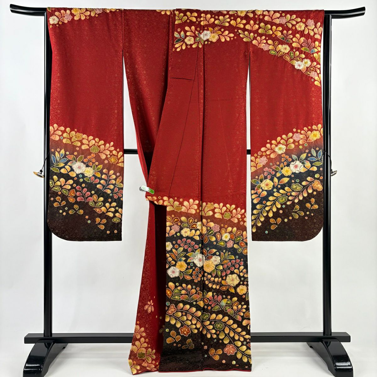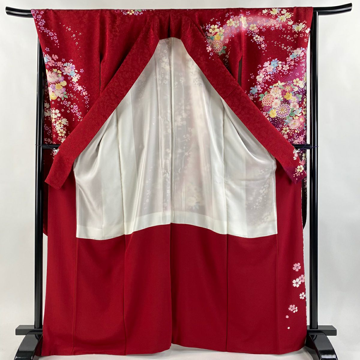 【在庫一掃】 【美品】 振袖 身丈167.5cm 裄丈66cm M 袷 花束 組紐 金糸 金通し 赤 正絹 逸品