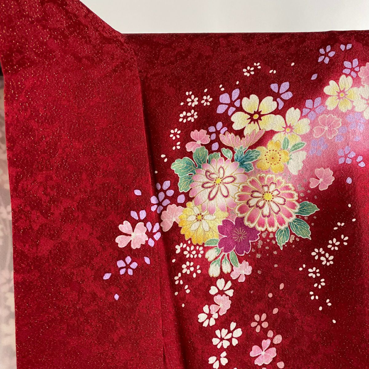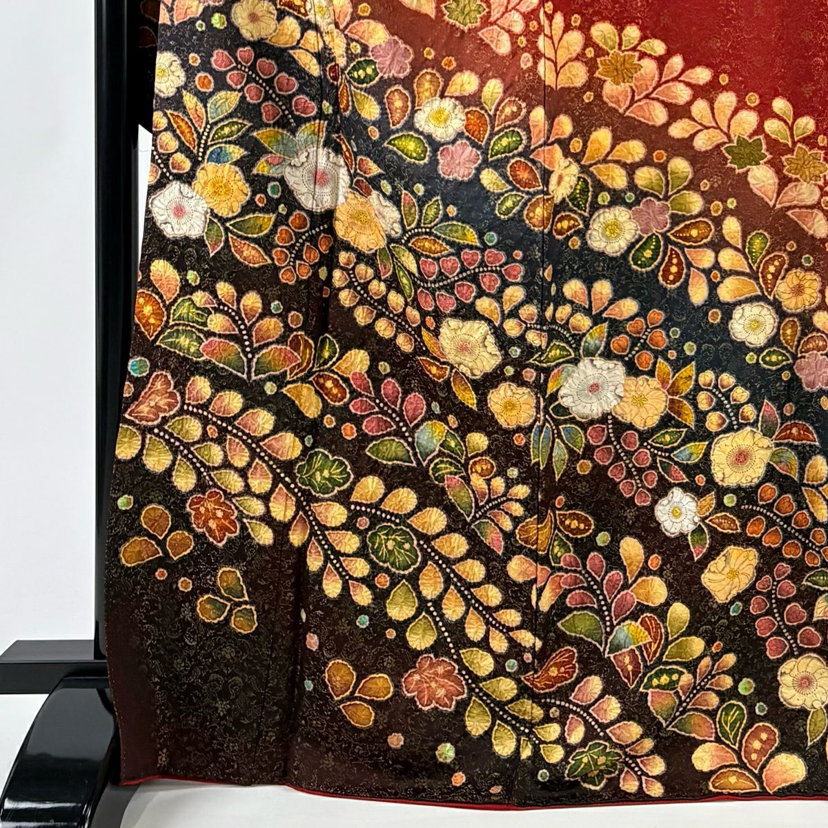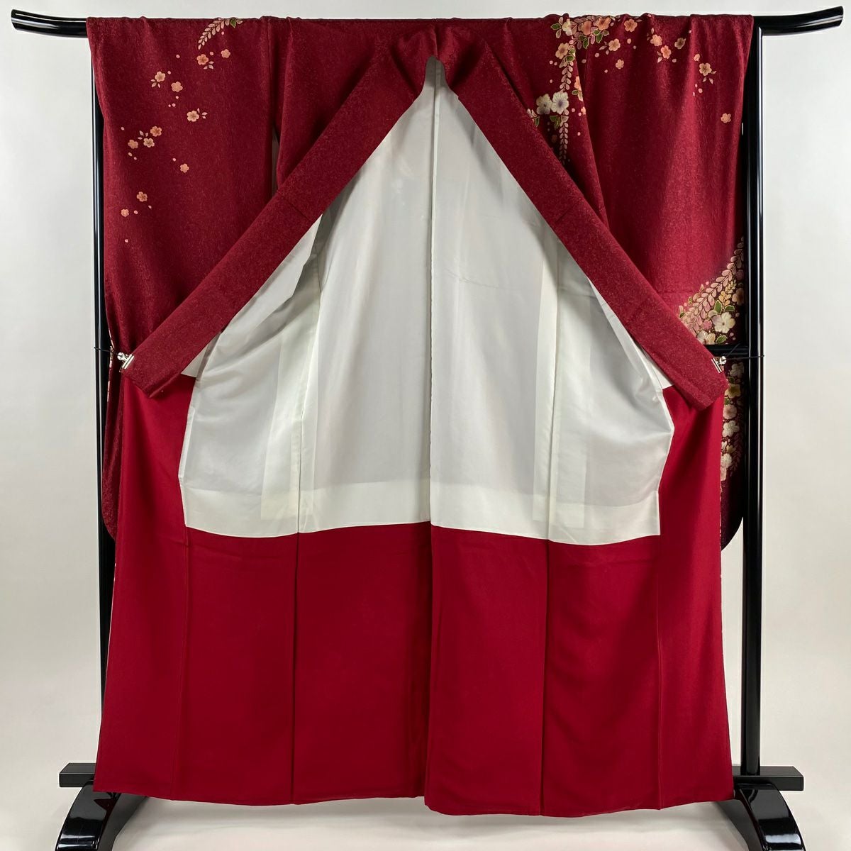 【在庫一掃】 【美品】 振袖 身丈167.5cm 裄丈66cm M 袷 花束 組紐 金糸 金通し 赤 正絹 逸品