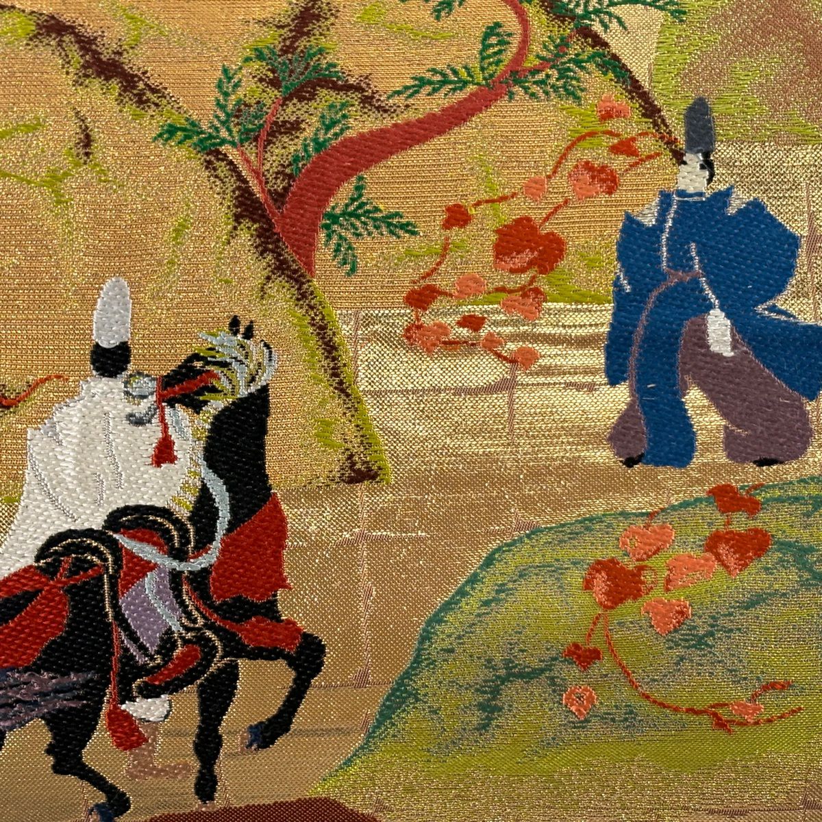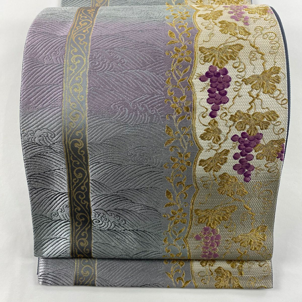 【在庫一掃】 【美品】 袋帯 逸品 じゅらく 落款あり 紫華麗人 葡萄 波 金糸 唐織 薄紫 お太鼓柄 正絹