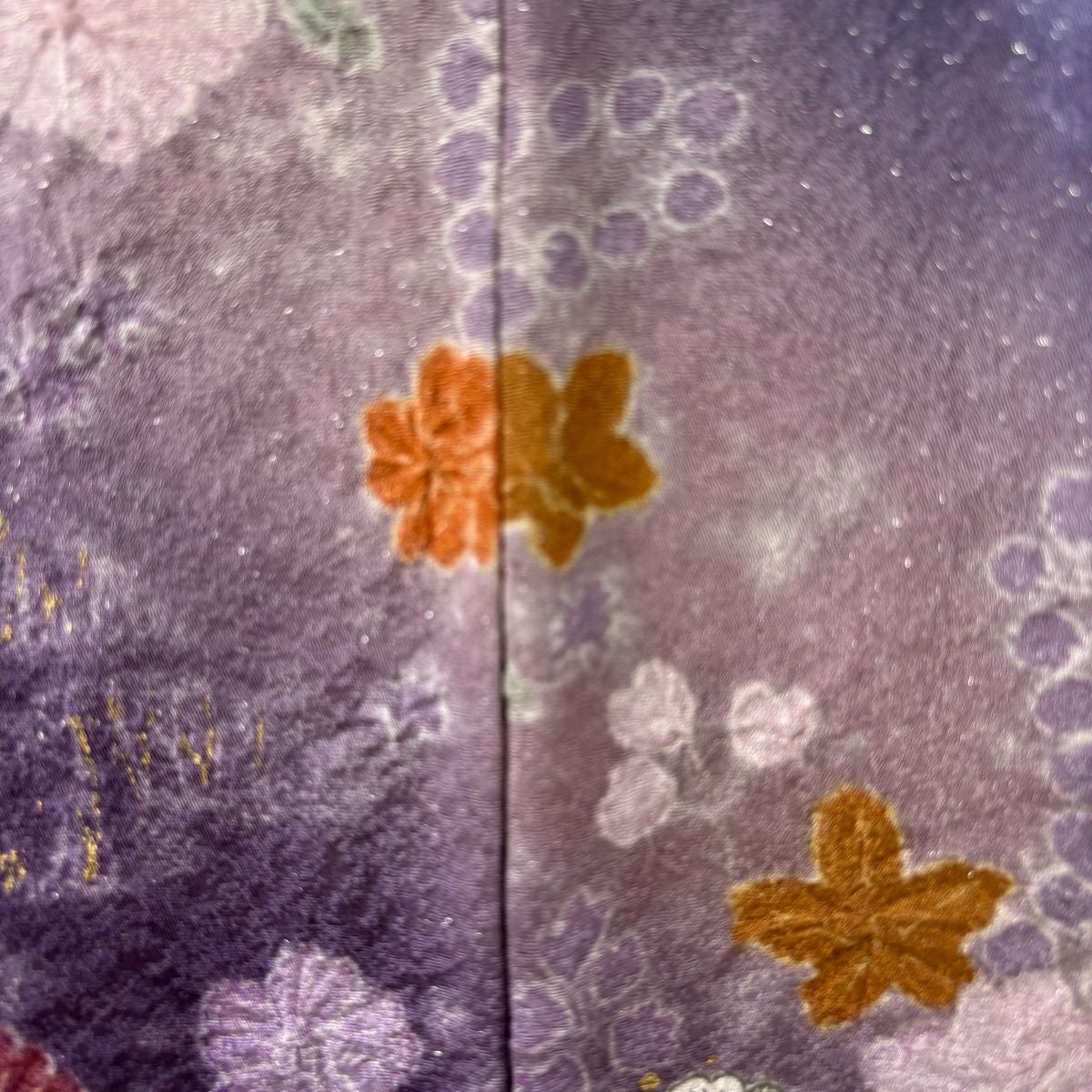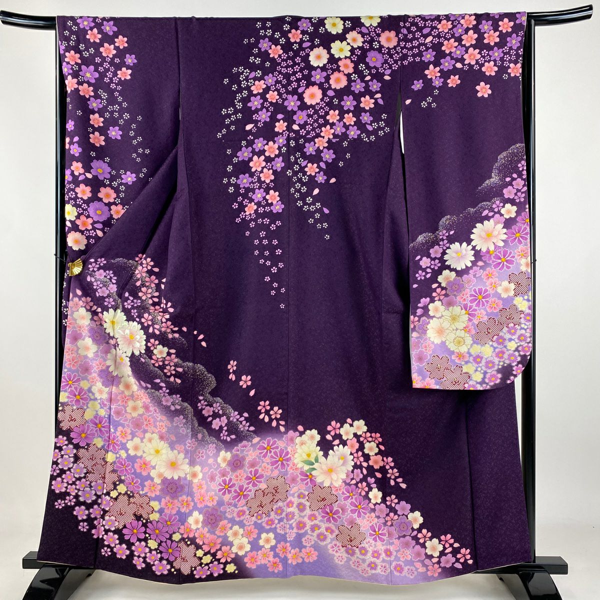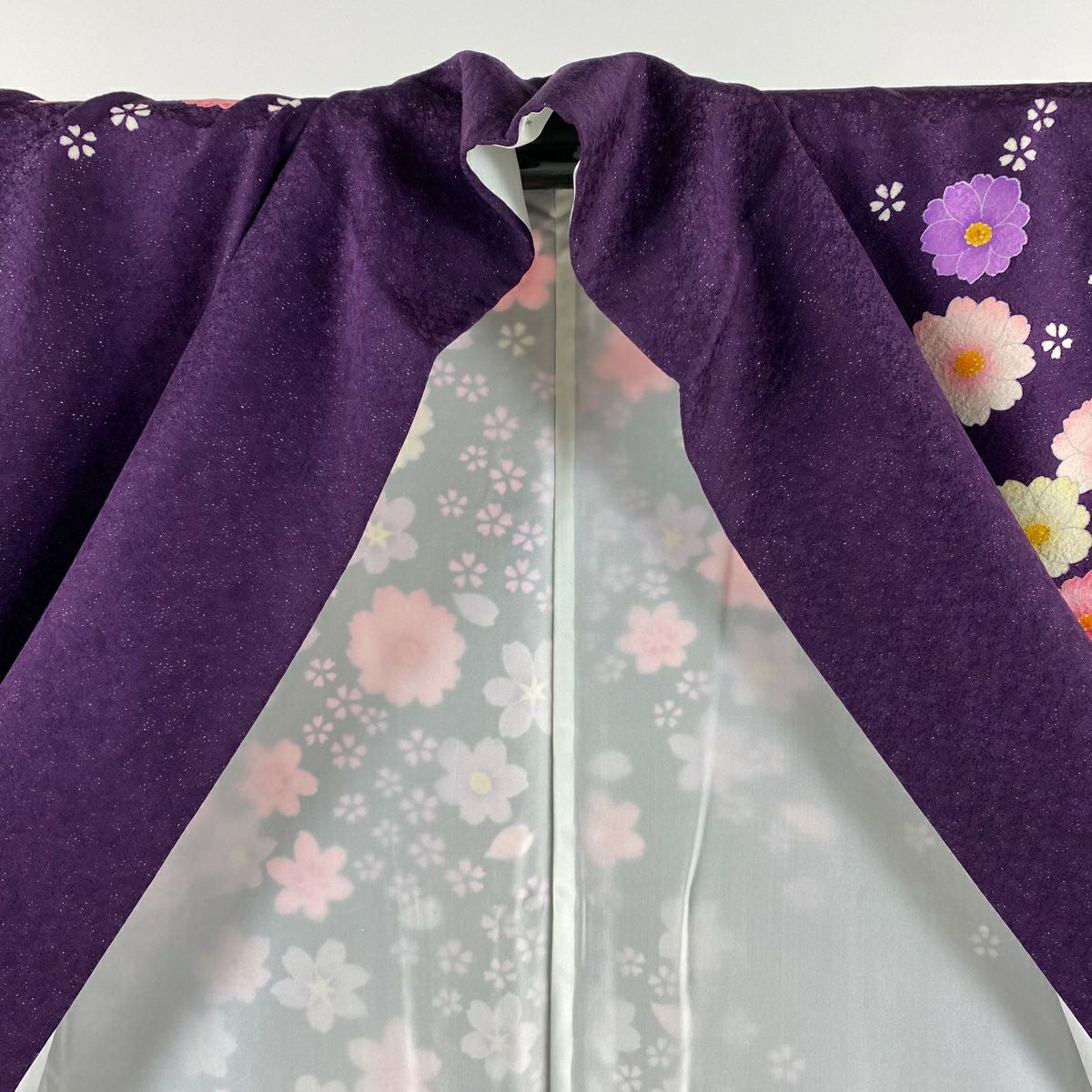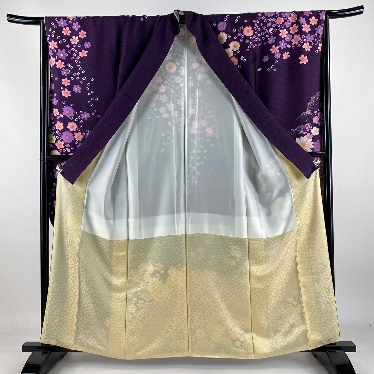 【在庫一掃】 【美品】 振袖 身丈160.5cm 裄丈65cm M 袷 コスモス 桜 銀通し 箔 紫 正絹 逸品