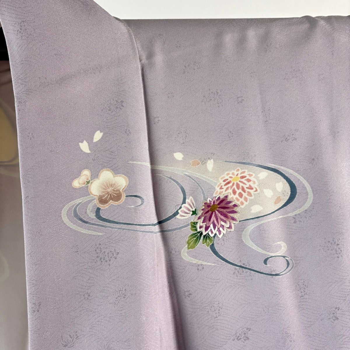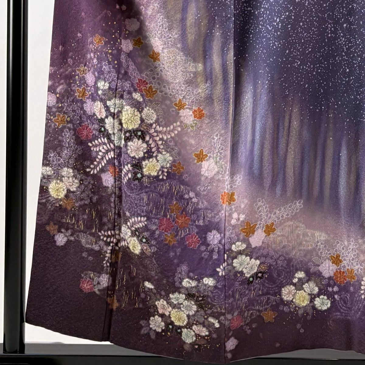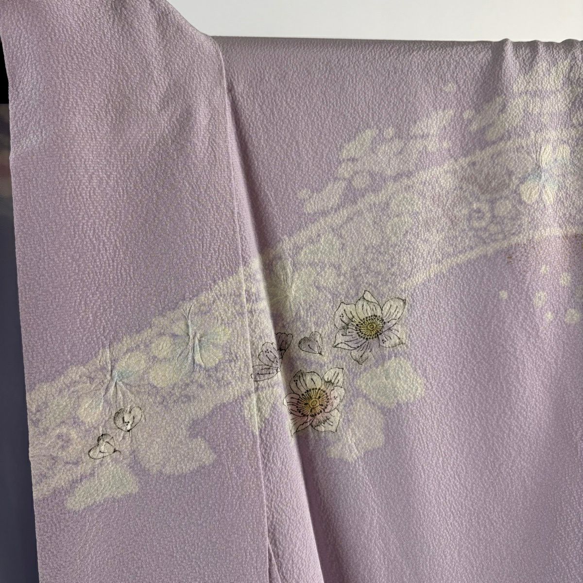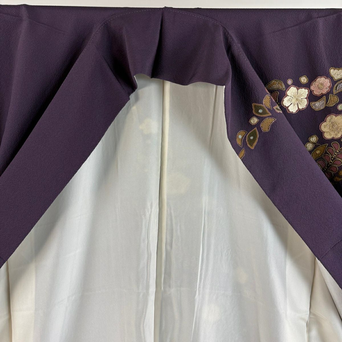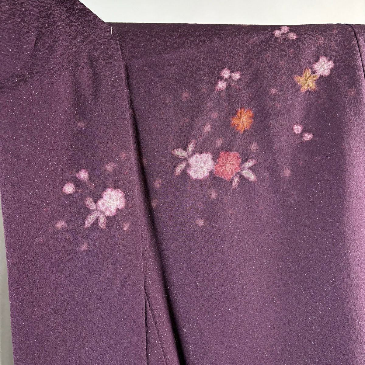 【在庫一掃】 【美品】 振袖 身丈160.5cm 裄丈65cm M 袷 コスモス 桜 銀通し 箔 紫 正絹 逸品