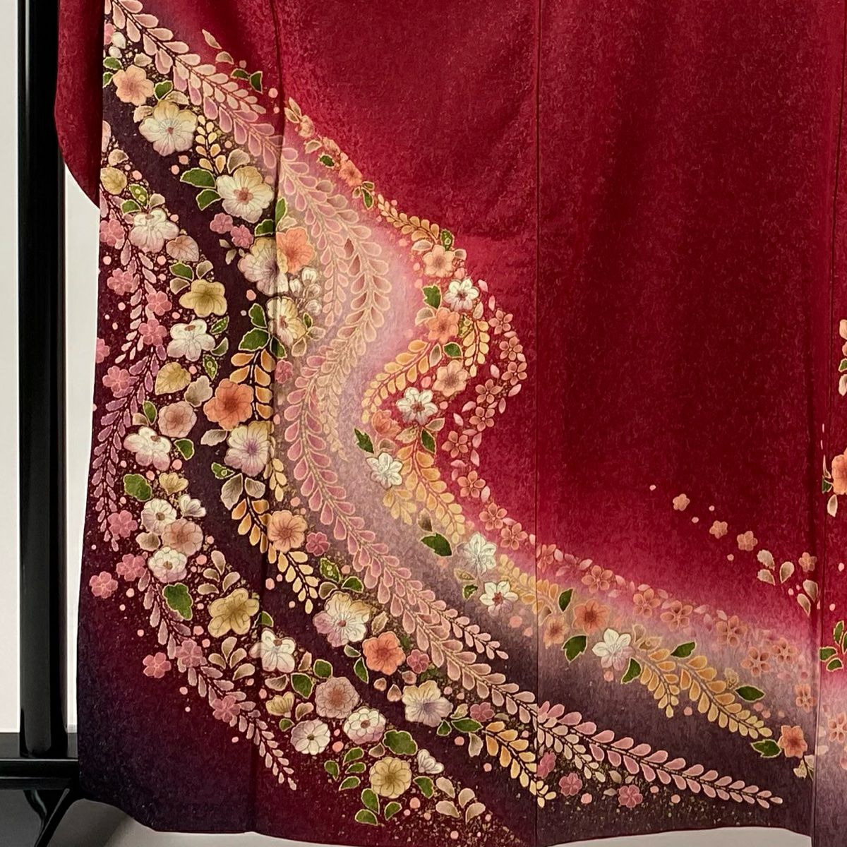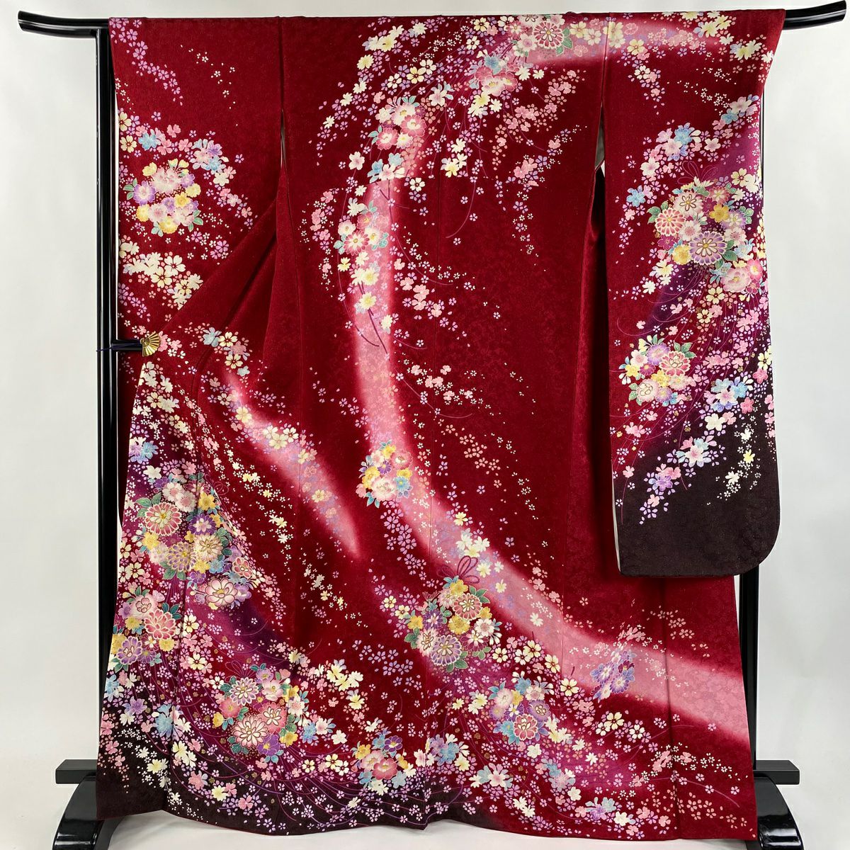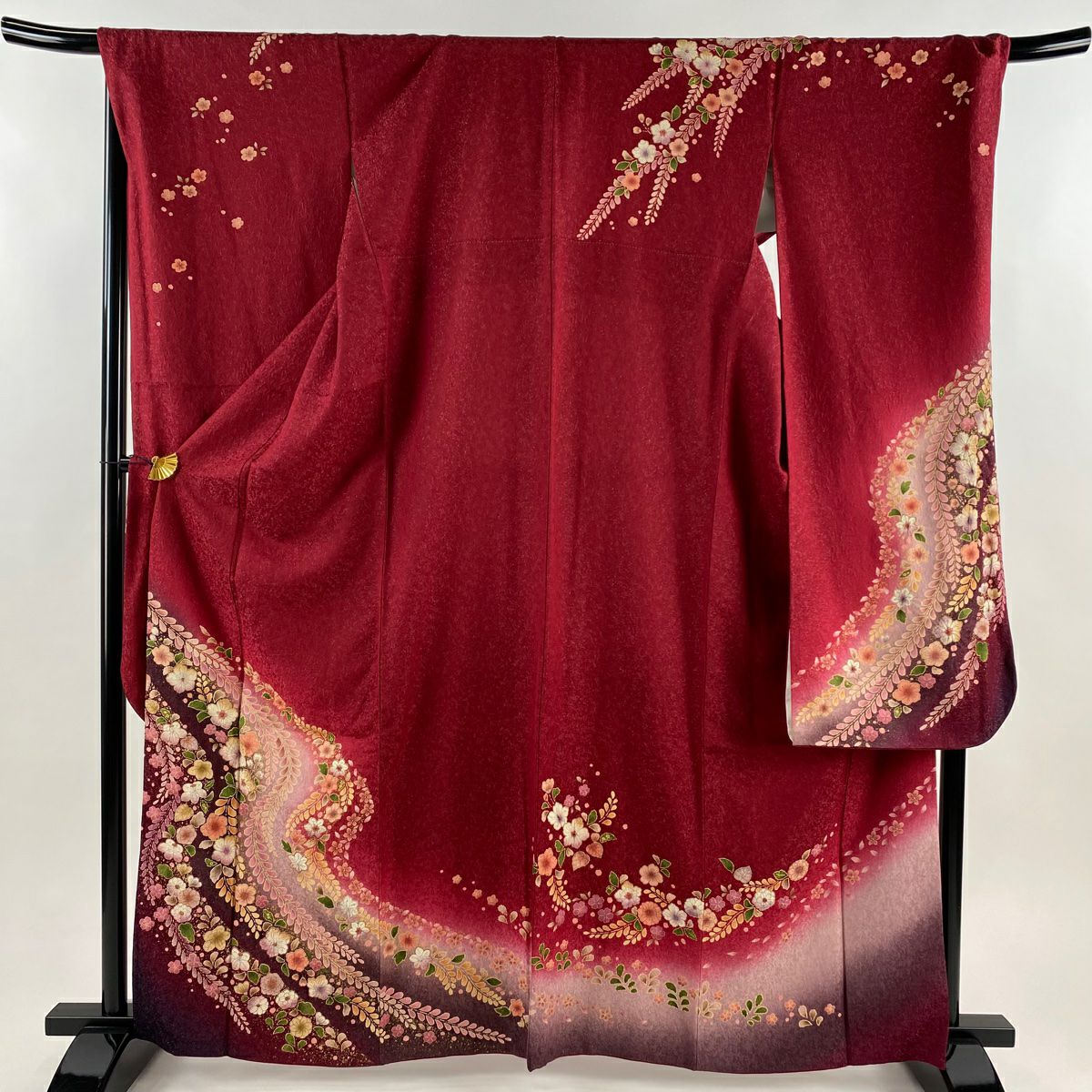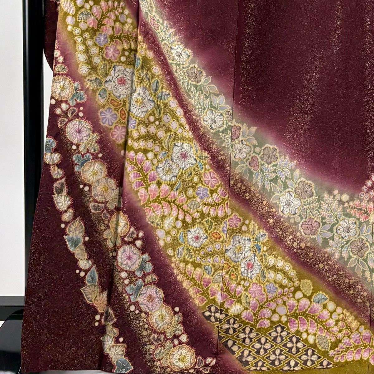 【美品】 振袖 身丈170cm 裄丈67cm M 袷 徳永憲峯 落款あり 辻が花 金通し 金彩 赤紫 正絹 逸品