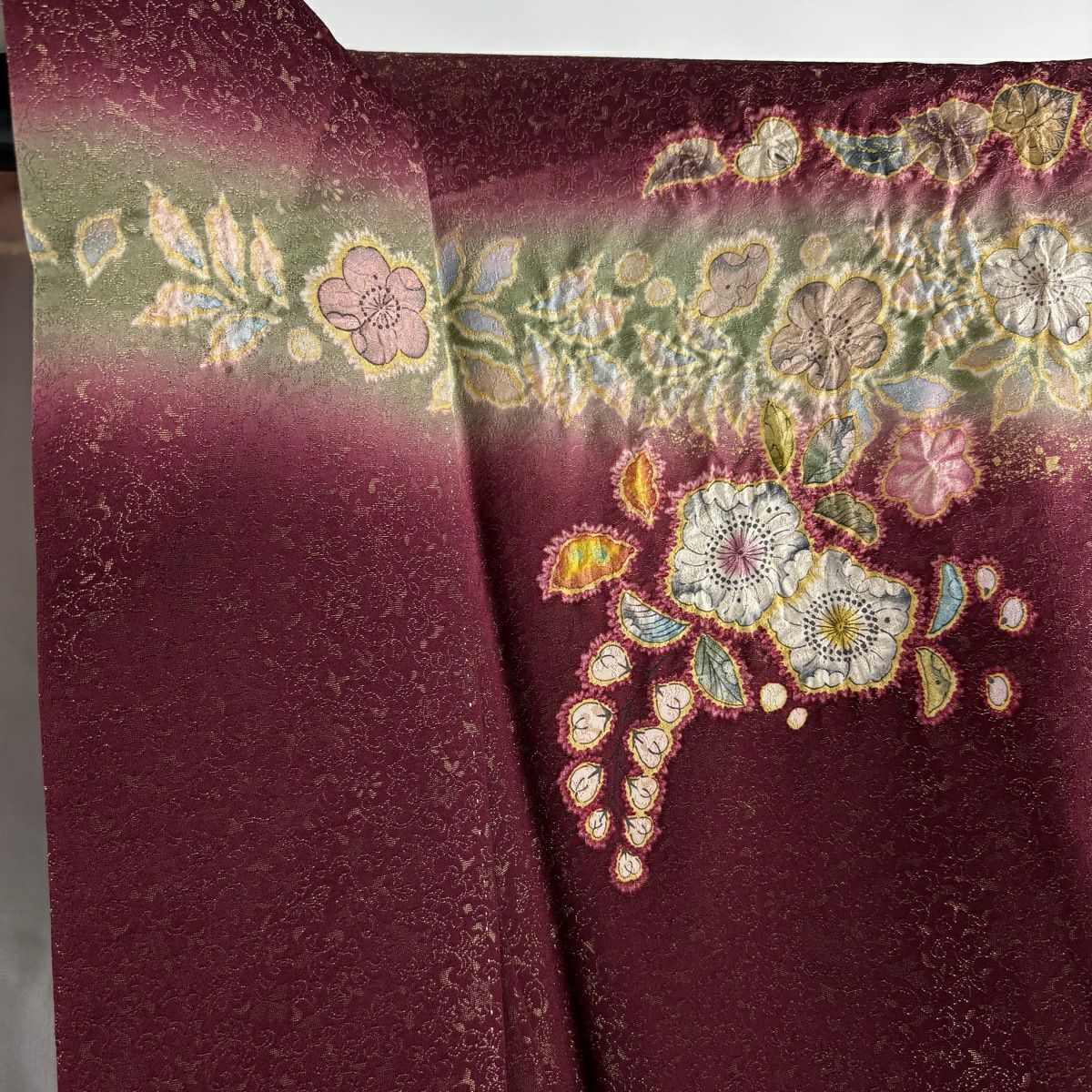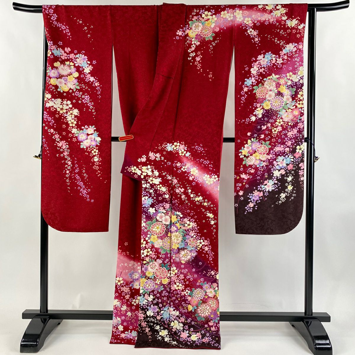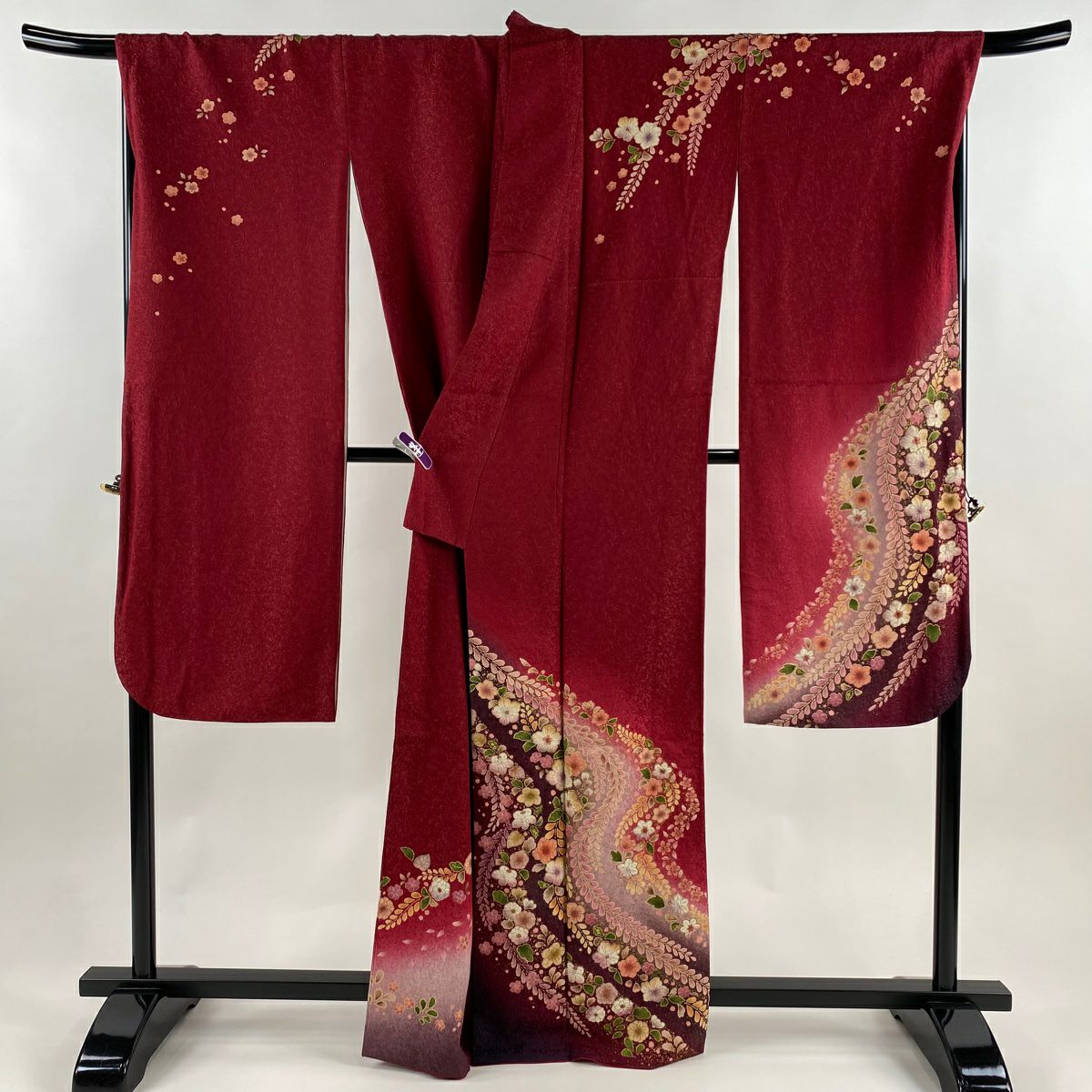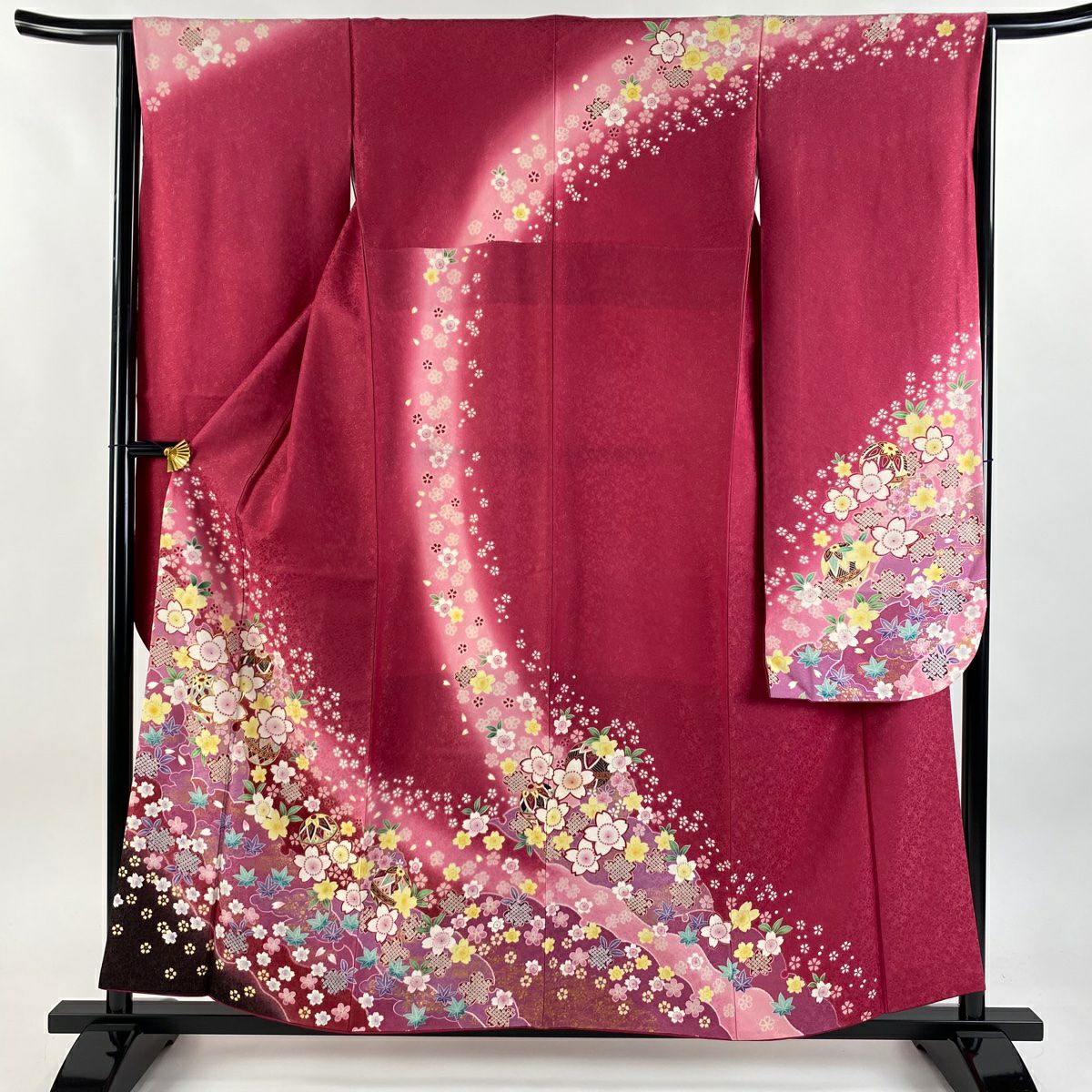 【美品】 振袖 身丈170cm 裄丈67cm M 袷 徳永憲峯 落款あり 辻が花 金通し 金彩 赤紫 正絹 逸品