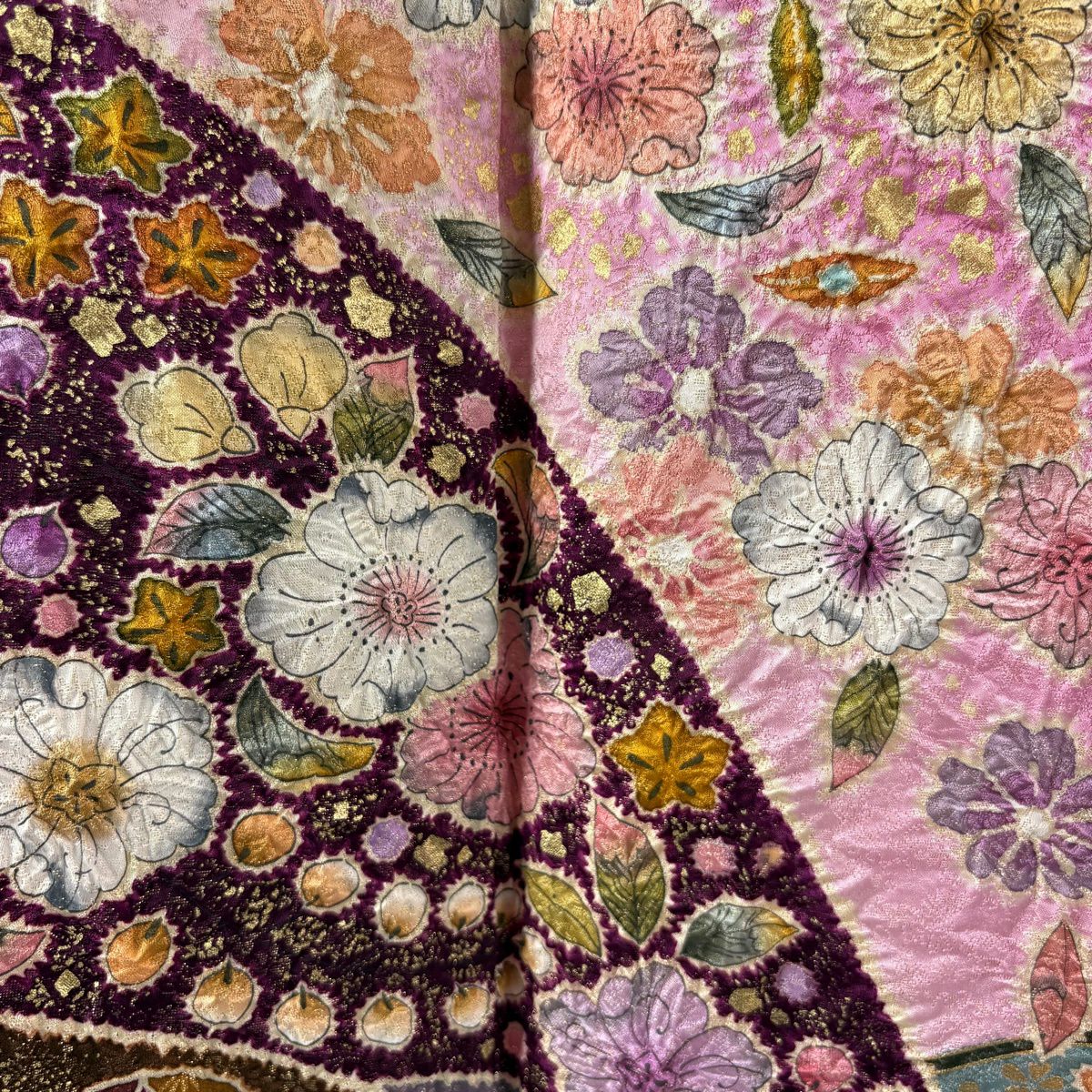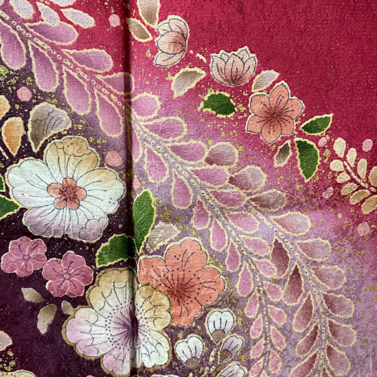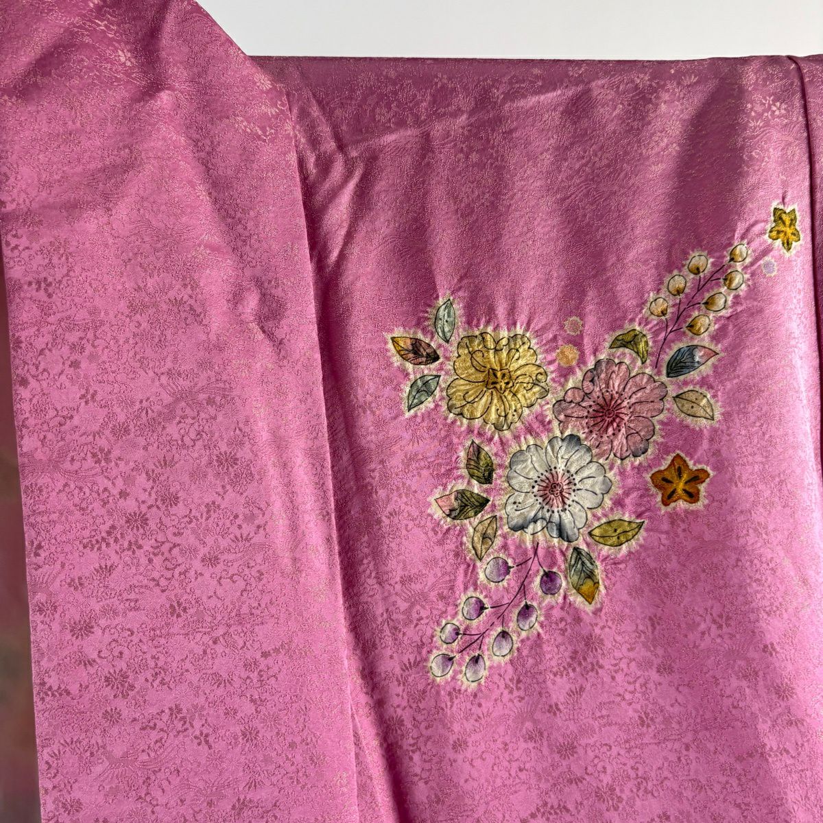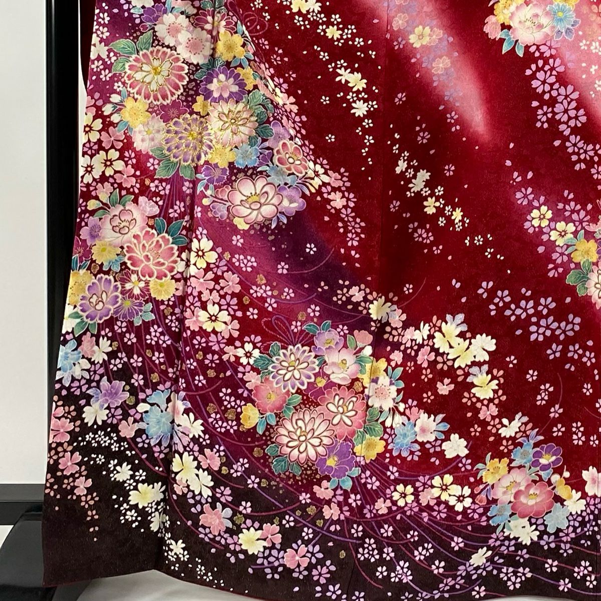 【美品】 振袖 身丈170cm 裄丈67cm M 袷 徳永憲峯 落款あり 辻が花 金通し 金彩 赤紫 正絹 逸品
