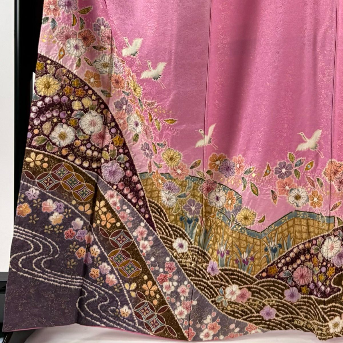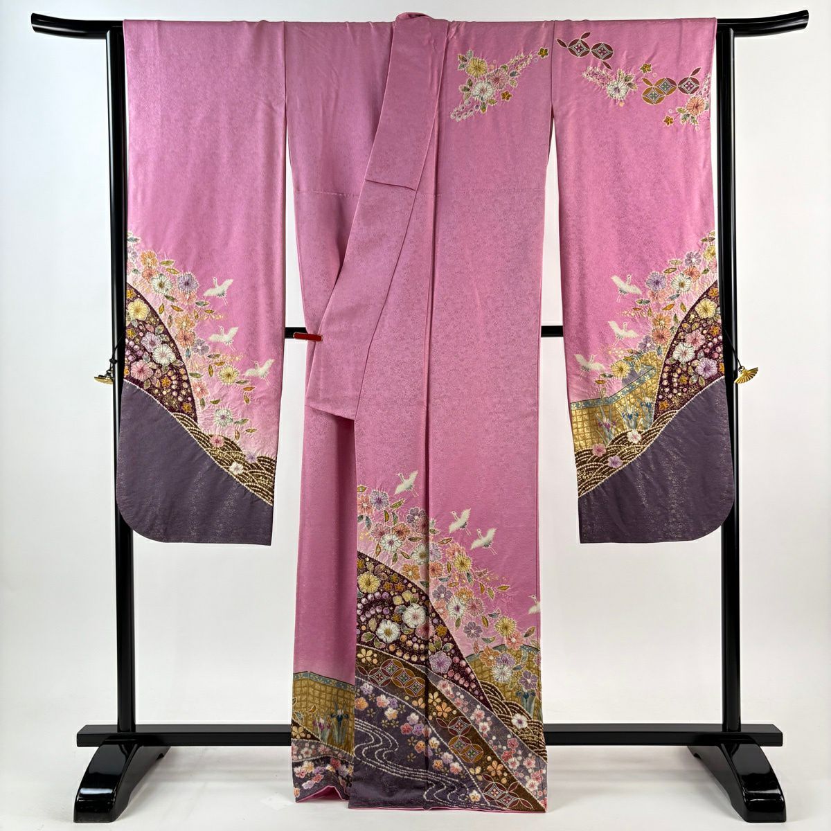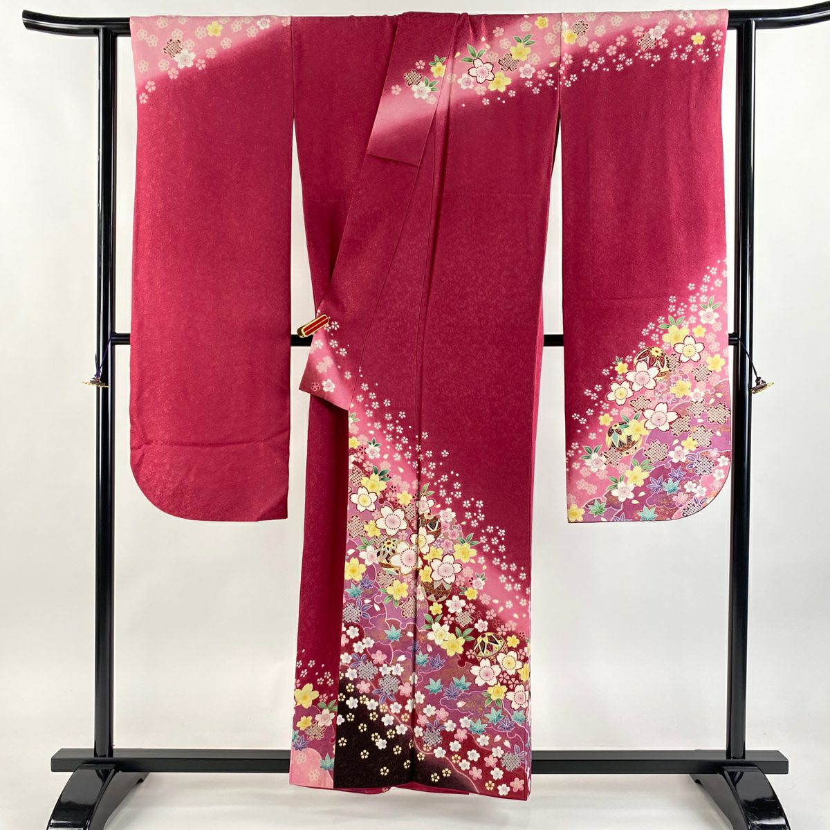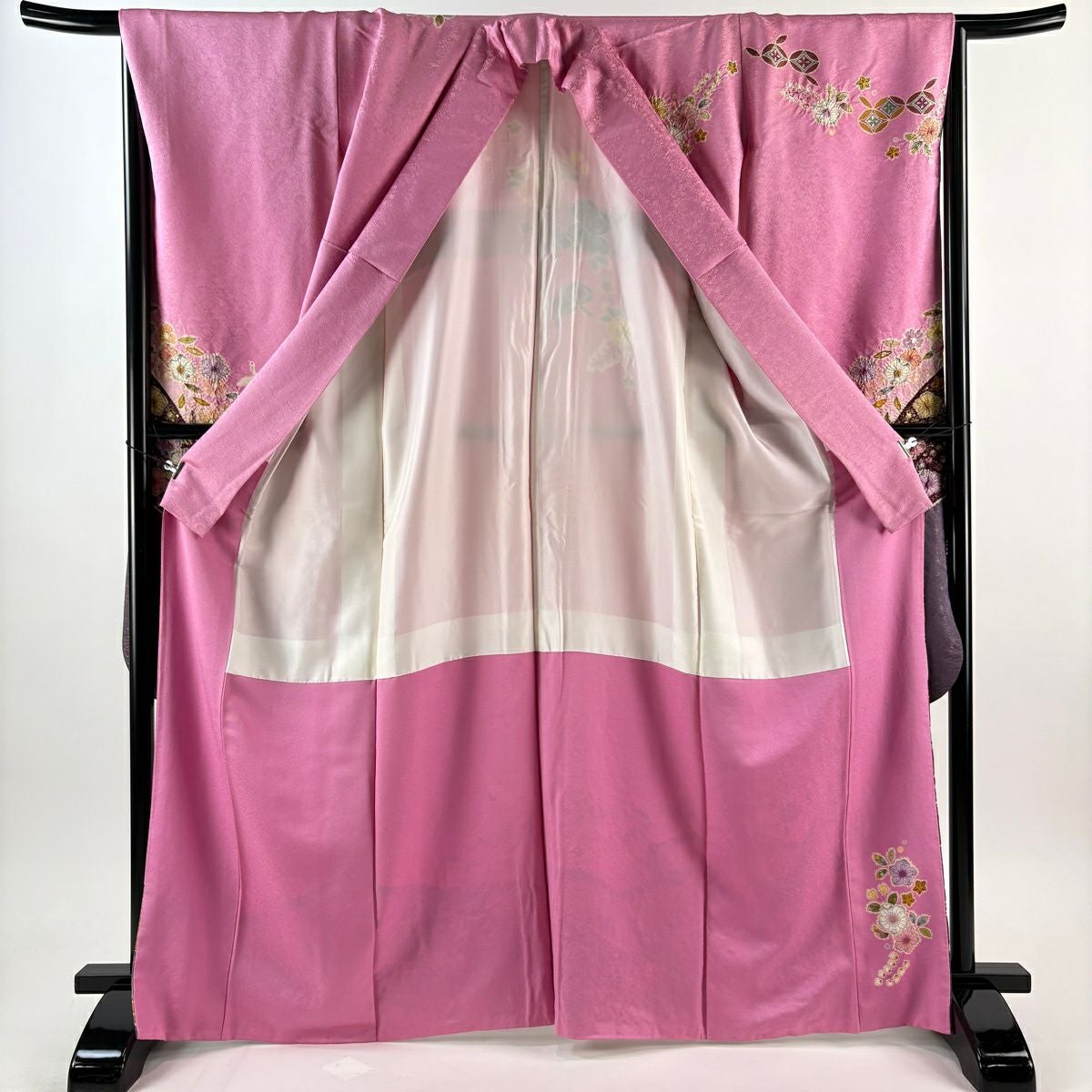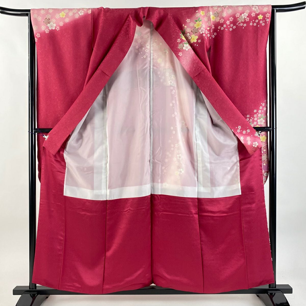 【在庫一掃】 【美品】 振袖 身丈157cm 裄丈64cm M 袷 桜 雪輪 金糸 金通し ピンク 正絹 逸品