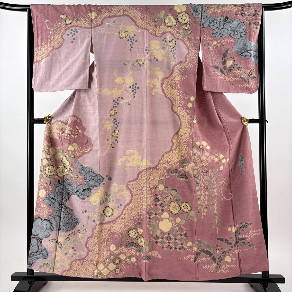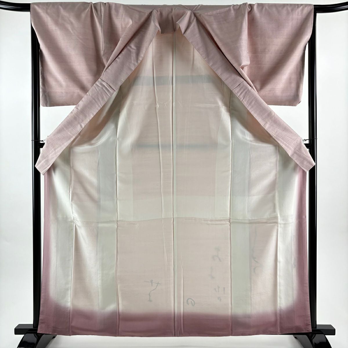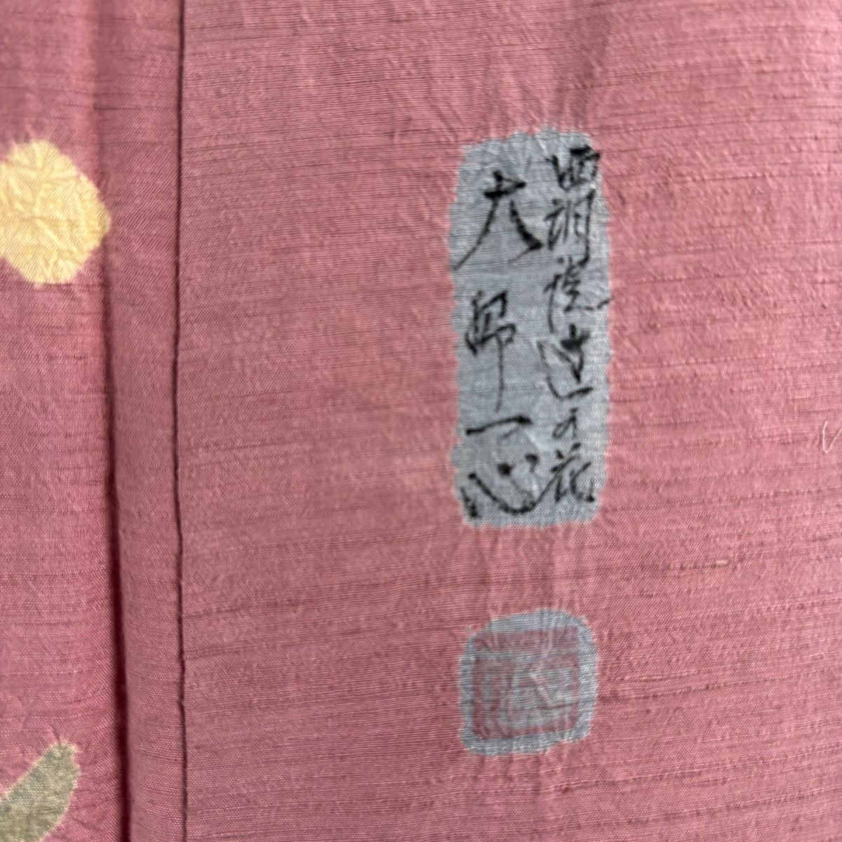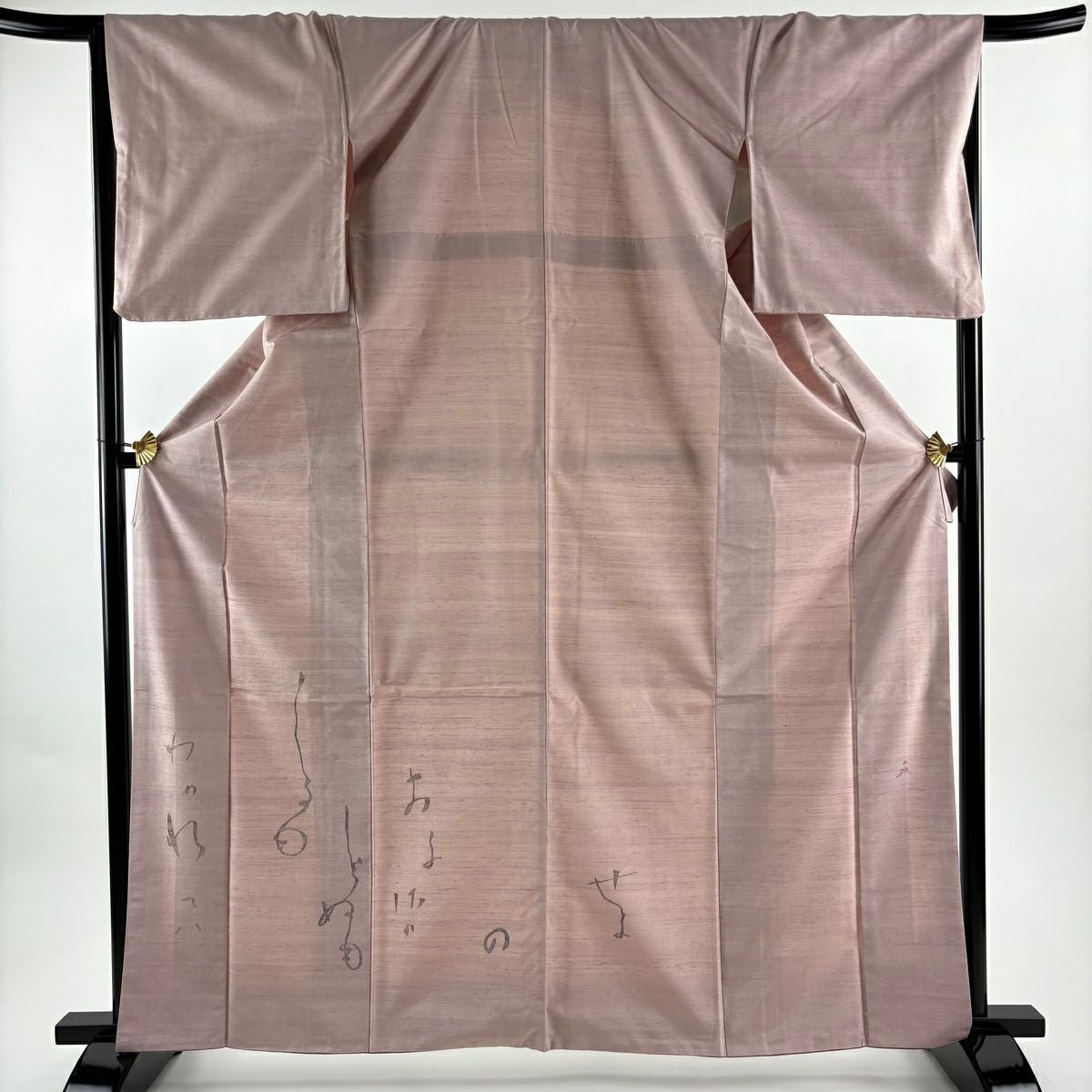 付下げ 身丈164cm 裄丈68.5cm L 袷 能州紬地 ますいわ屋 落款あり 文字文 ピンク 正絹 逸品