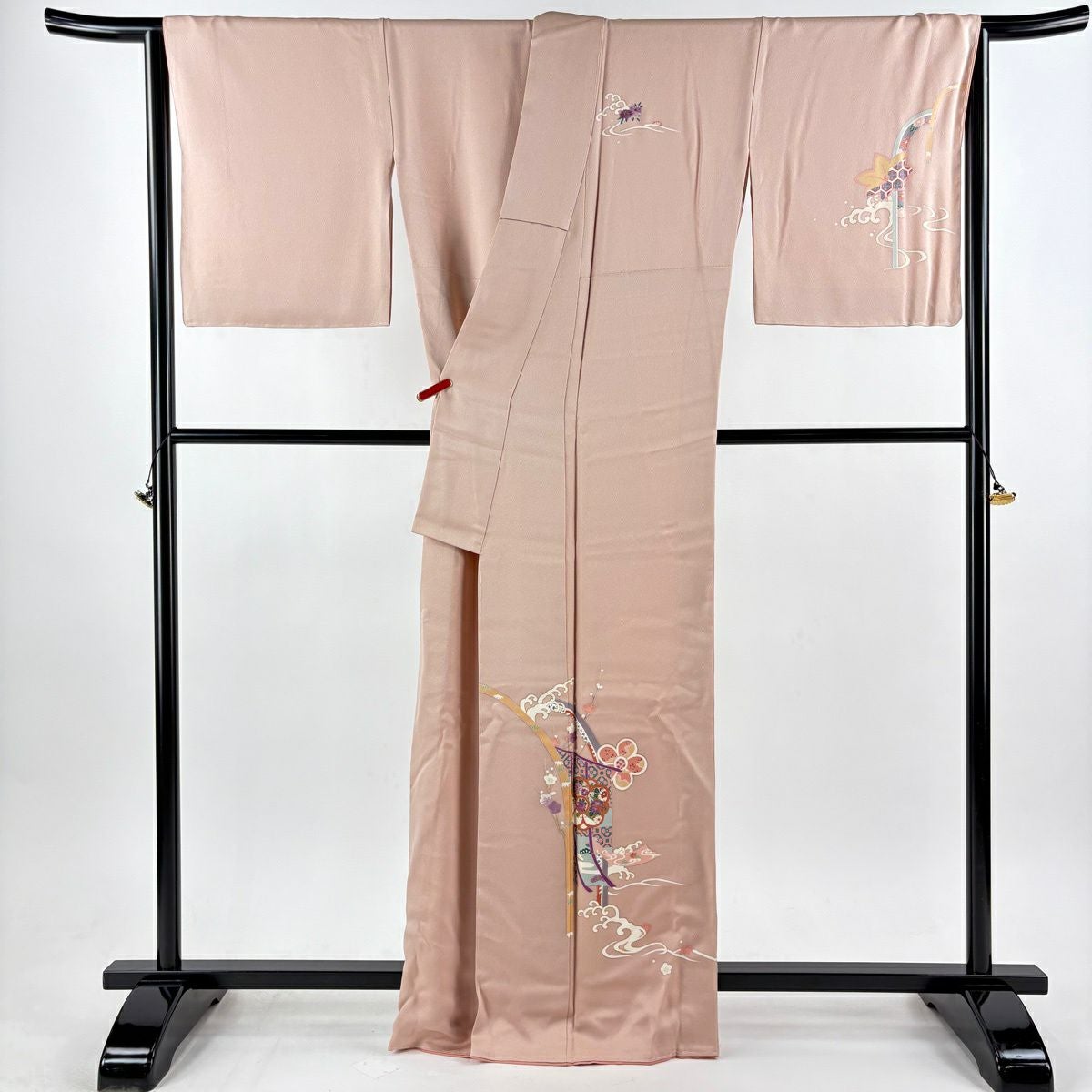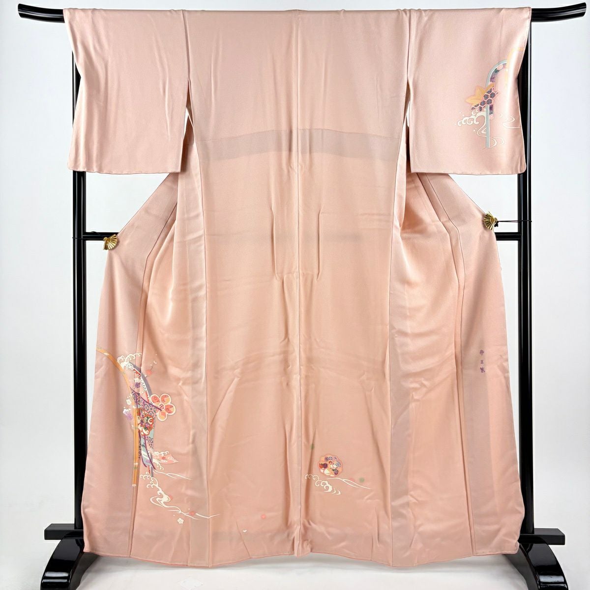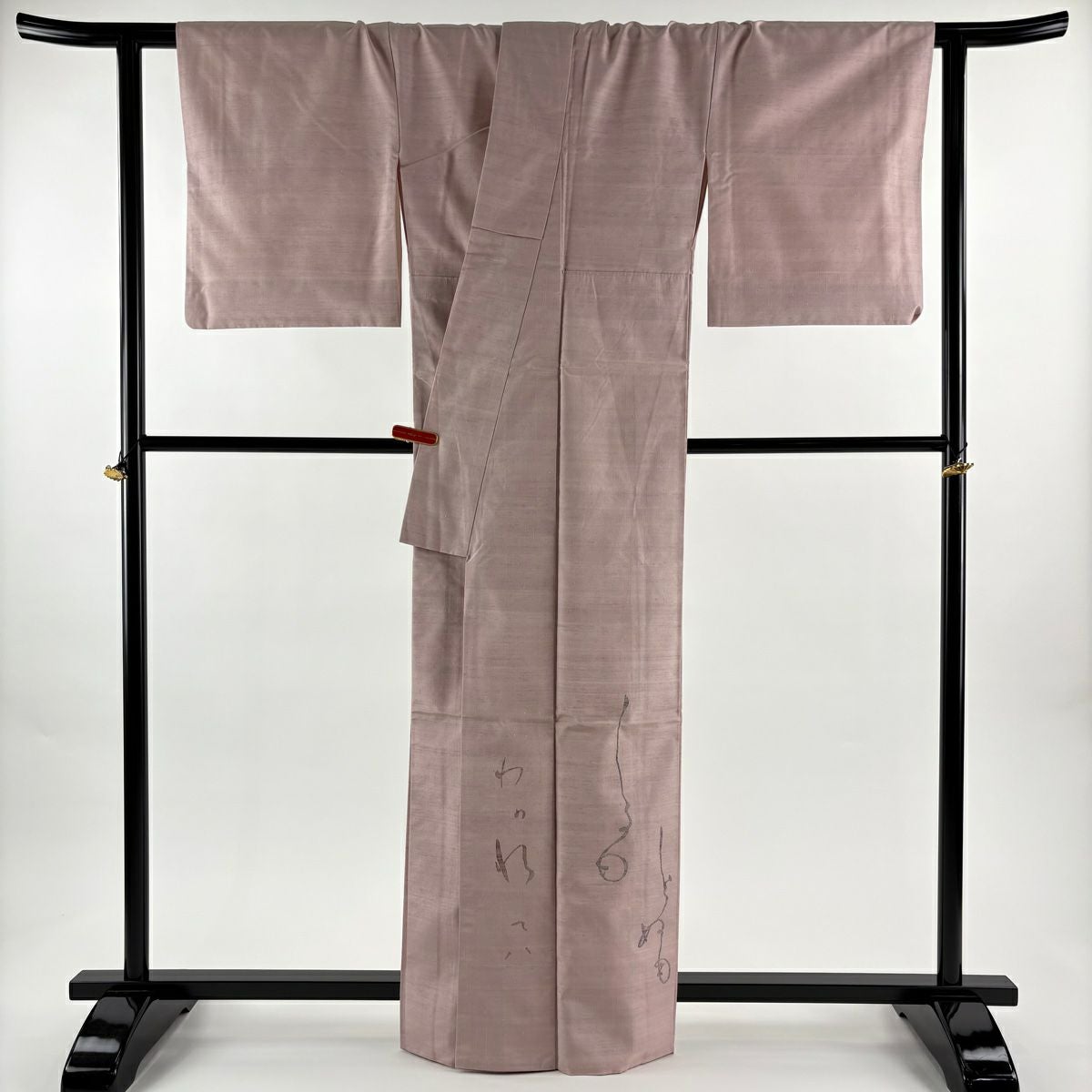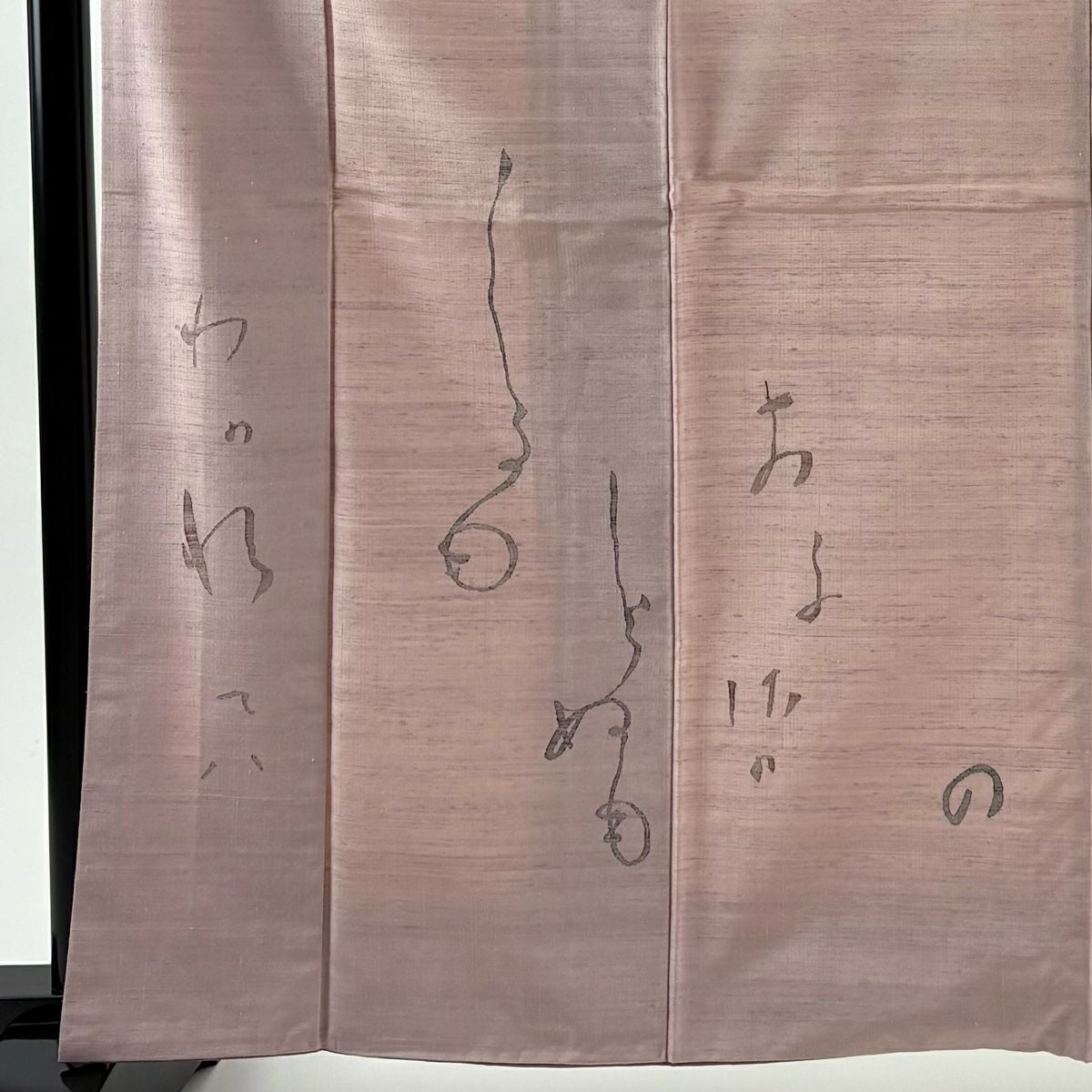 付下げ 身丈164cm 裄丈68.5cm L 袷 能州紬地 ますいわ屋 落款あり 文字文 ピンク 正絹 逸品