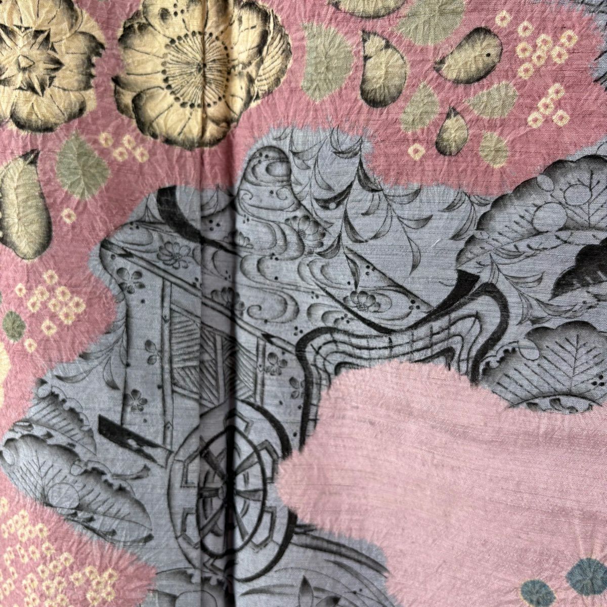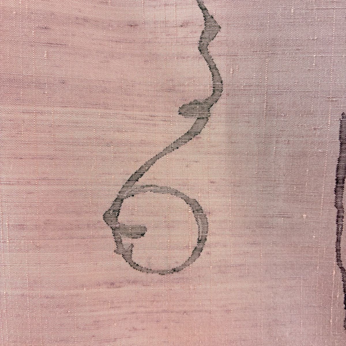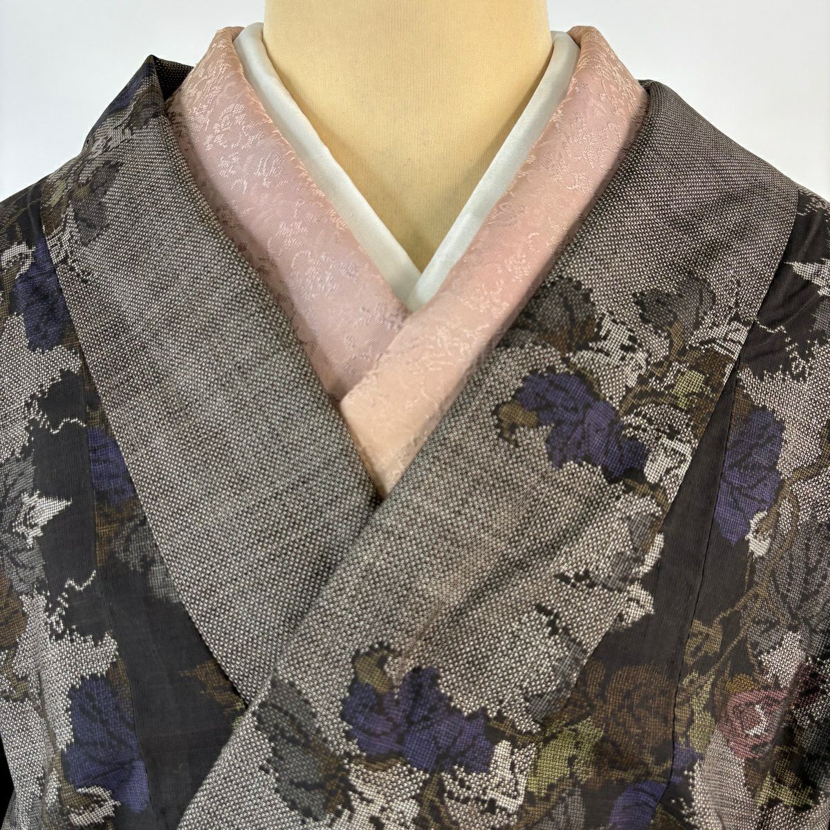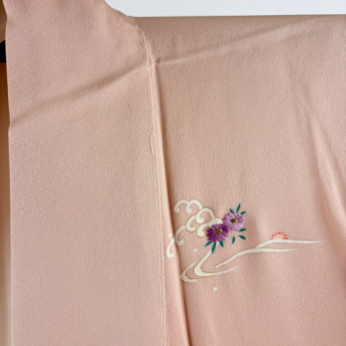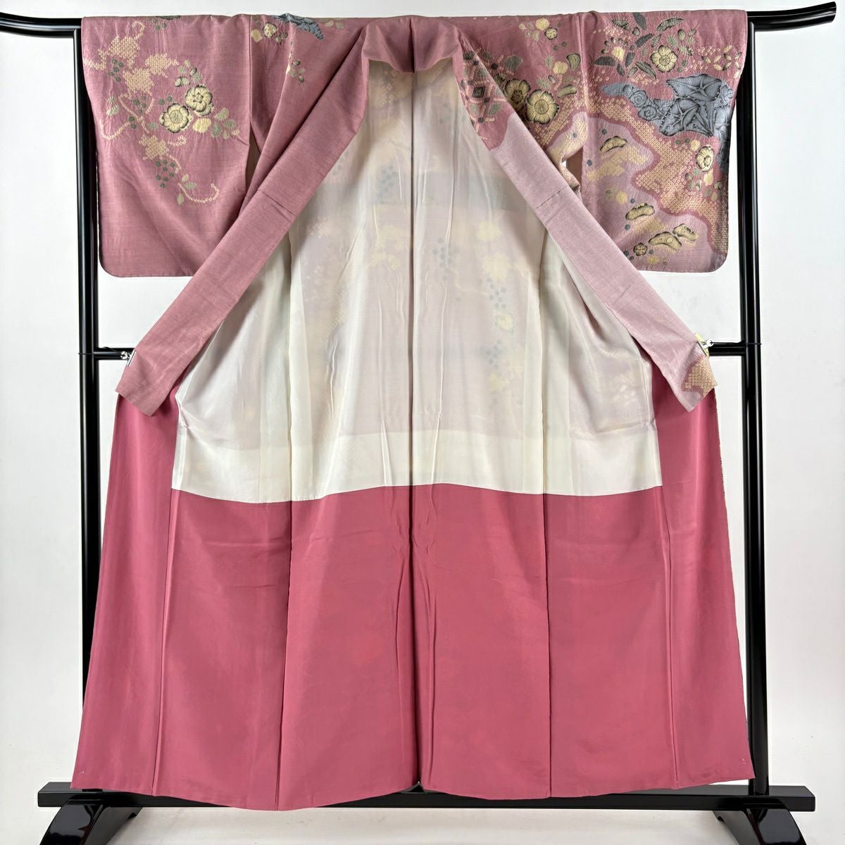 付下げ 身丈164cm 裄丈68.5cm L 袷 能州紬地 ますいわ屋 落款あり 文字文 ピンク 正絹 逸品
