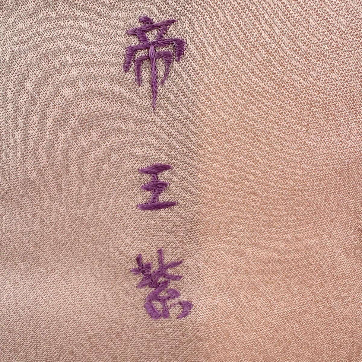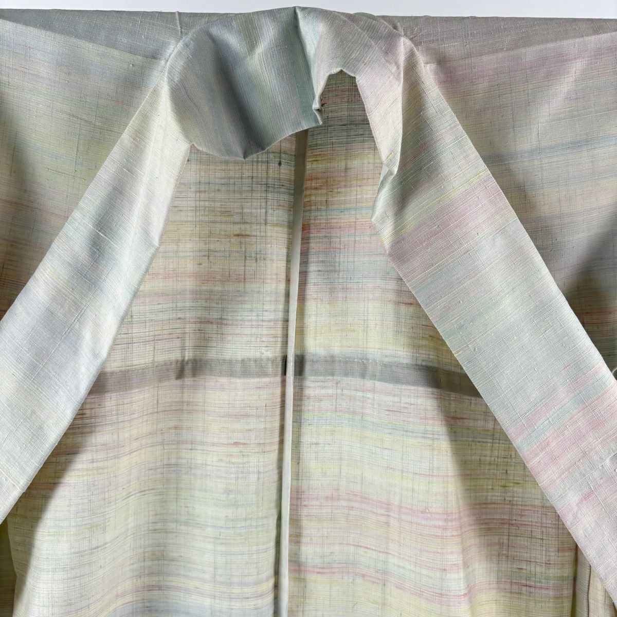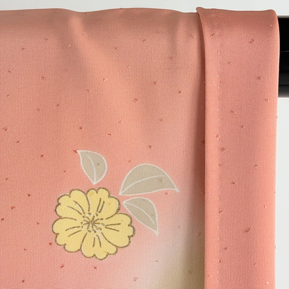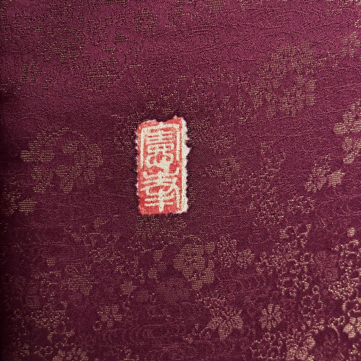付下げ 身丈164cm 裄丈68.5cm L 袷 能州紬地 ますいわ屋 落款あり 文字文 ピンク 正絹 逸品