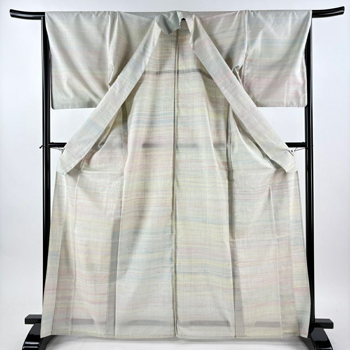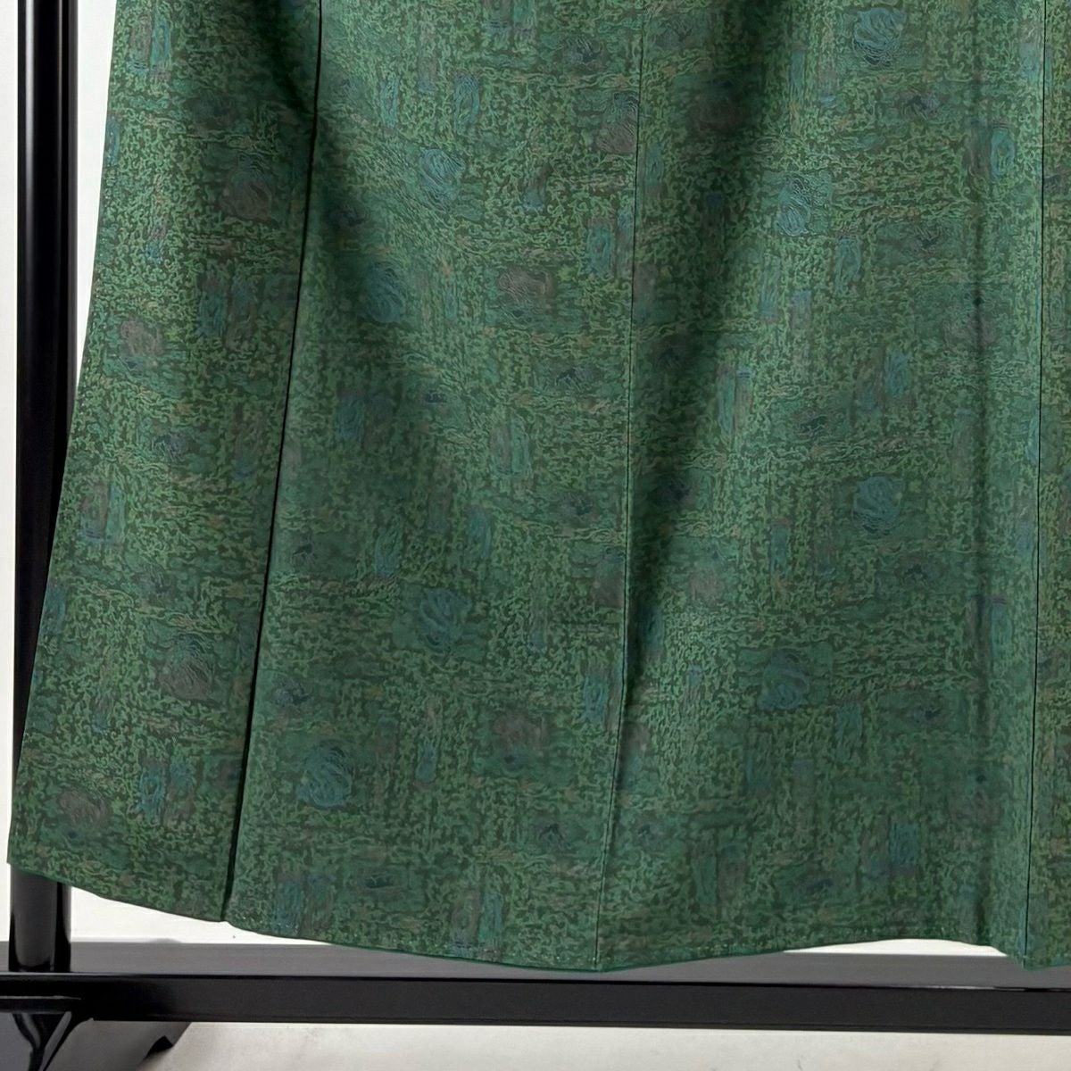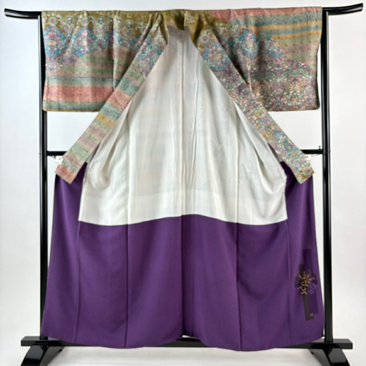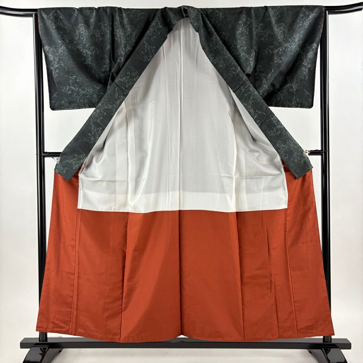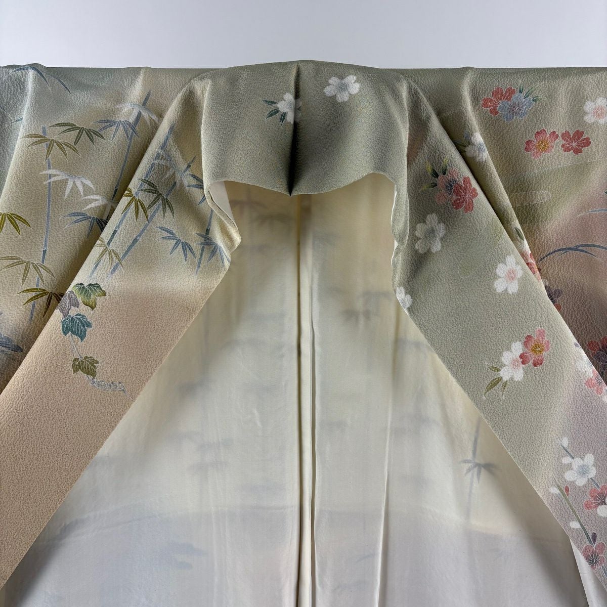 訪問着 身丈168.5cm 裄丈67.5cm L 袷 滝泰 落款あり 草花 波 金通し 染め分け 灰緑 正絹 逸品