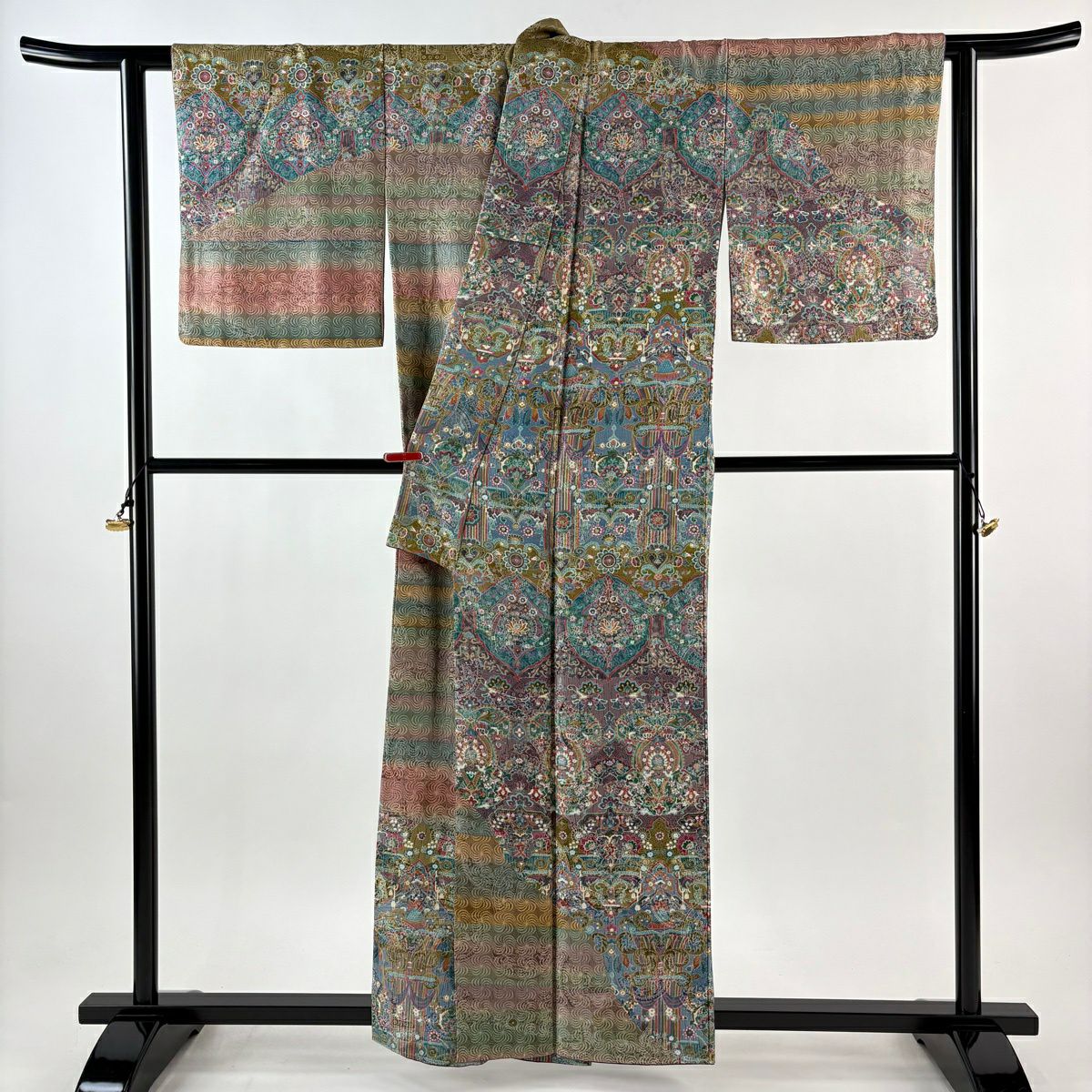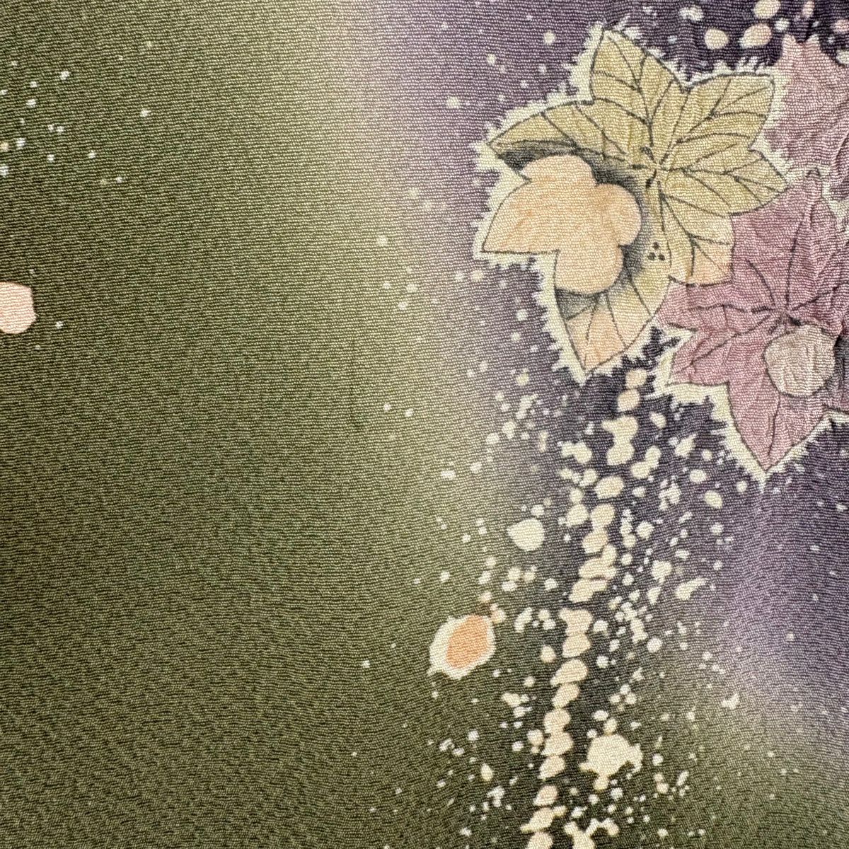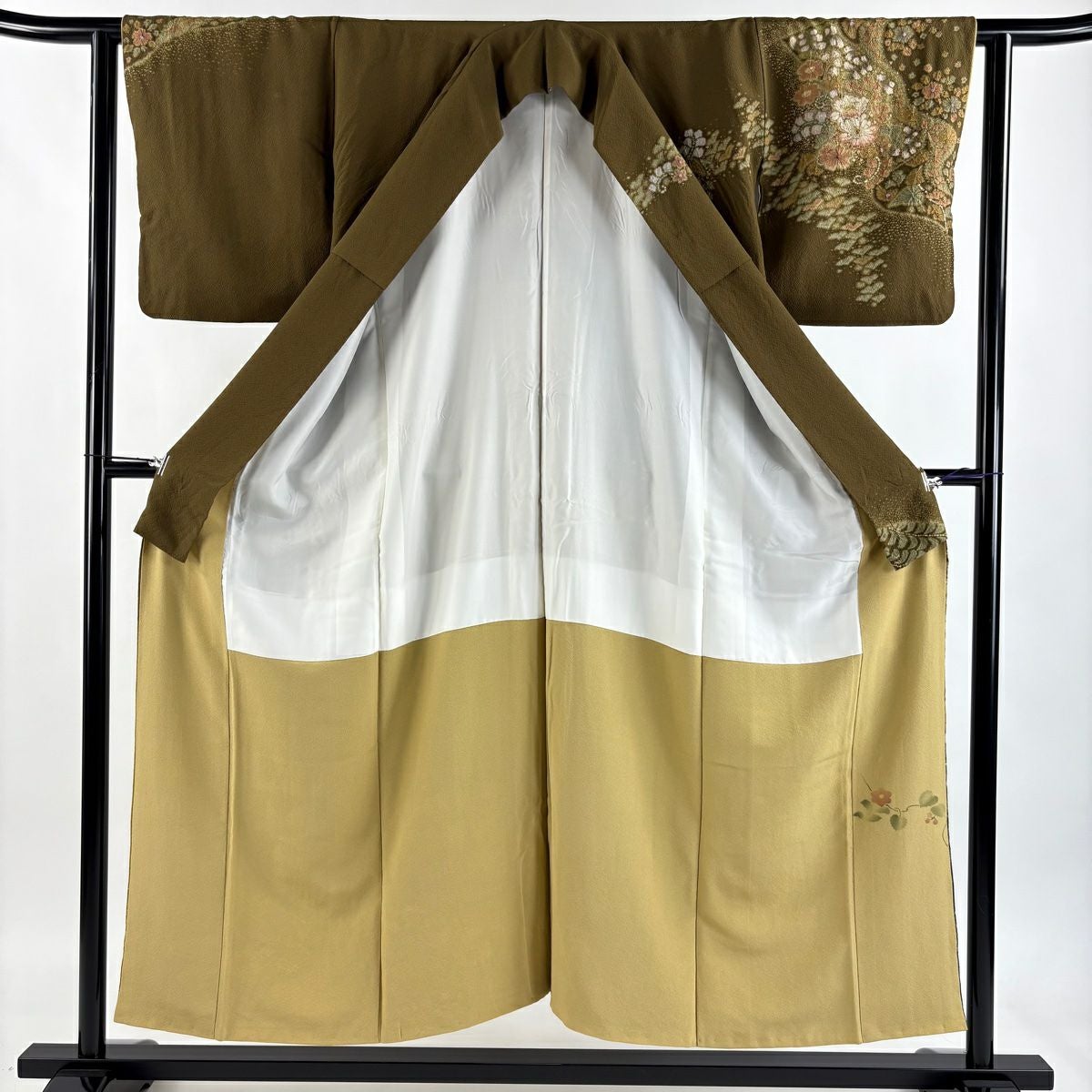 訪問着 身丈151.5cm 裄丈62cm S 袷 吉乃一廉 落款あり 辻が花 金彩 ぼかし 茶緑色 正絹 逸品