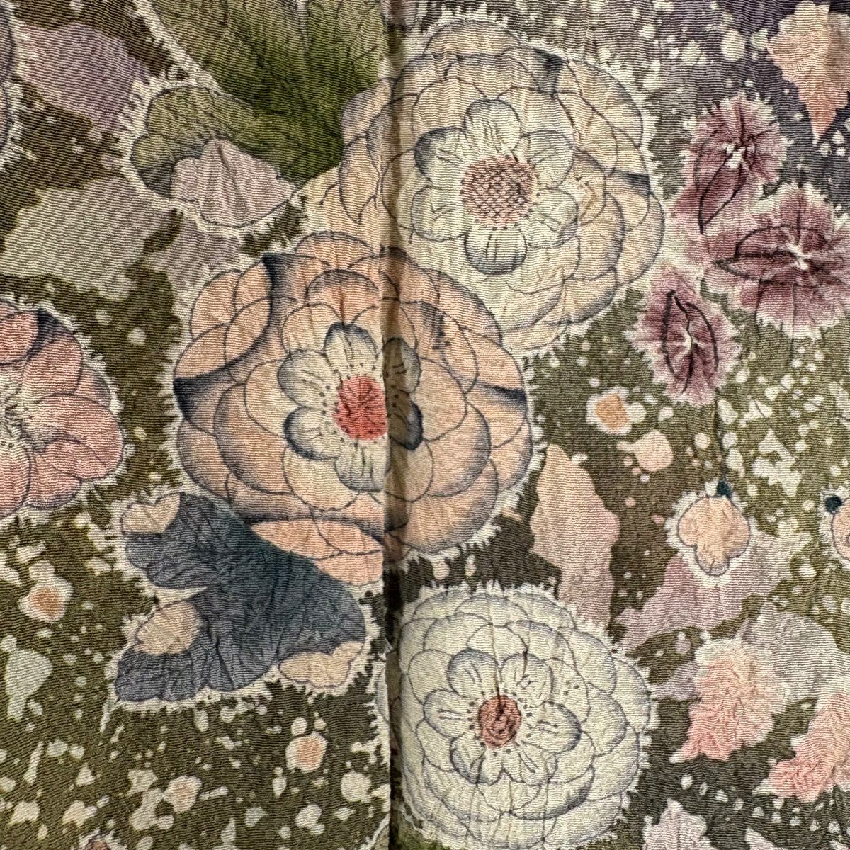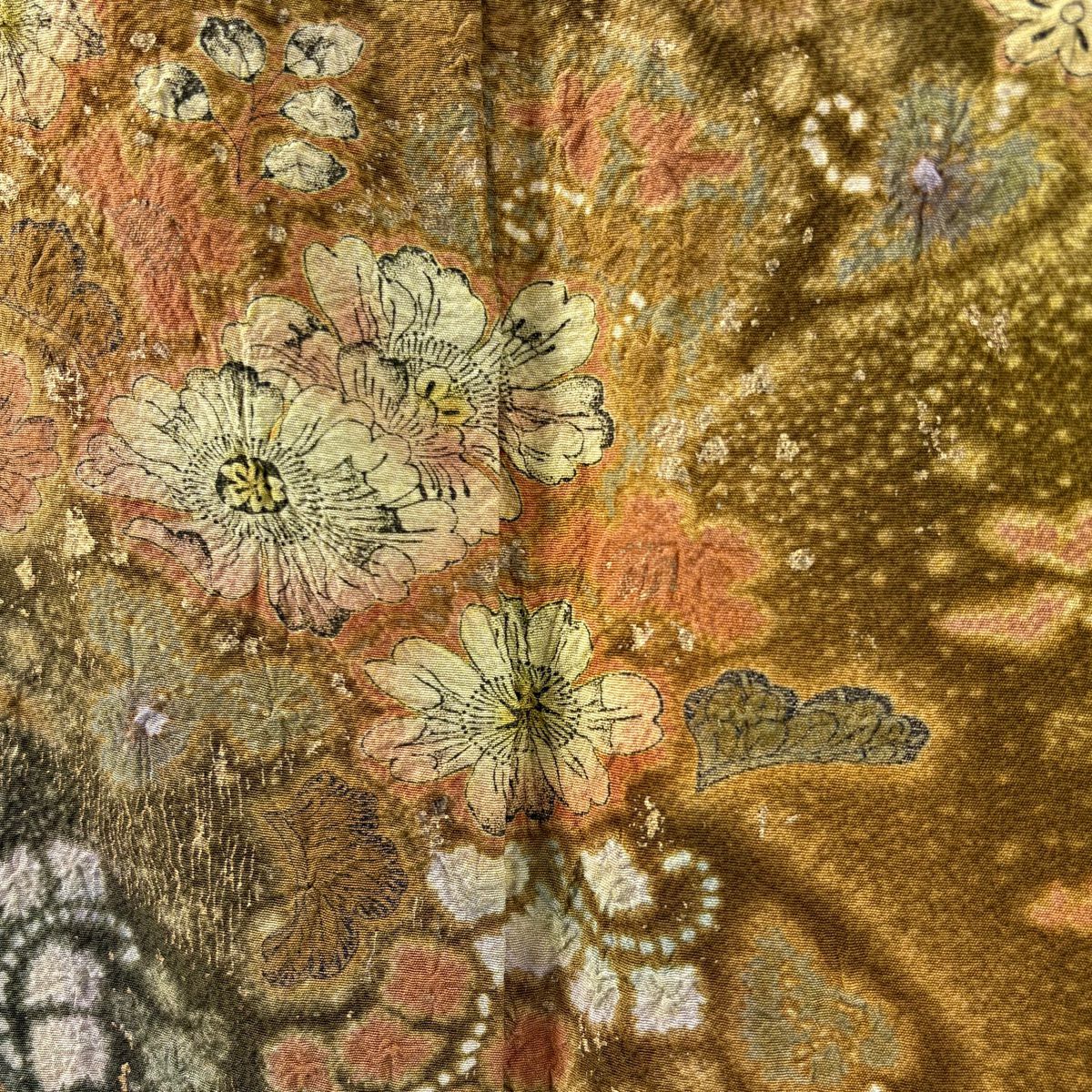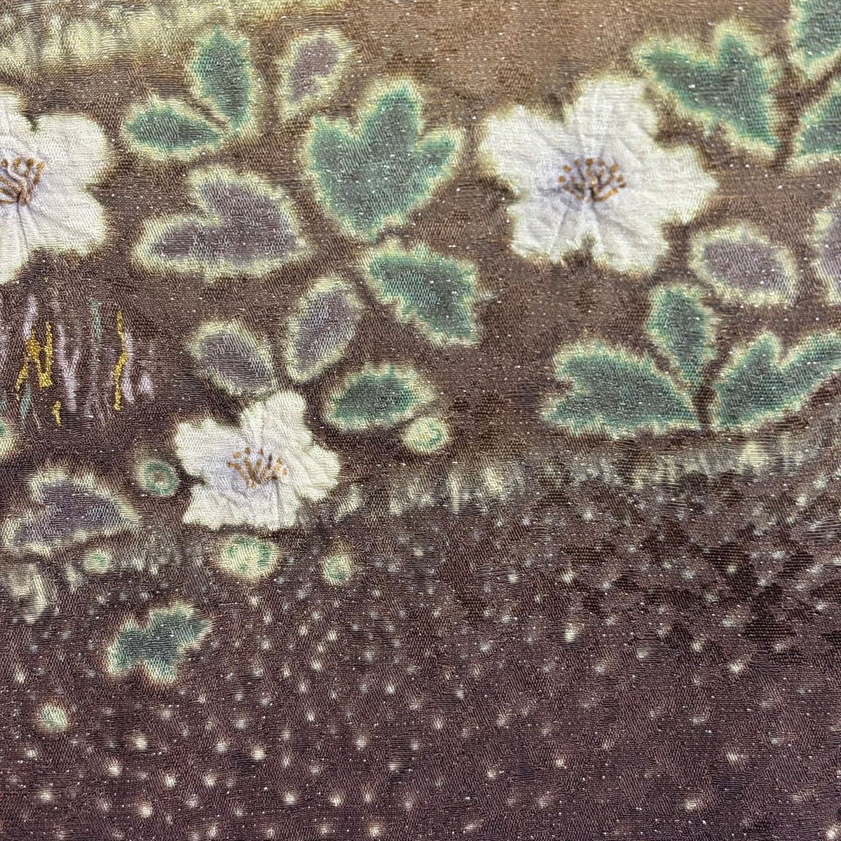 訪問着 身丈151.5cm 裄丈62cm S 袷 吉乃一廉 落款あり 辻が花 金彩 ぼかし 茶緑色 正絹 逸品