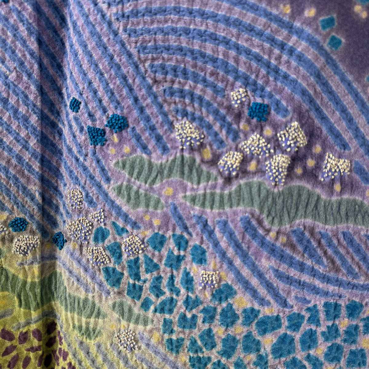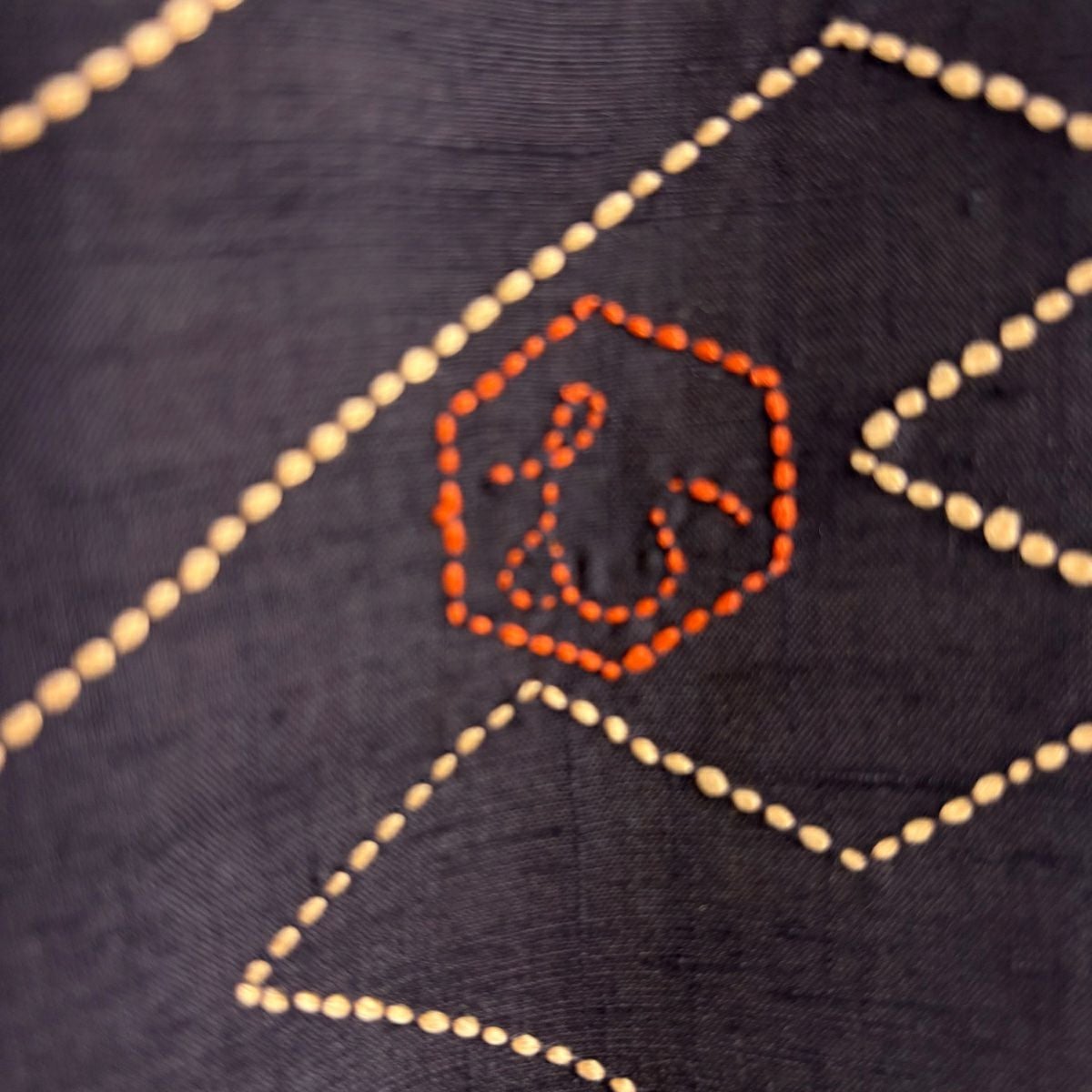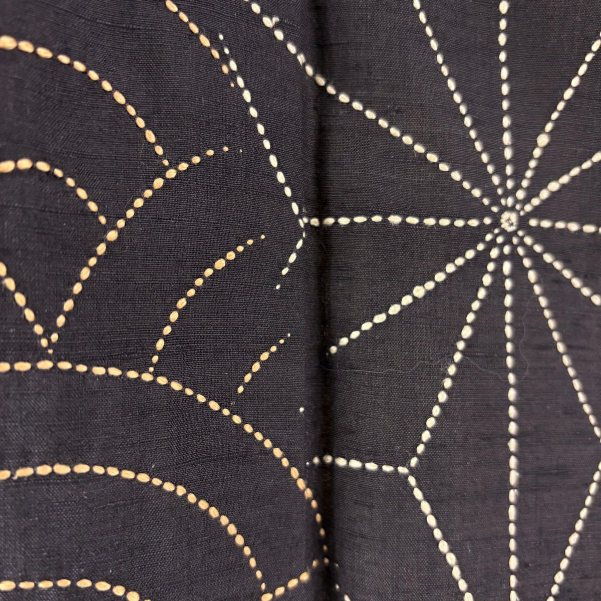 訪問着 身丈164.5cm 裄丈67cm M 袷 紬地 落款あり 麻の葉 青海波 刺し子刺繍 濃紫 正絹 逸品