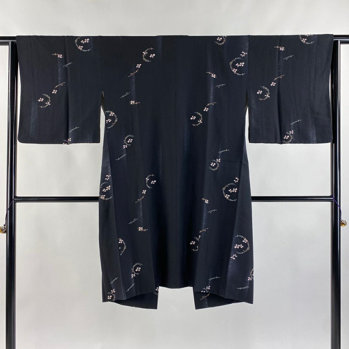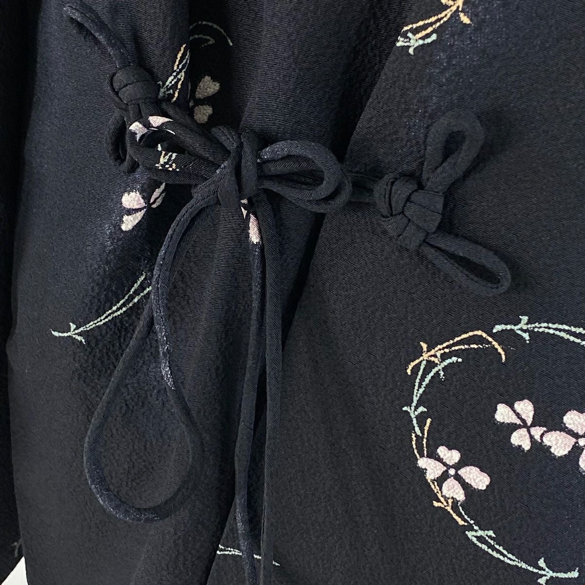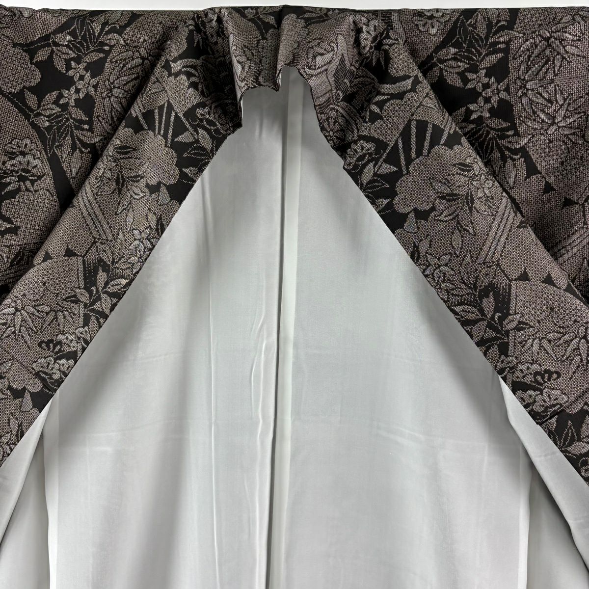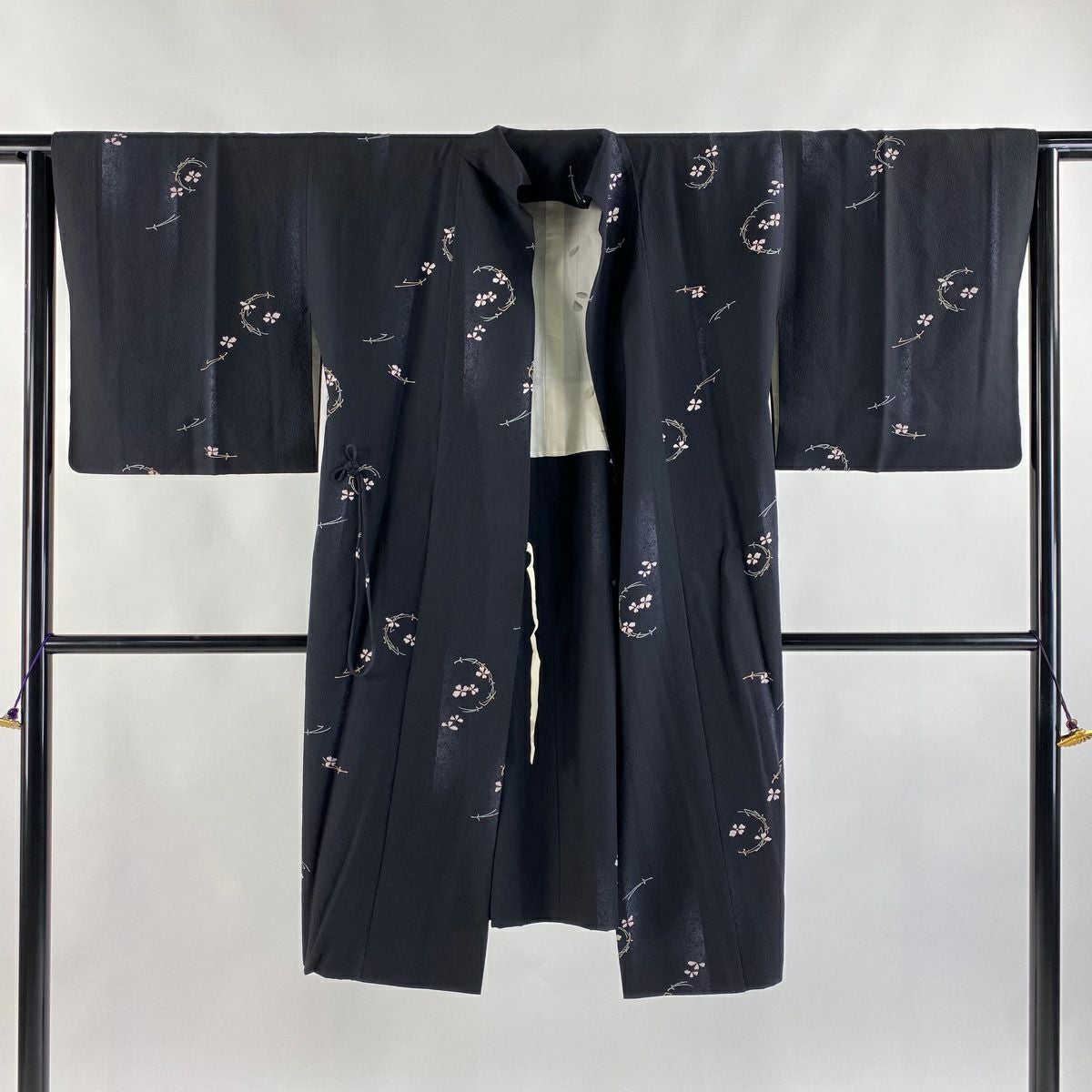 【在庫一掃】 【美品】 道中着 身丈105cm 裄丈62.5cm S 和装コート 鈴乃屋 松葉 花 黒 正絹 逸品