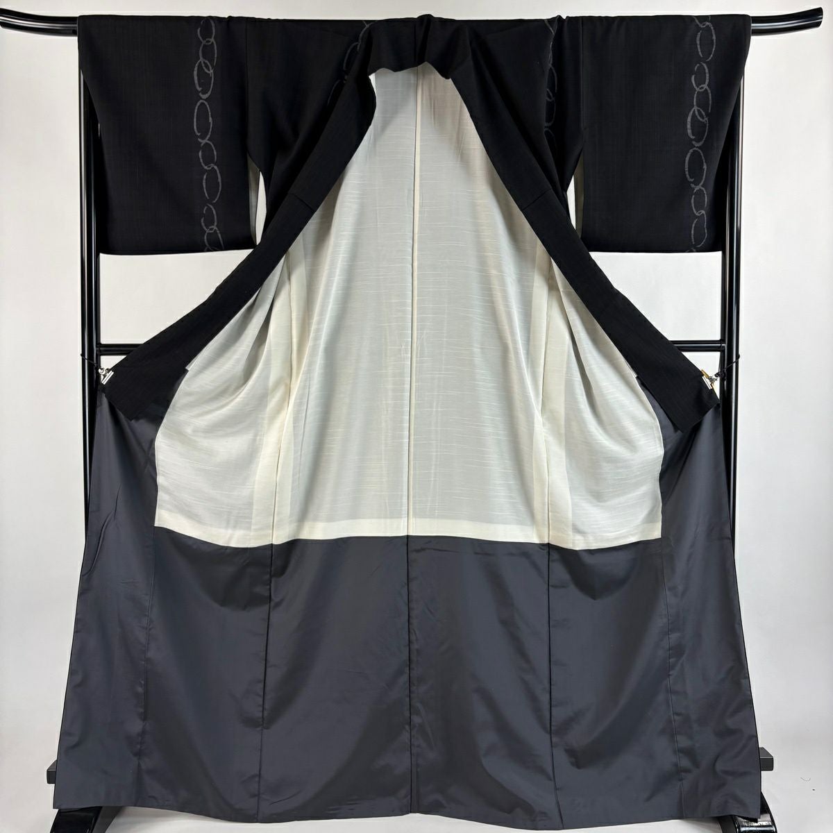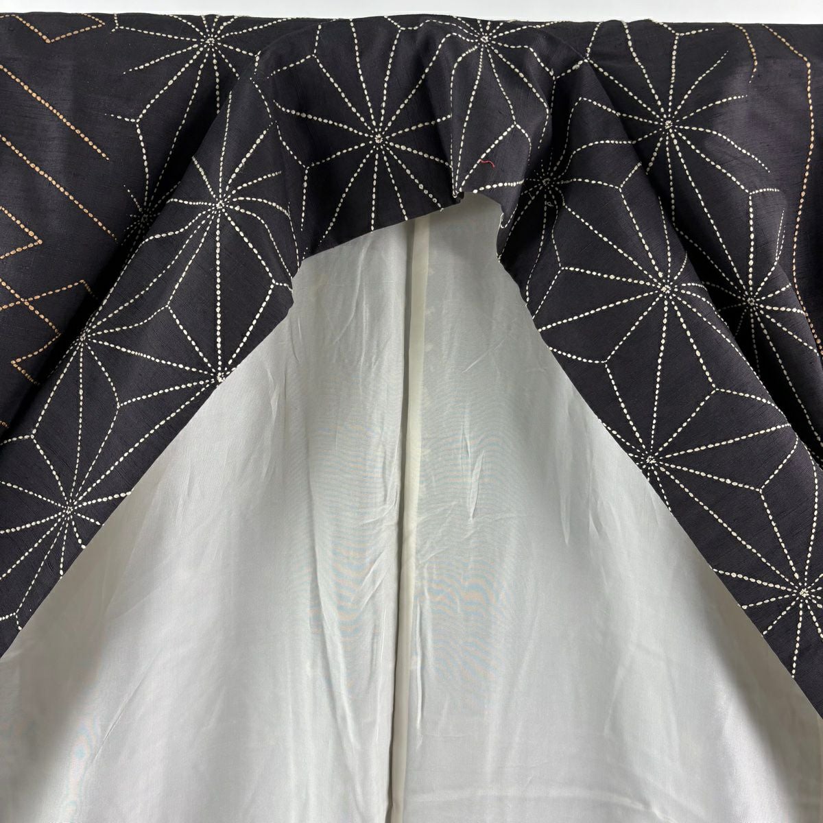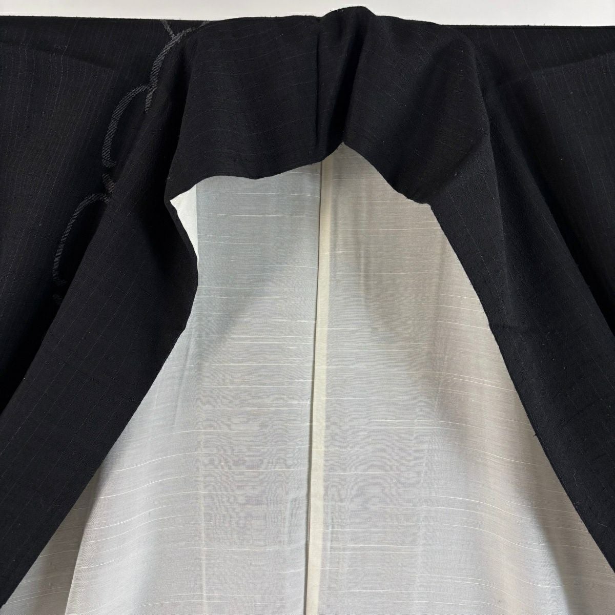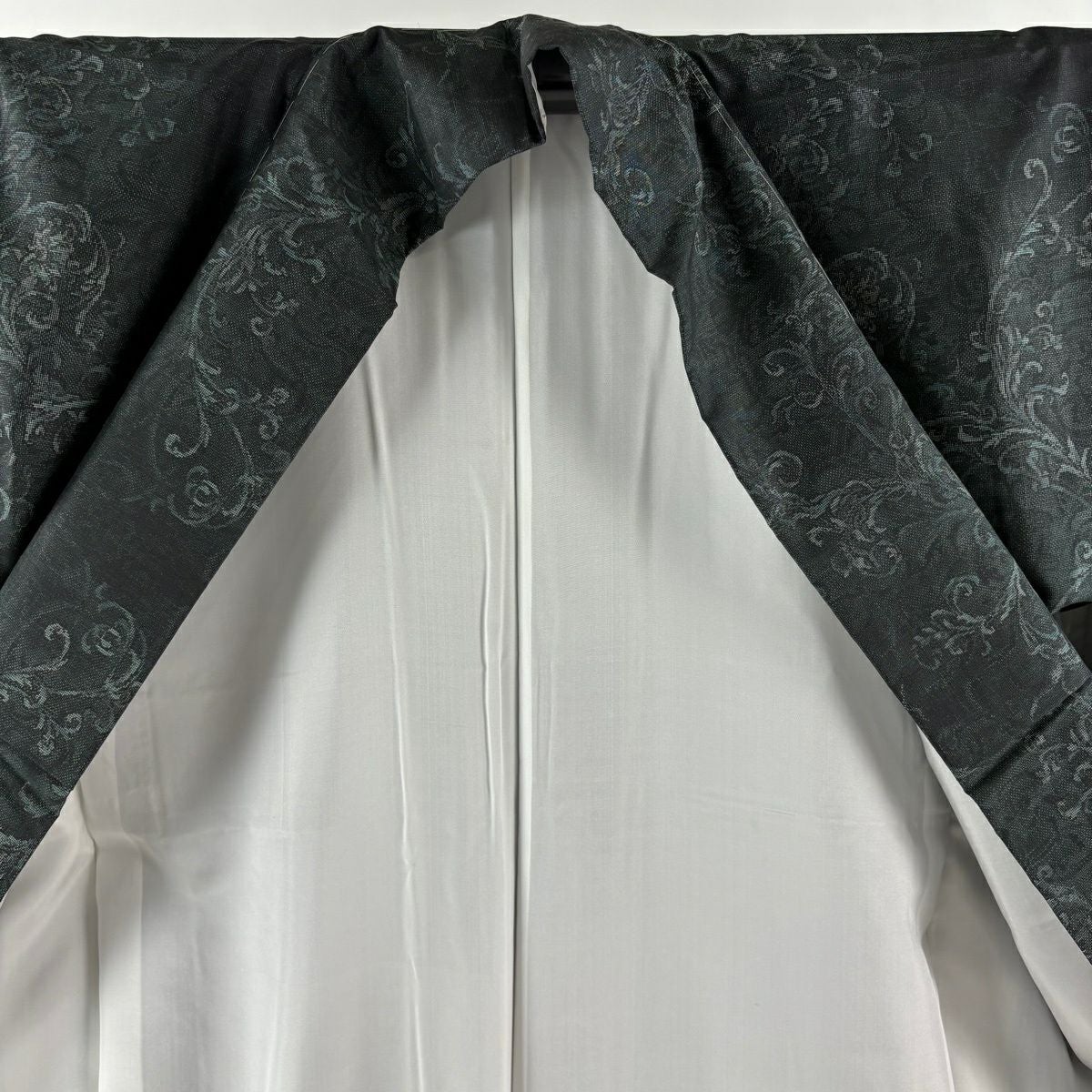 【在庫一掃】 【美品】 道中着 身丈105cm 裄丈62.5cm S 和装コート 鈴乃屋 松葉 花 黒 正絹 逸品